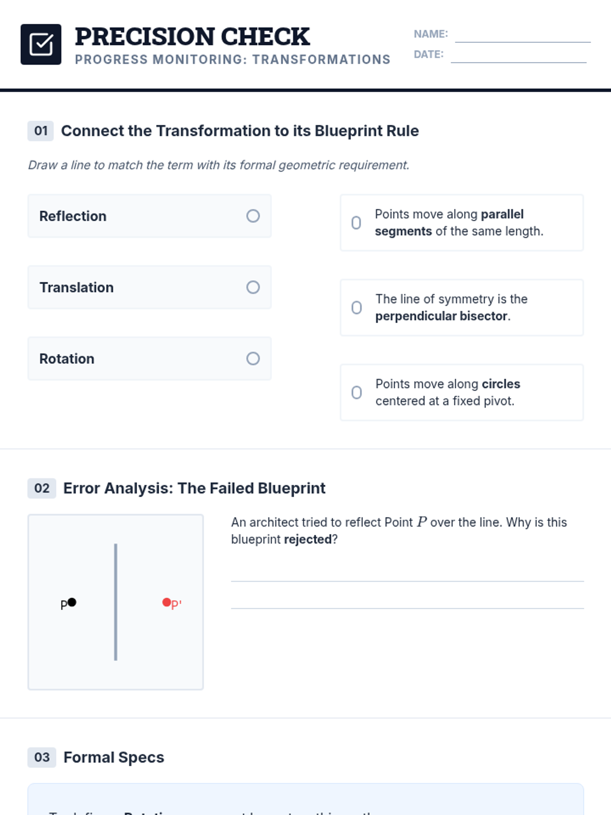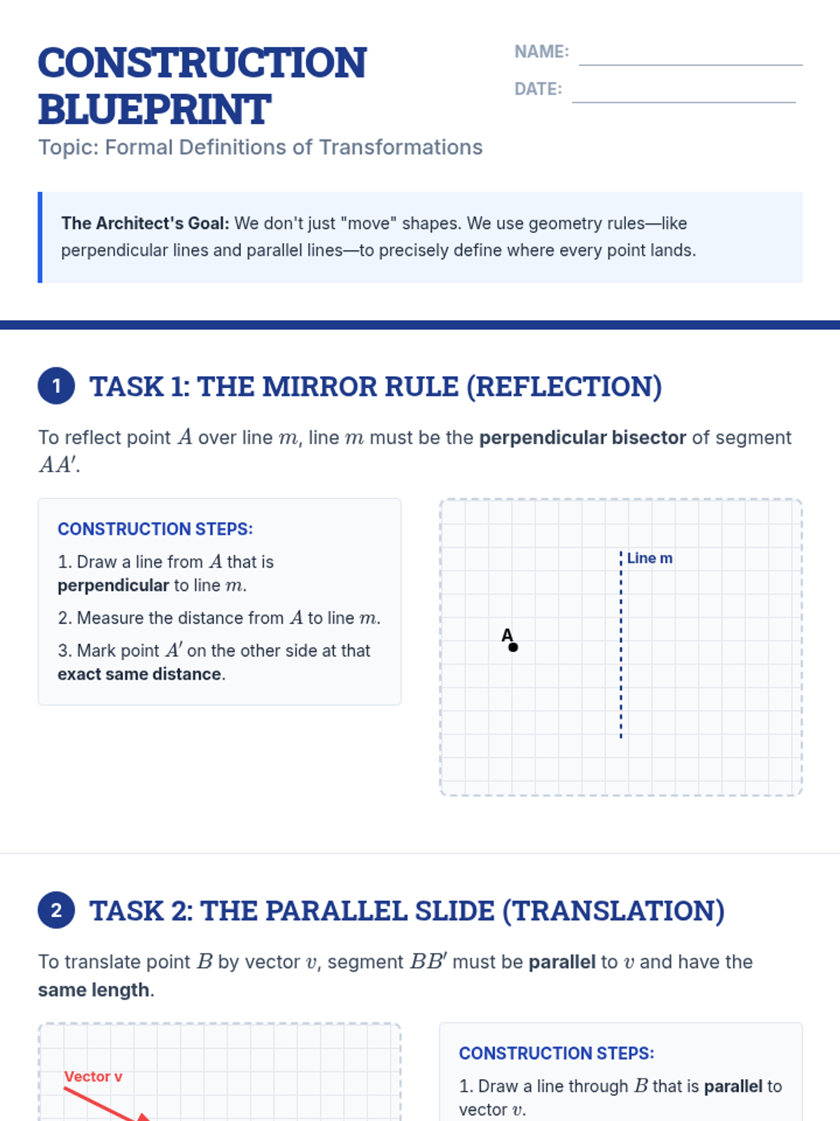 A series of intensive intervention lessons focused on foundational geometry concepts through hands-on construction and formal definitions. This sequence supports Tier 2 learners in mastering transformations and proofs.