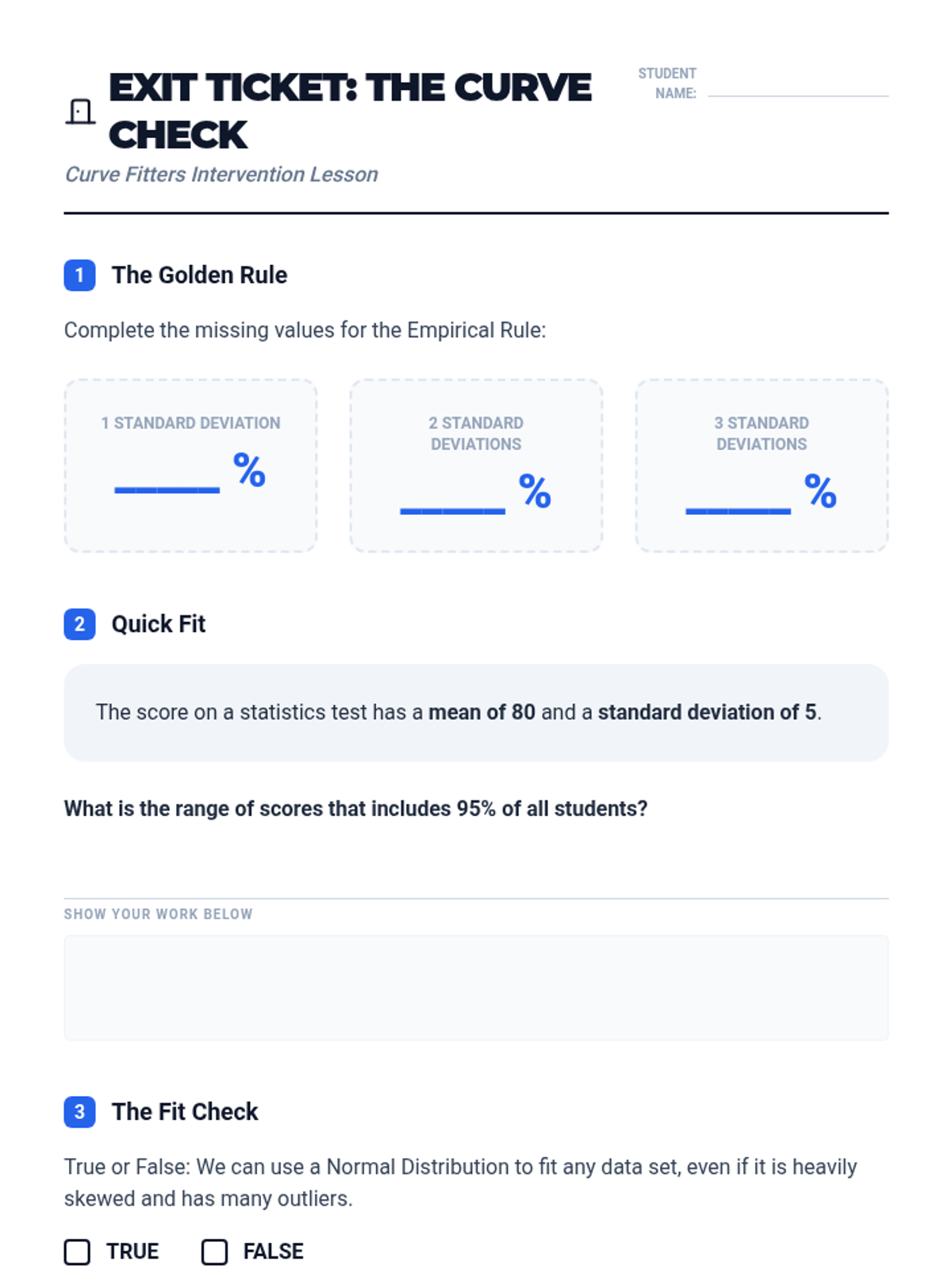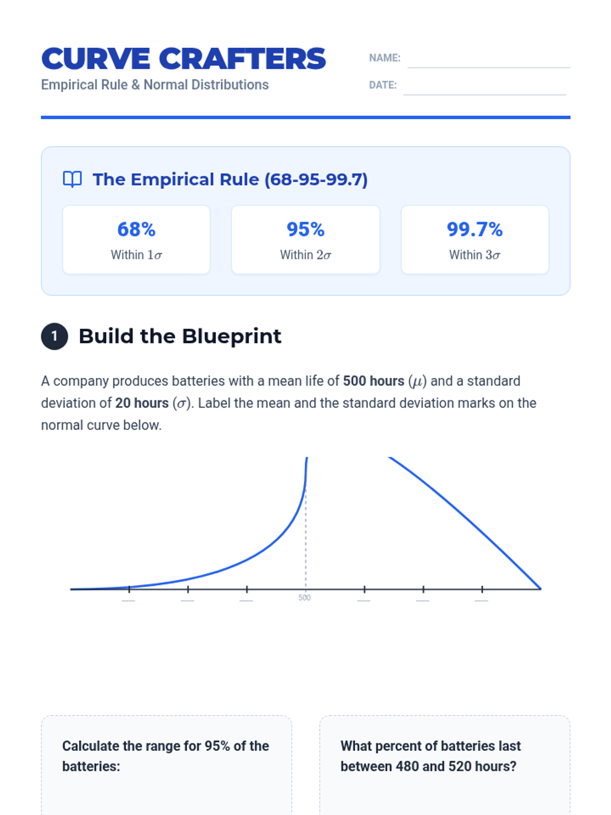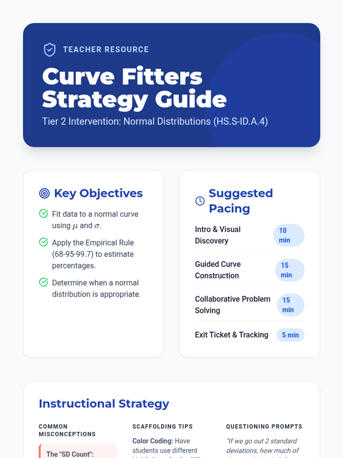 A Tier 2 intervention sequence focused on helping students master the Normal Distribution and the Empirical Rule through real-world applications and scaffolded practice.