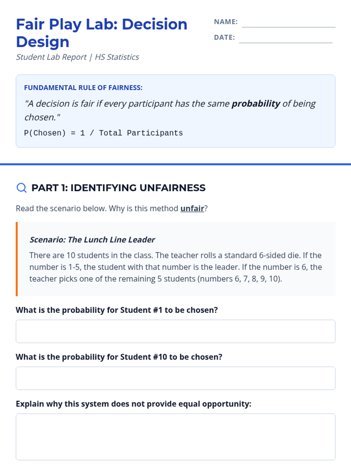 A comprehensive unit focused on practical applications of probability for high school students, emphasizing decision-making, fairness, and risk assessment.