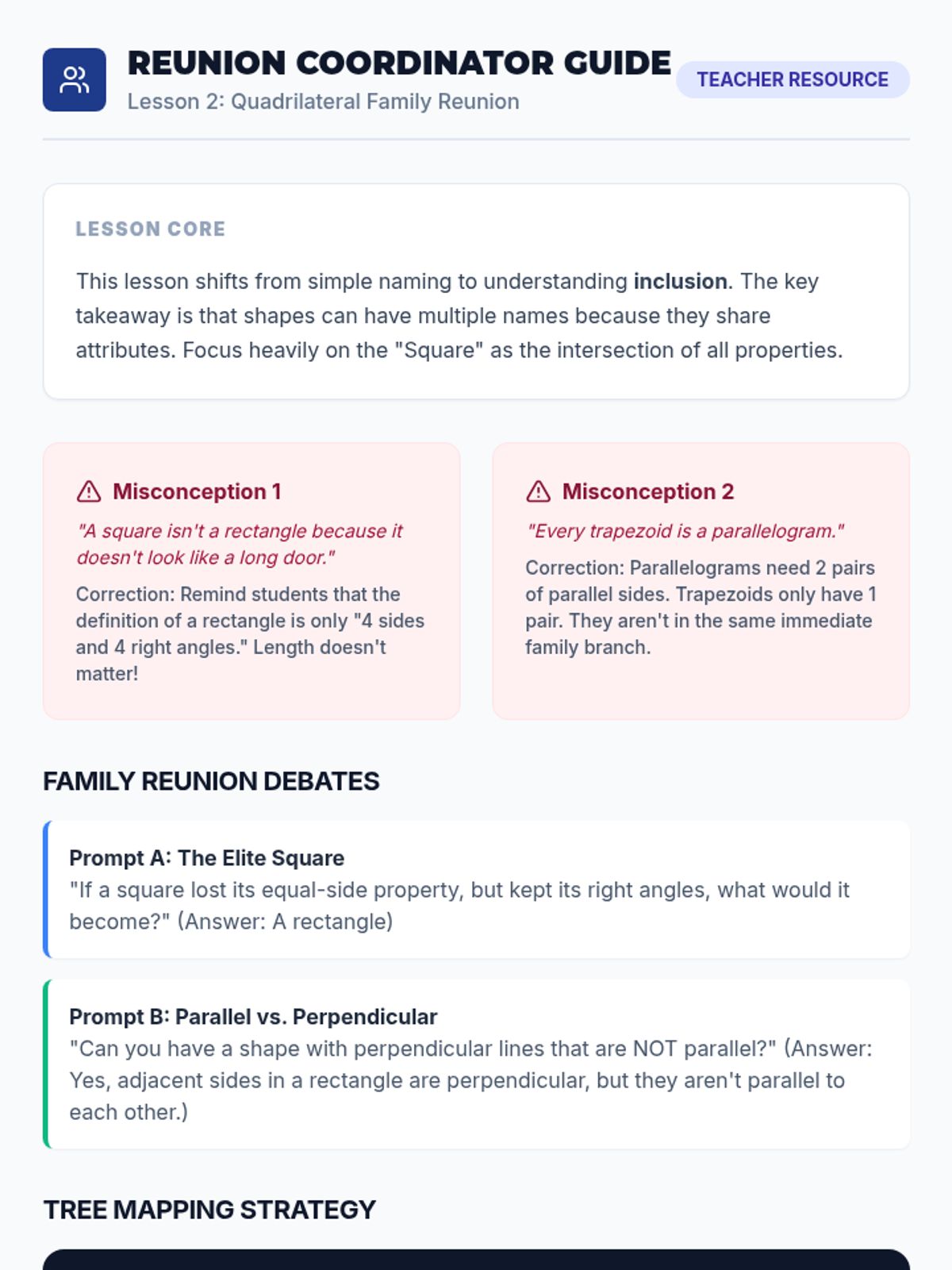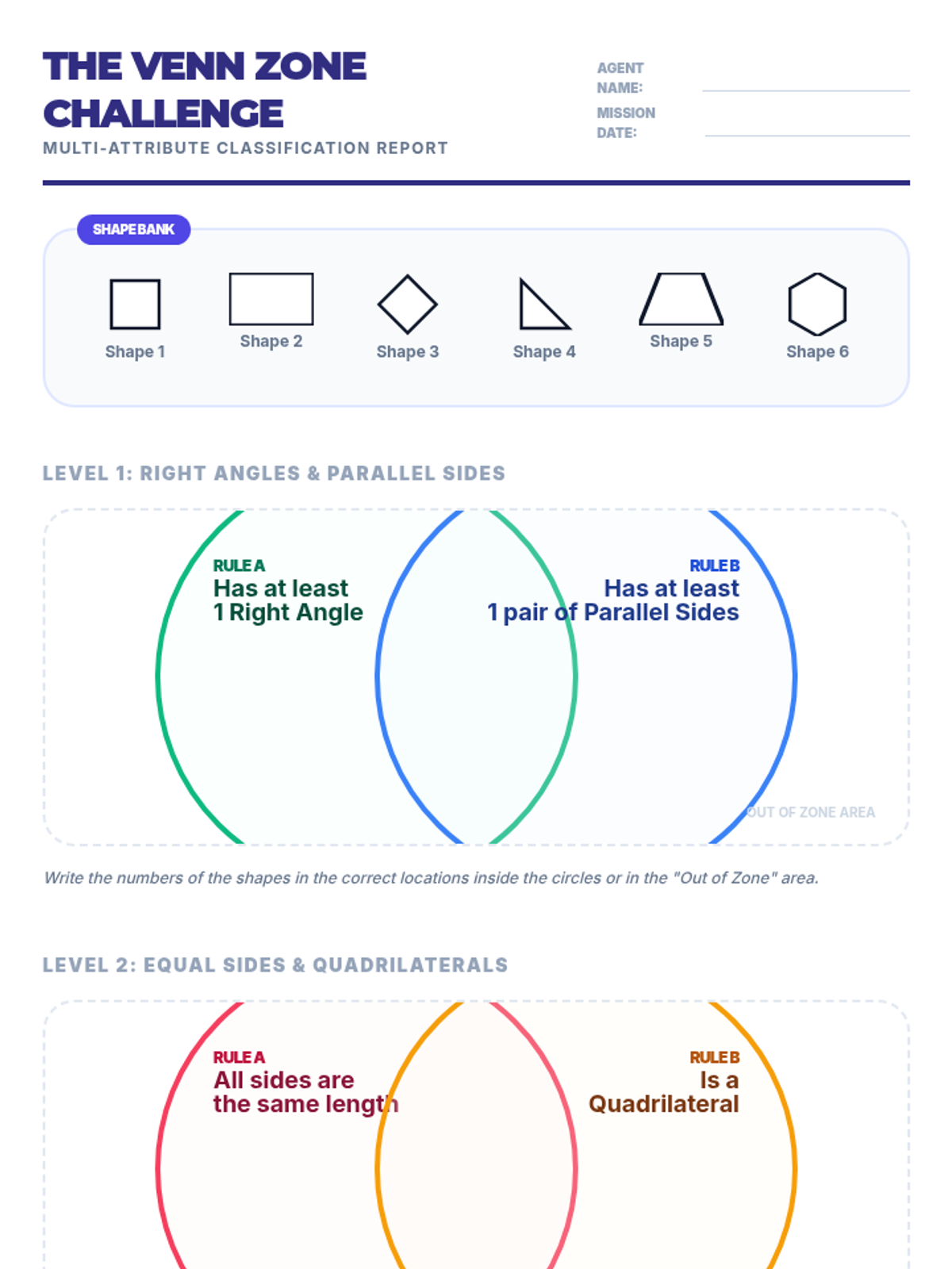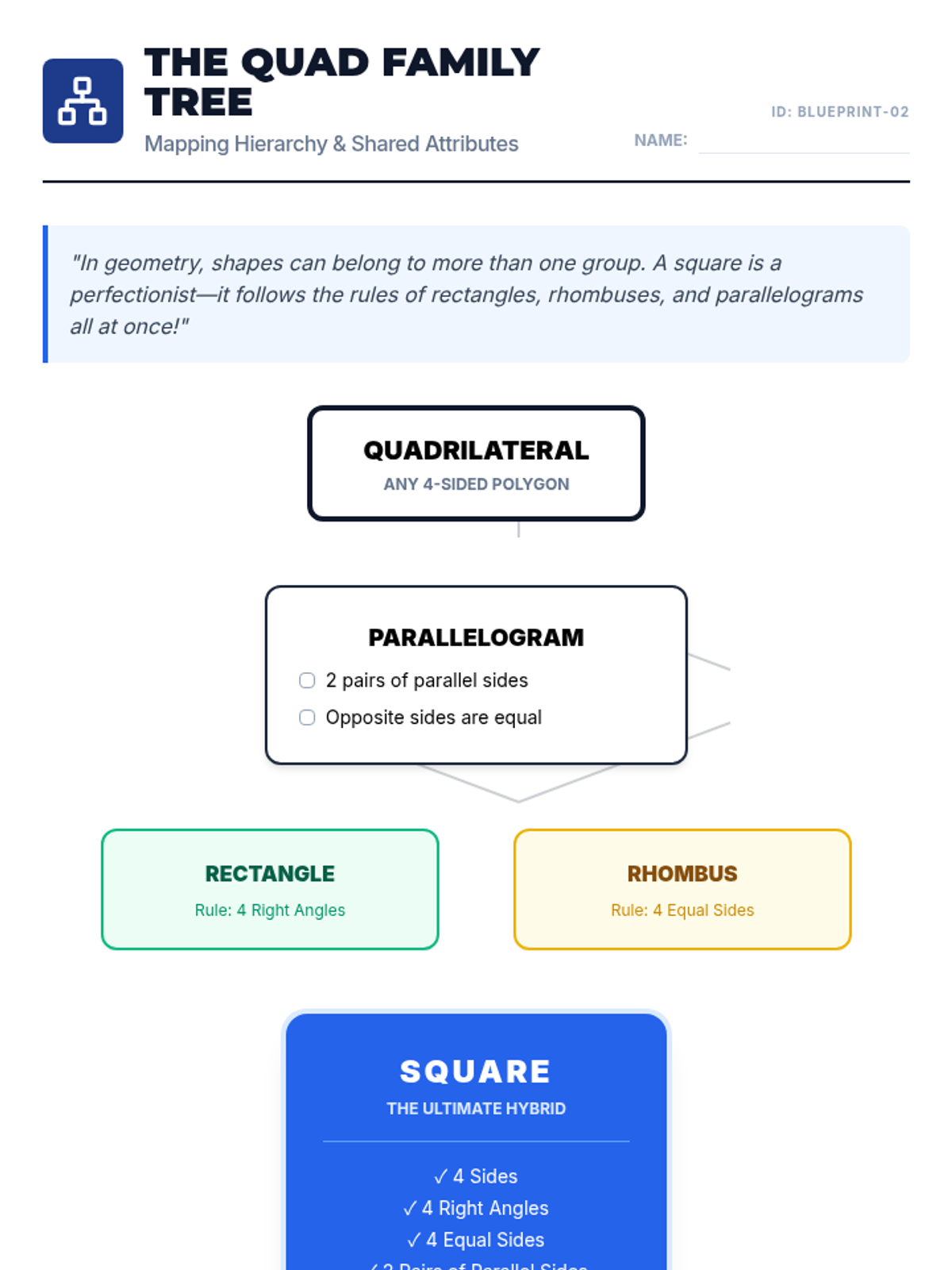 A comprehensive 4th-grade unit exploring the classification of 2D shapes based on angles, lines, and attributes, moving from basic triangles to complex quadrilateral hierarchies and regular polygons.