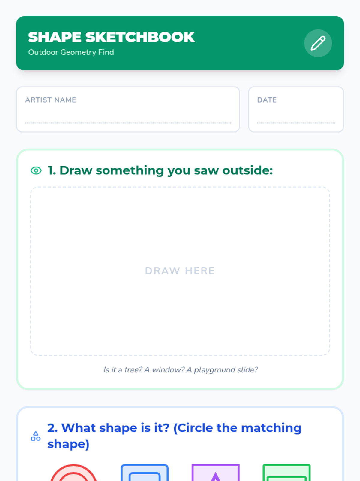 A Pre-K geometry sequence where students become 'Shape Detectives', learning to identify and locate 2D shapes in their immediate environment, from the classroom to the community.