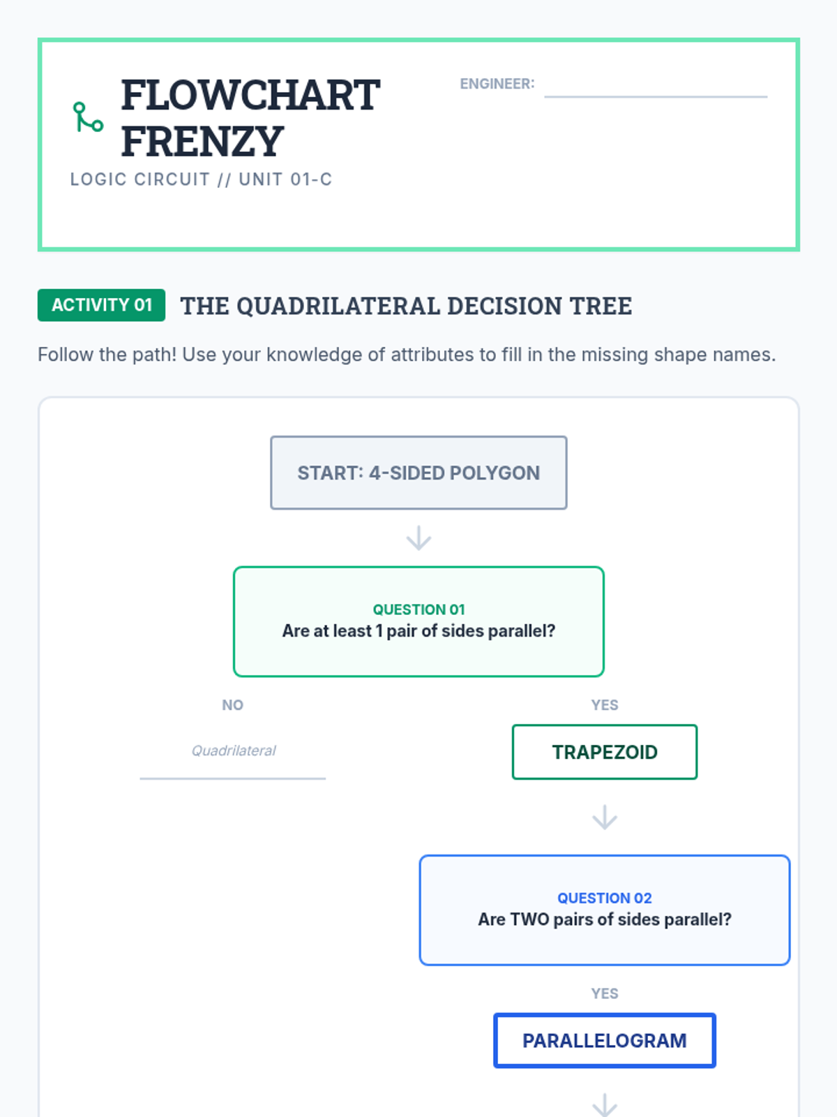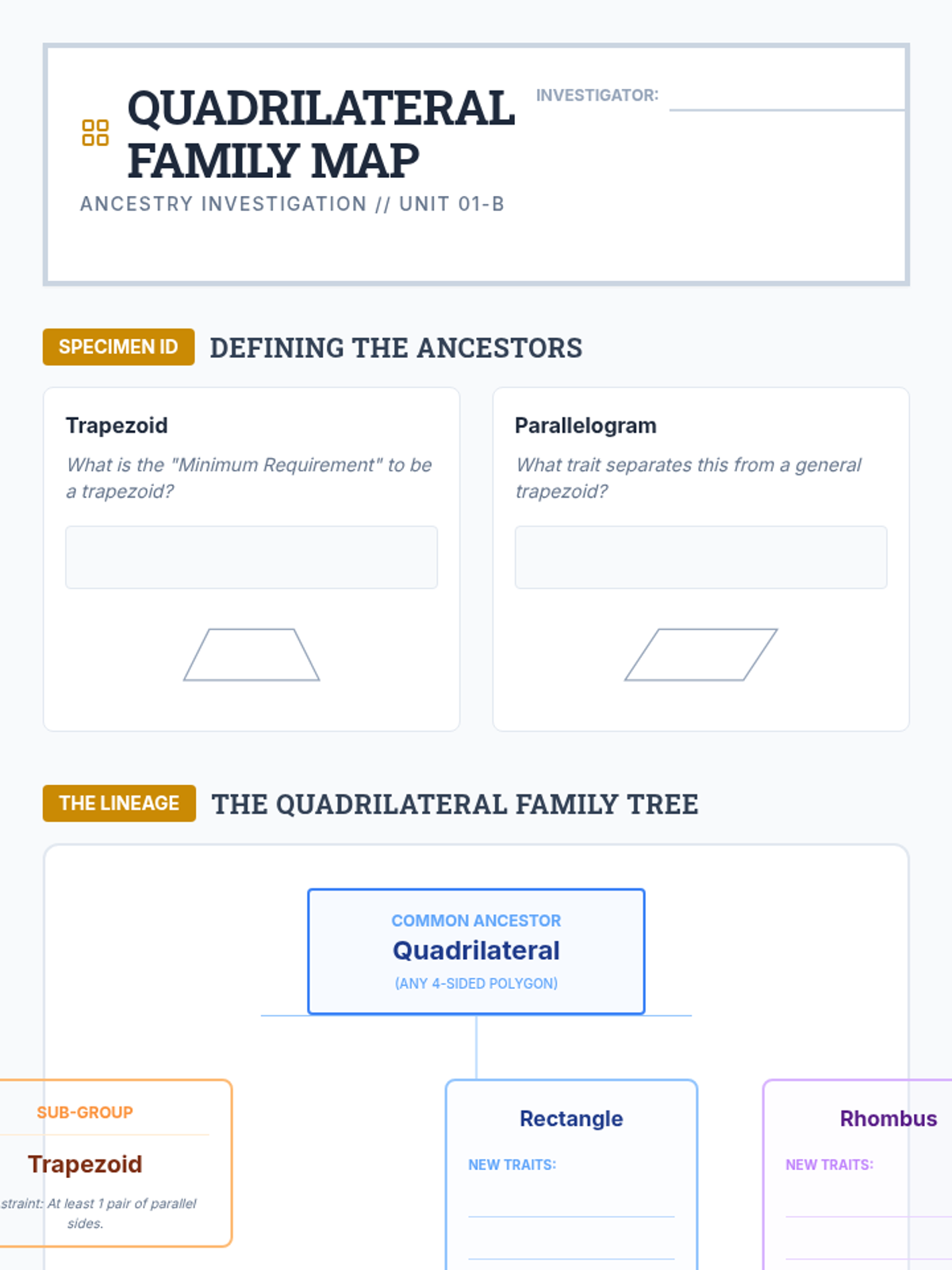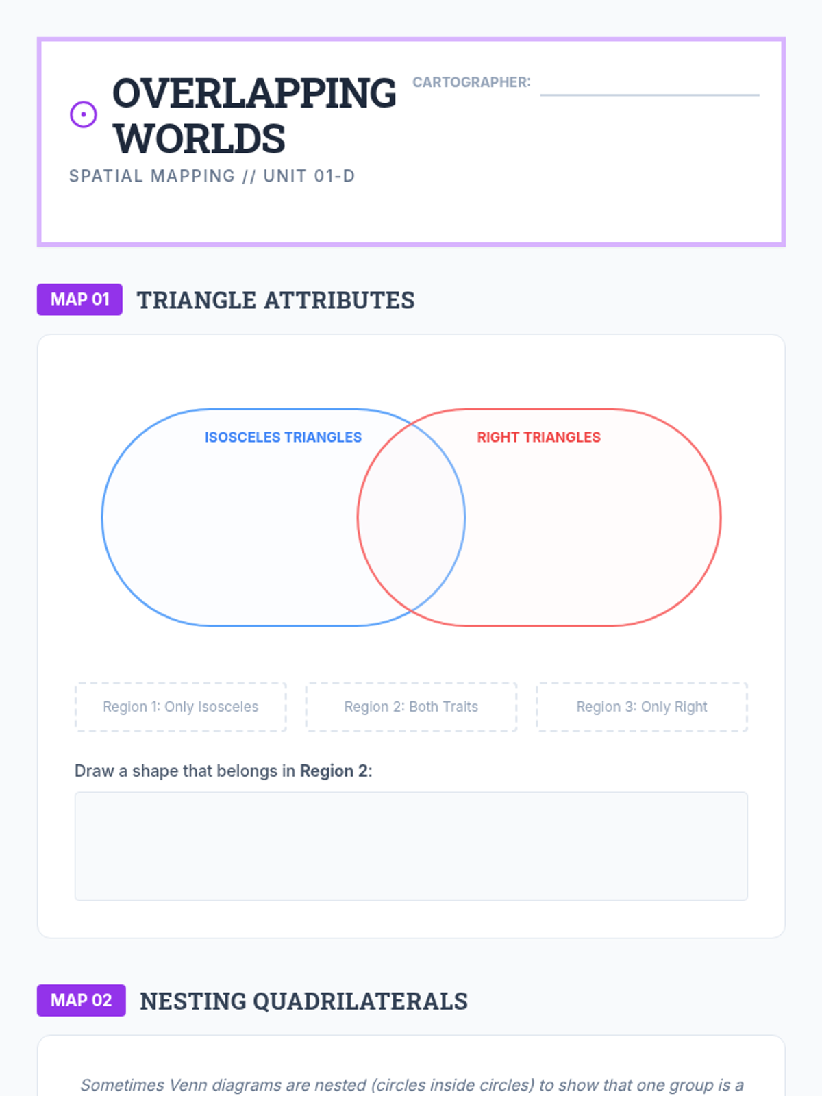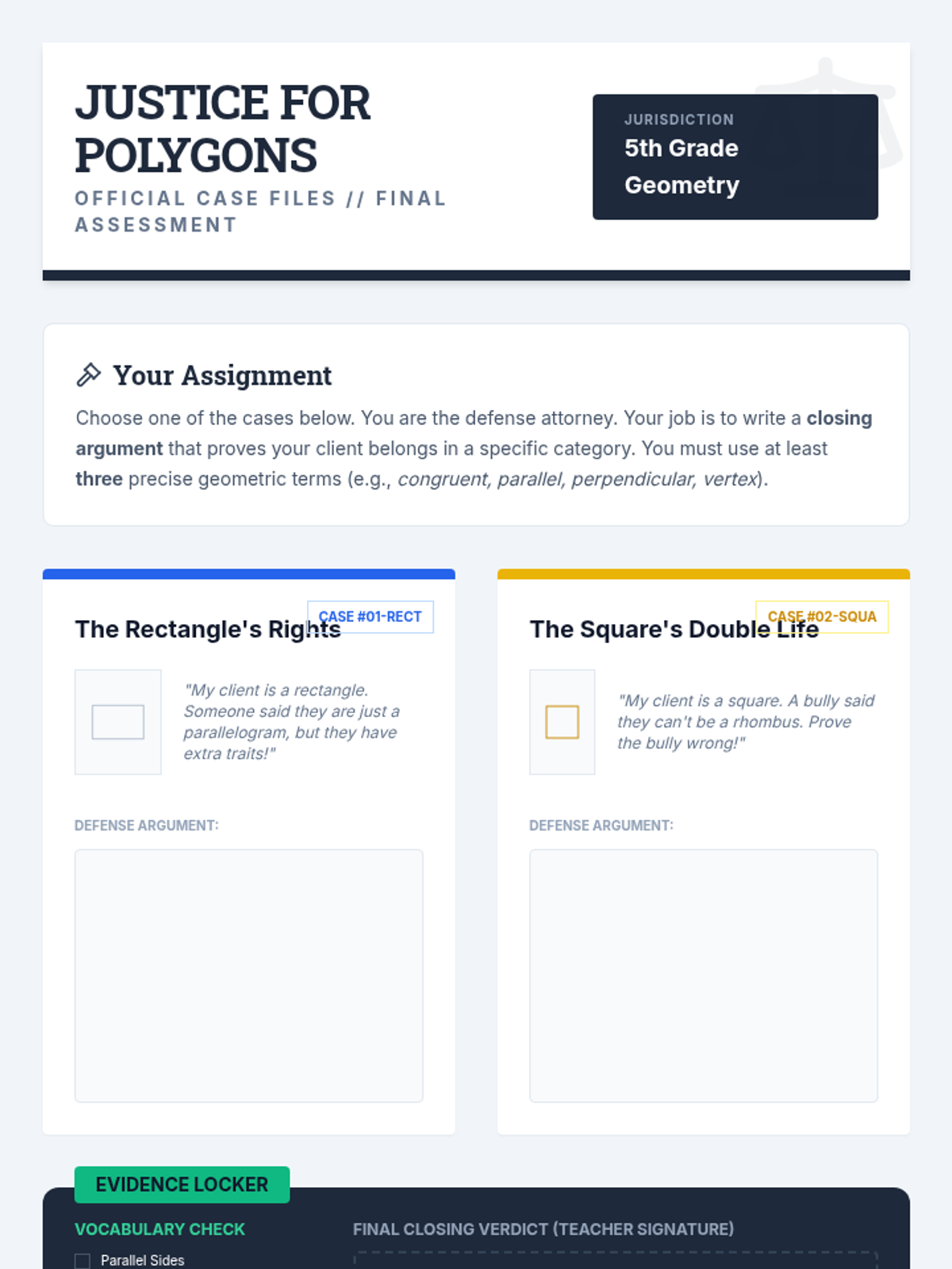 This inquiry-driven sequence guides 5th-grade students through the logical hierarchy of two-dimensional figures, focusing on triangles and quadrilaterals. Students investigate properties, construct Venn diagrams, and defend geometric definitions through argumentation and debate.