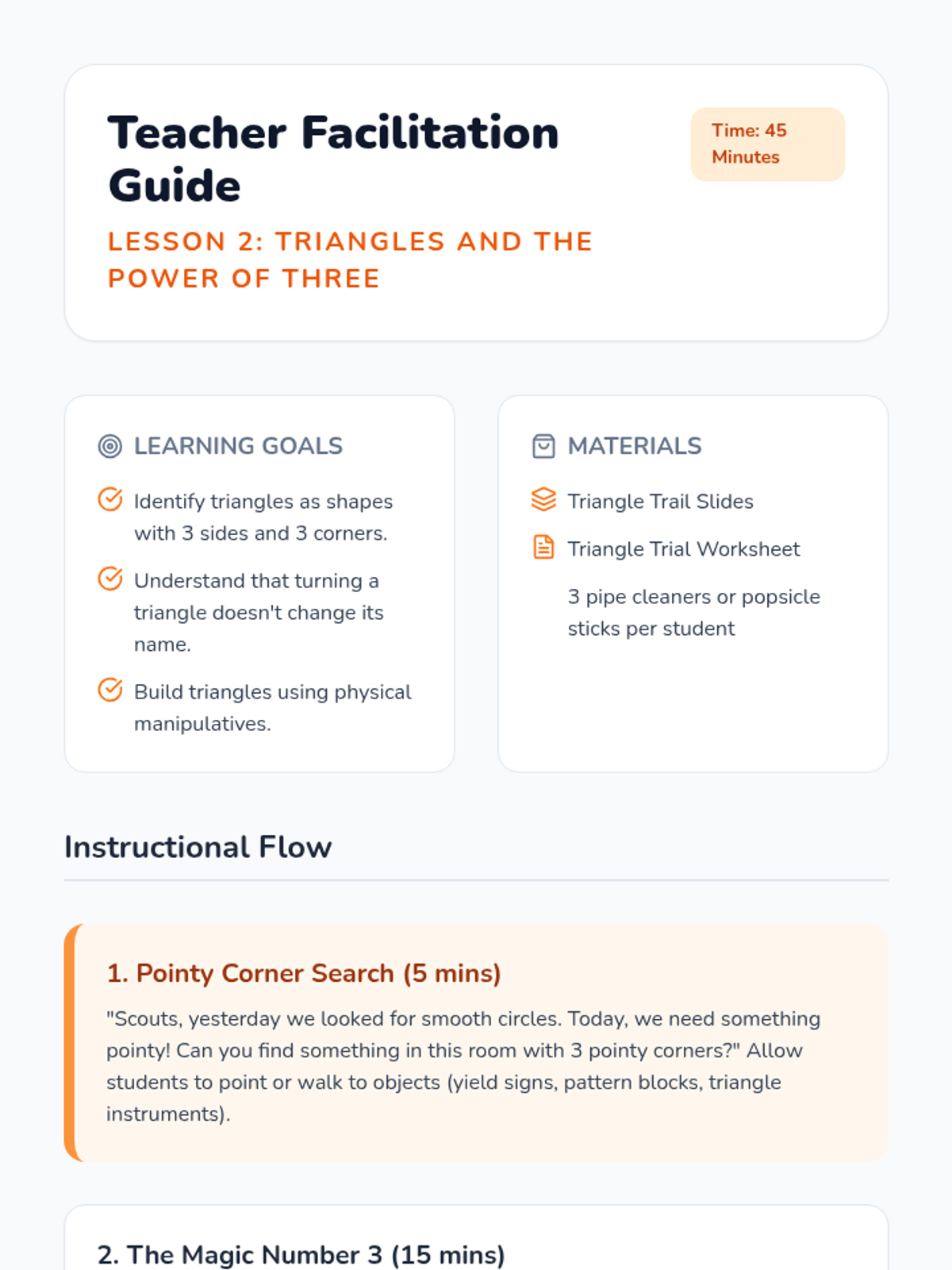 A targeted Tier 2 intervention sequence focused on helping Kindergarten students master the composition of geometric shapes using tangrams and guided discovery.