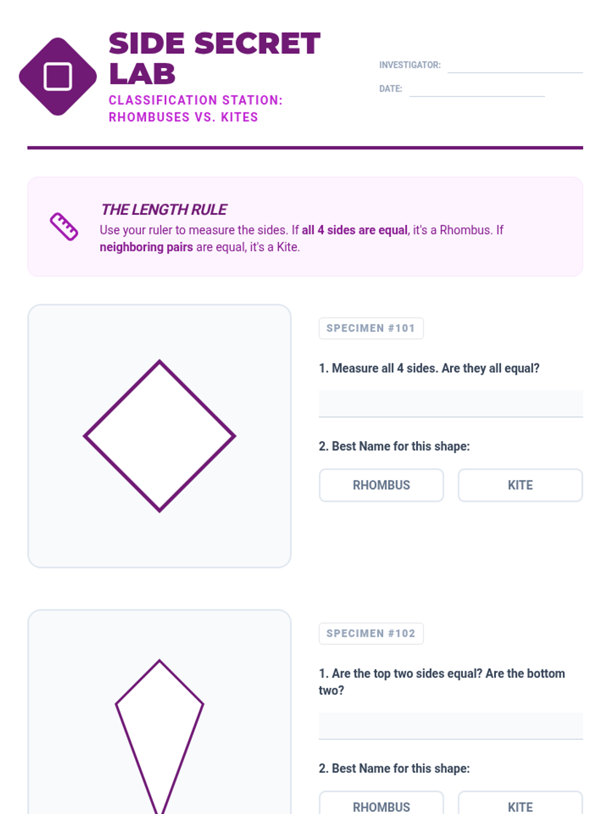 This sequence explores the properties and hierarchy of quadrilaterals, helping 3rd-grade students move beyond identification to analytical classification based on sides and angles.