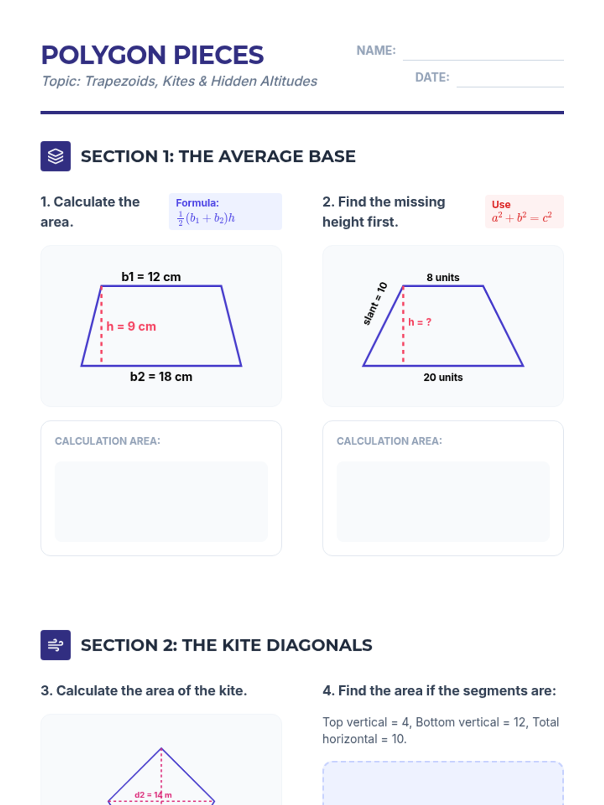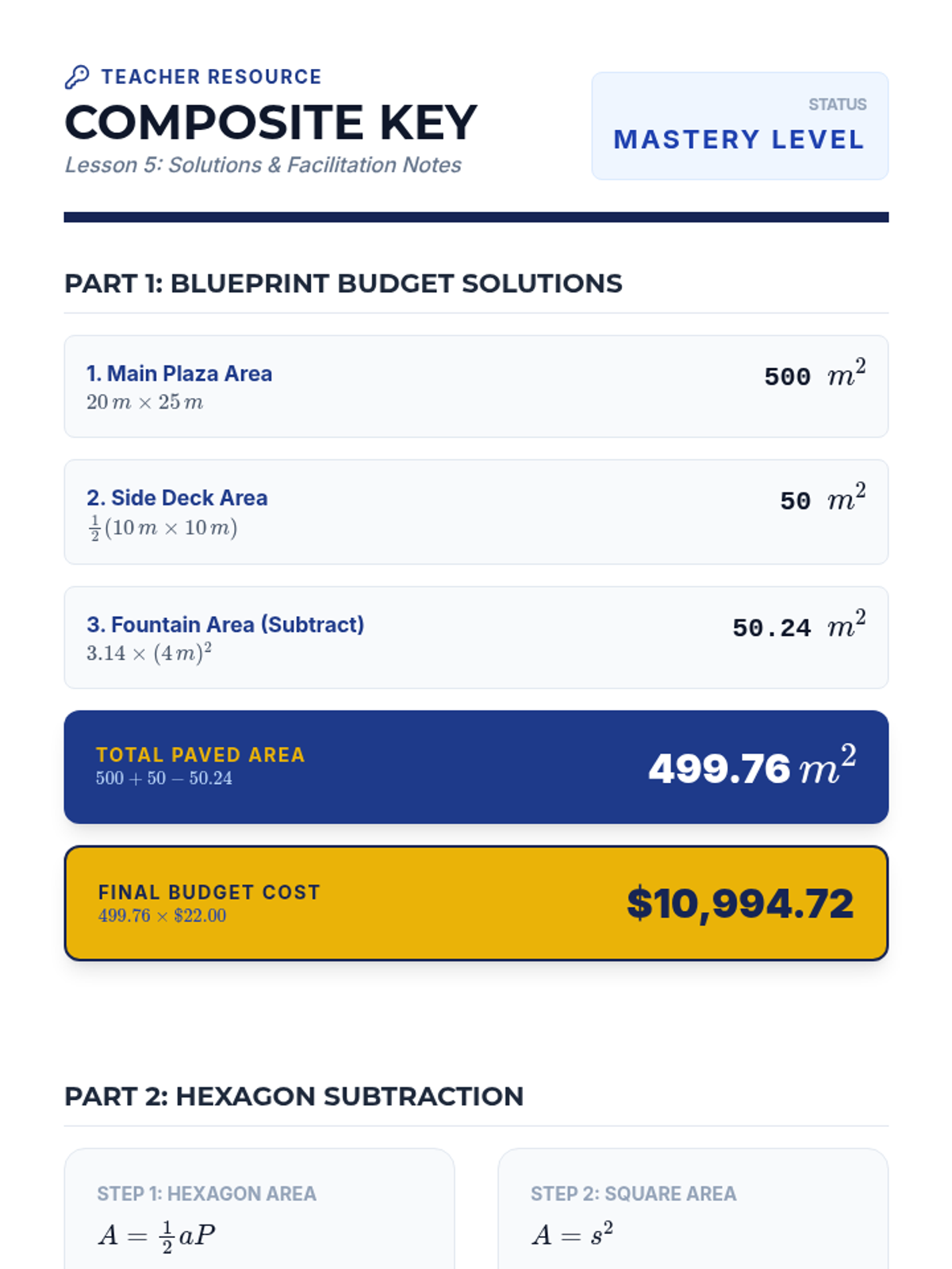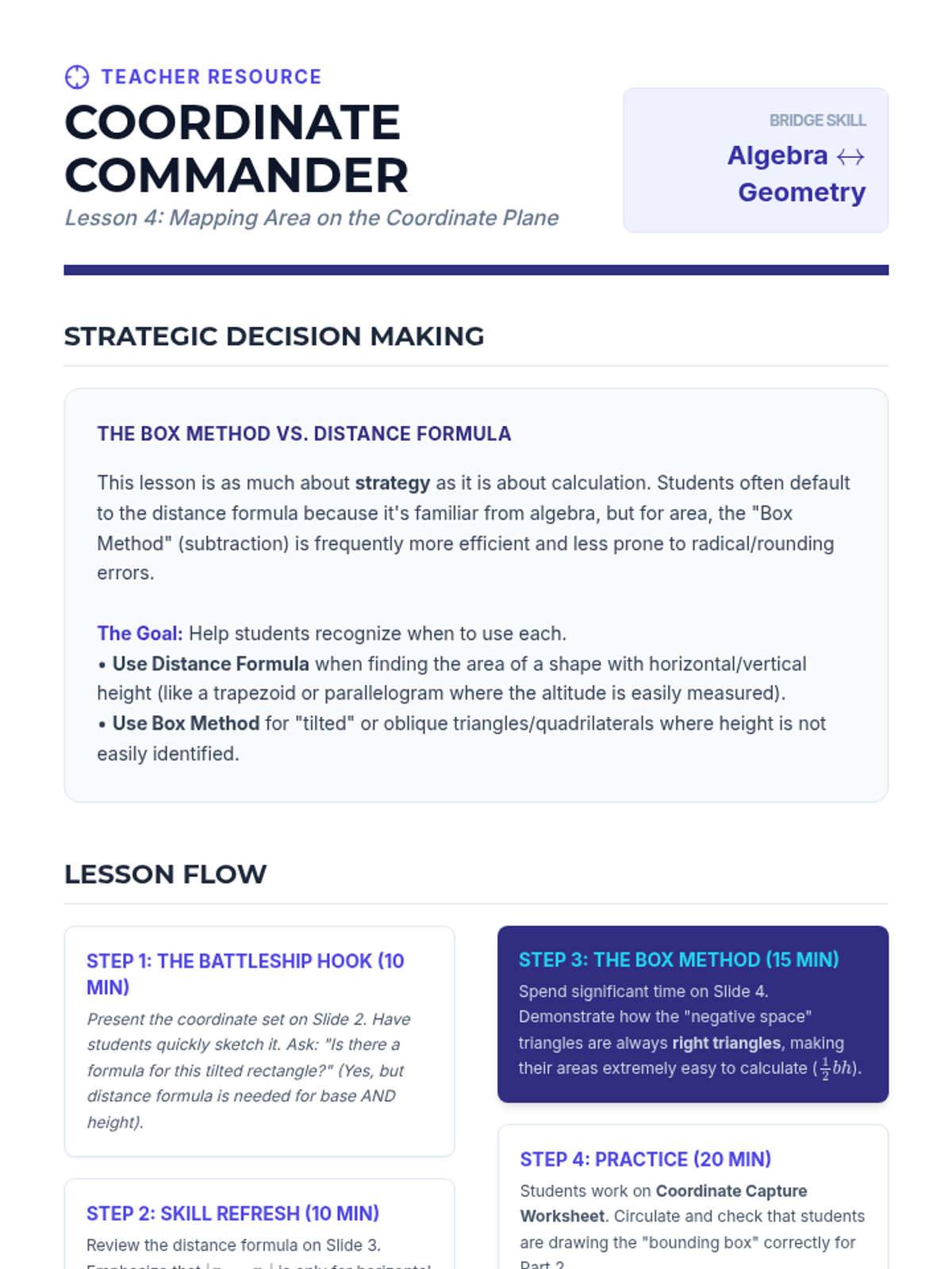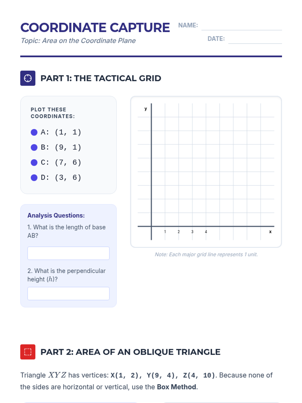 This geometry sequence for 9th grade explores the derivation and application of area formulas for polygons. Students progress from hands-on decomposition of triangles and parallelograms to complex composite figures and coordinate geometry, emphasizing spatial reasoning and strategic problem-solving.
