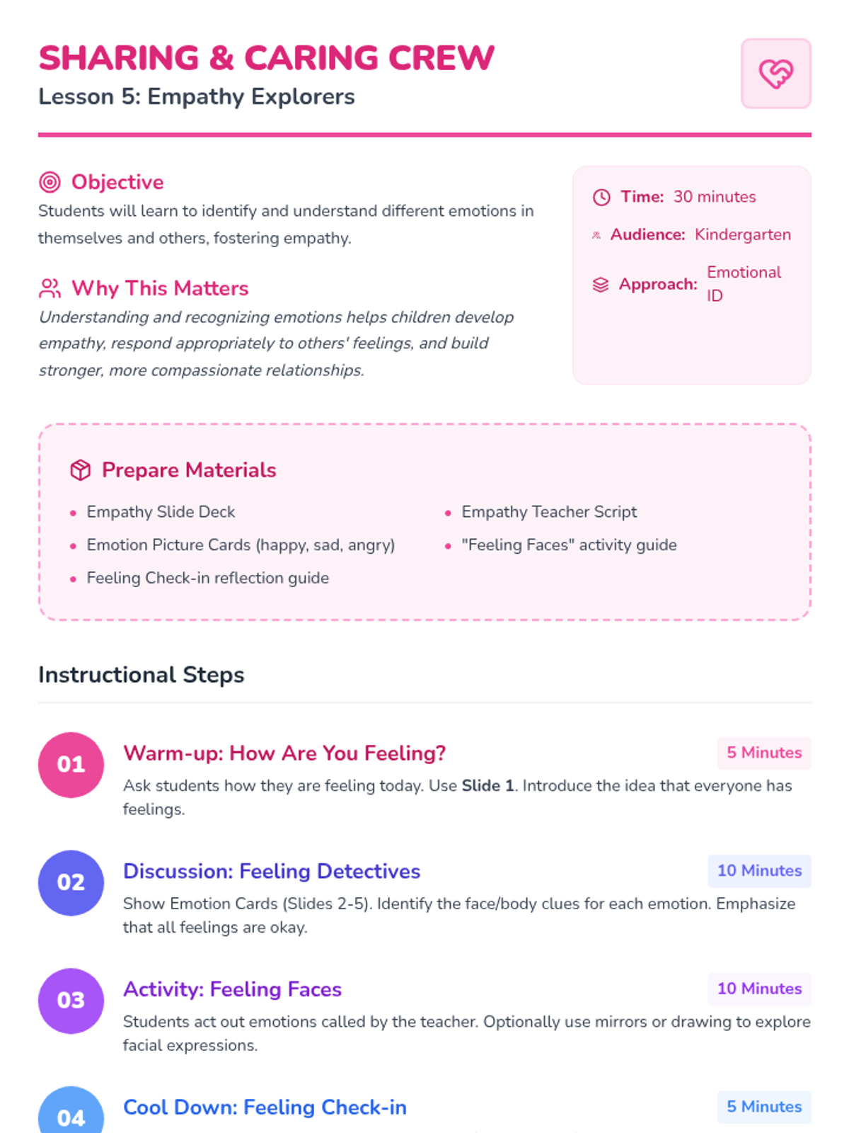 A series of lessons focused on building social-emotional skills and healthy friendships in early elementary grades.