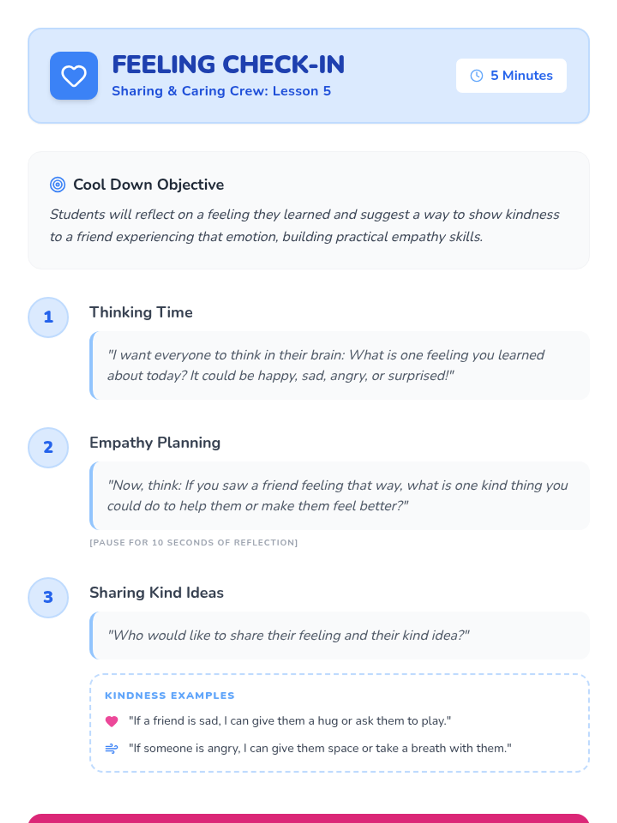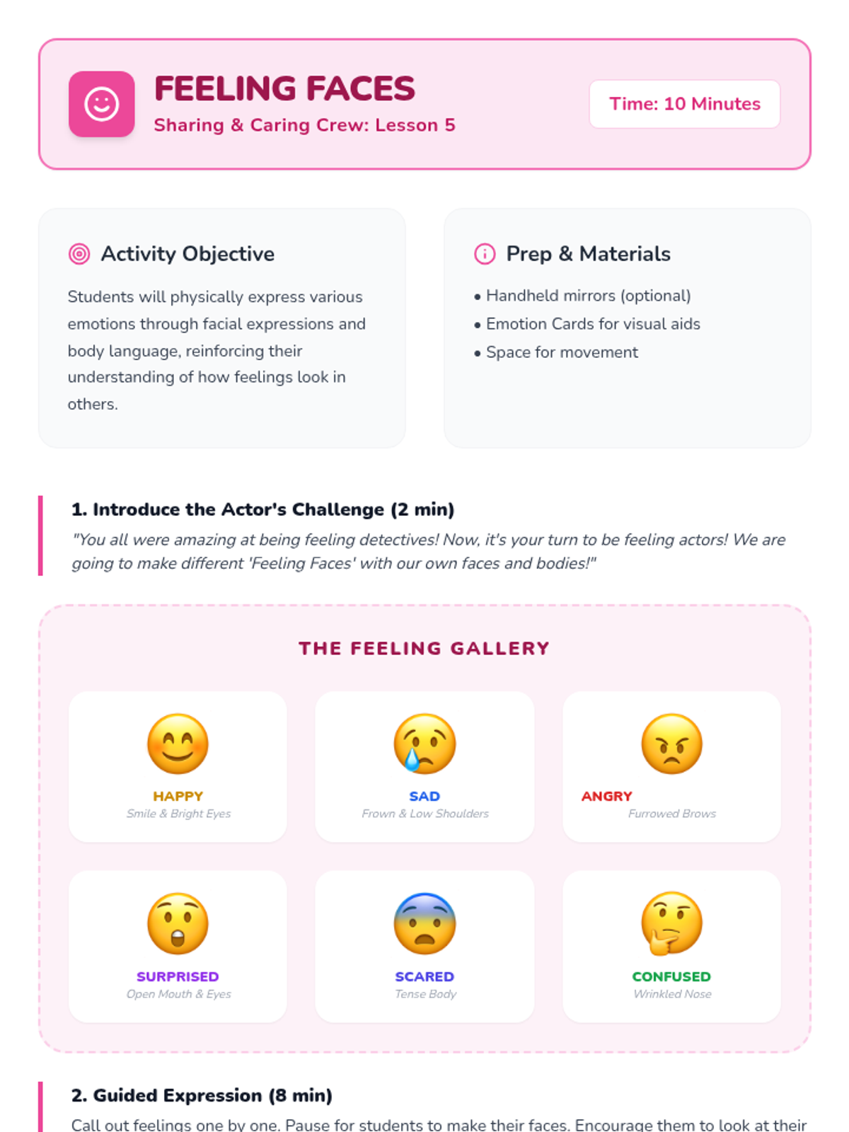 A sequence focused on building social-emotional competencies, starting with identifying and understanding a wide range of emotions. Students learn to recognize physical cues and situational triggers for different feelings.