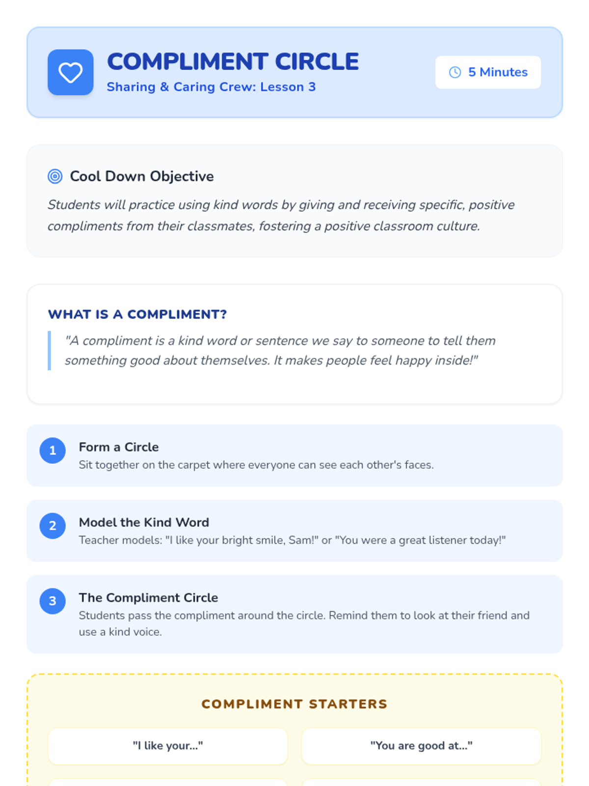 A collection of lessons focused on essential social-emotional skills across primary grades, including anger management, following directions, and mindfulness.