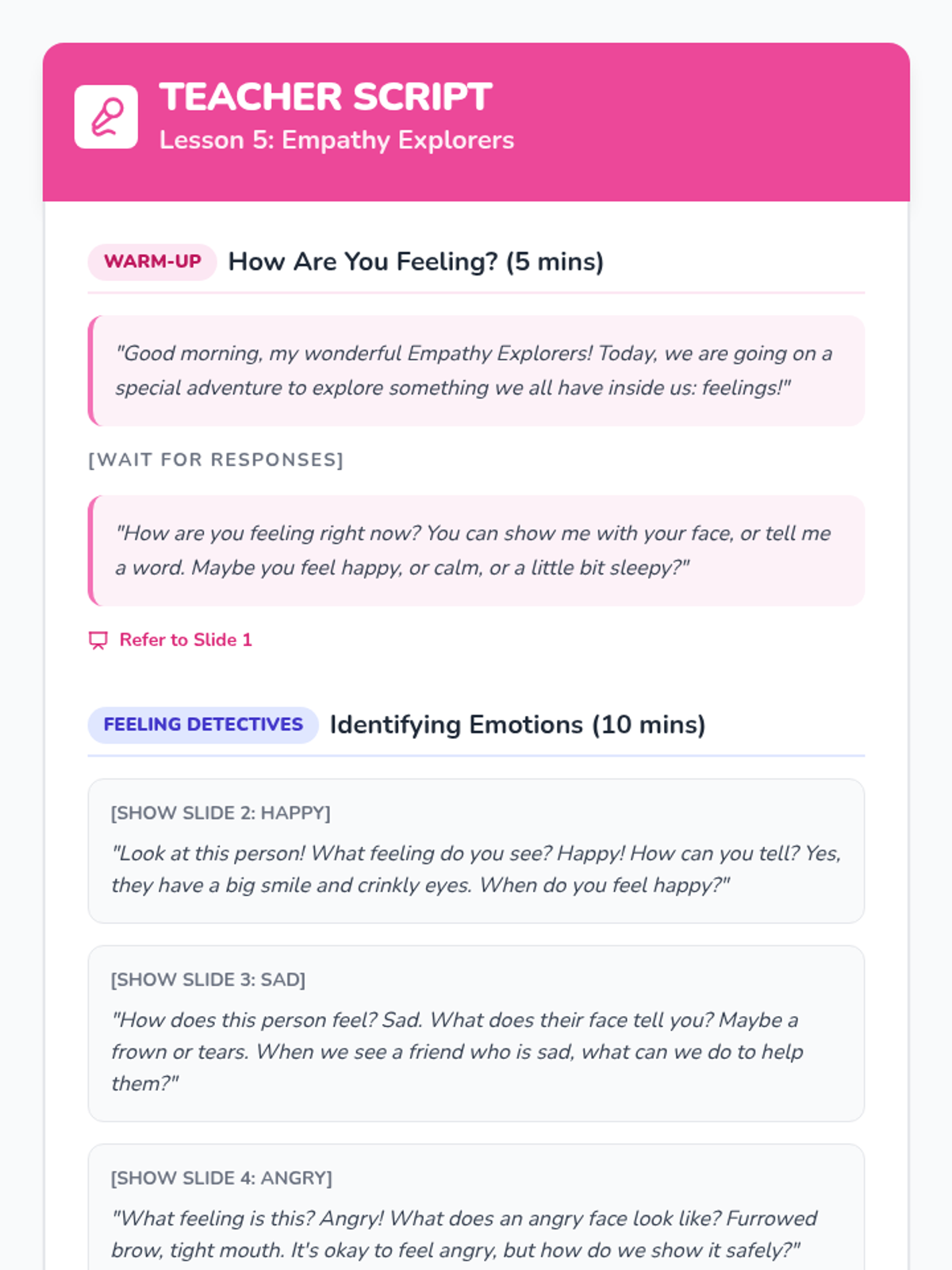 A social-emotional learning journey where students learn to identify, understand, and manage their feelings. Using high-contrast visuals and interactive activities, students become 'Mood Missionaries' on a quest to master their inner world.