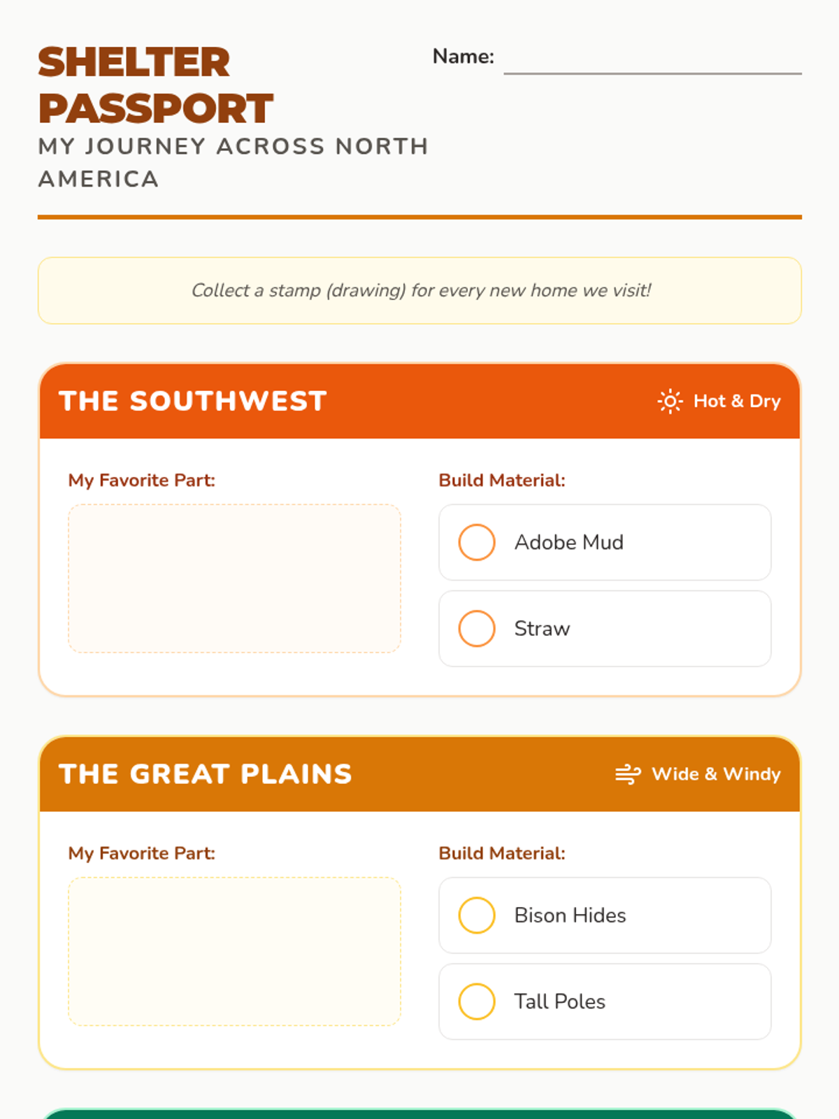 Students explore how geography and natural resources influenced the traditional homes of Native American peoples across North America. The sequence focuses on observation, material properties, and the relationship between environment and human adaptation.