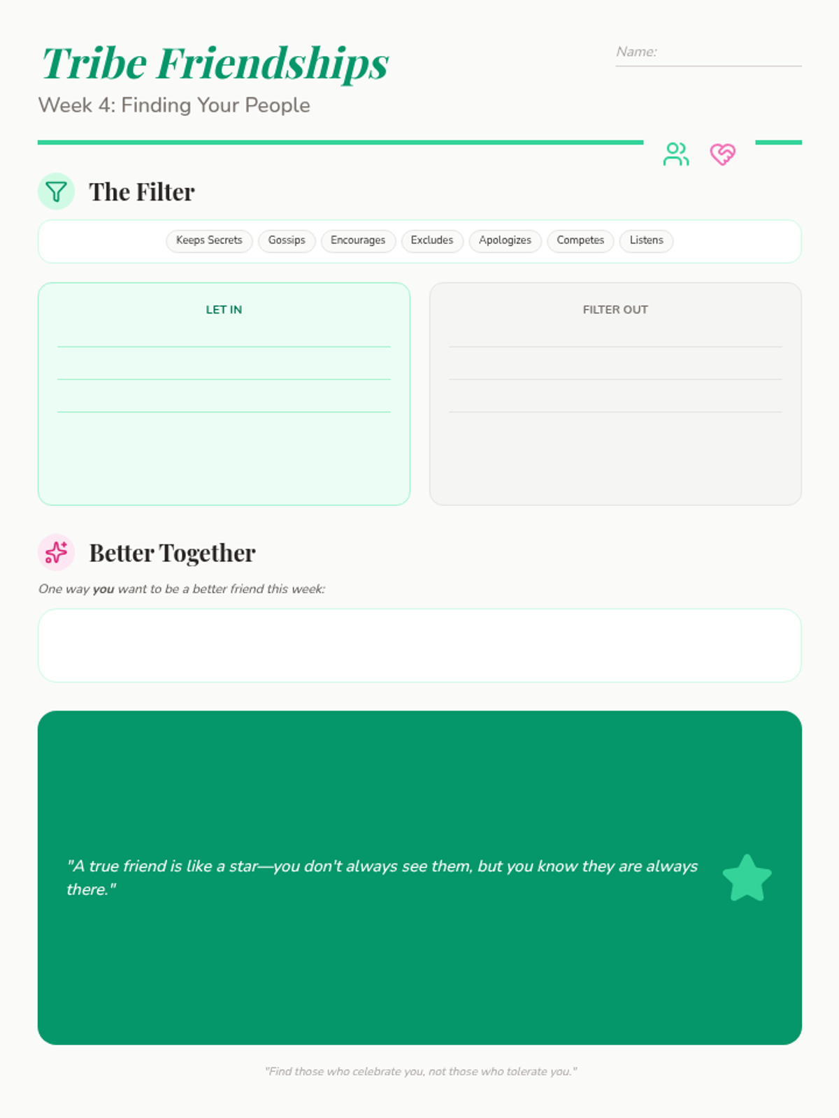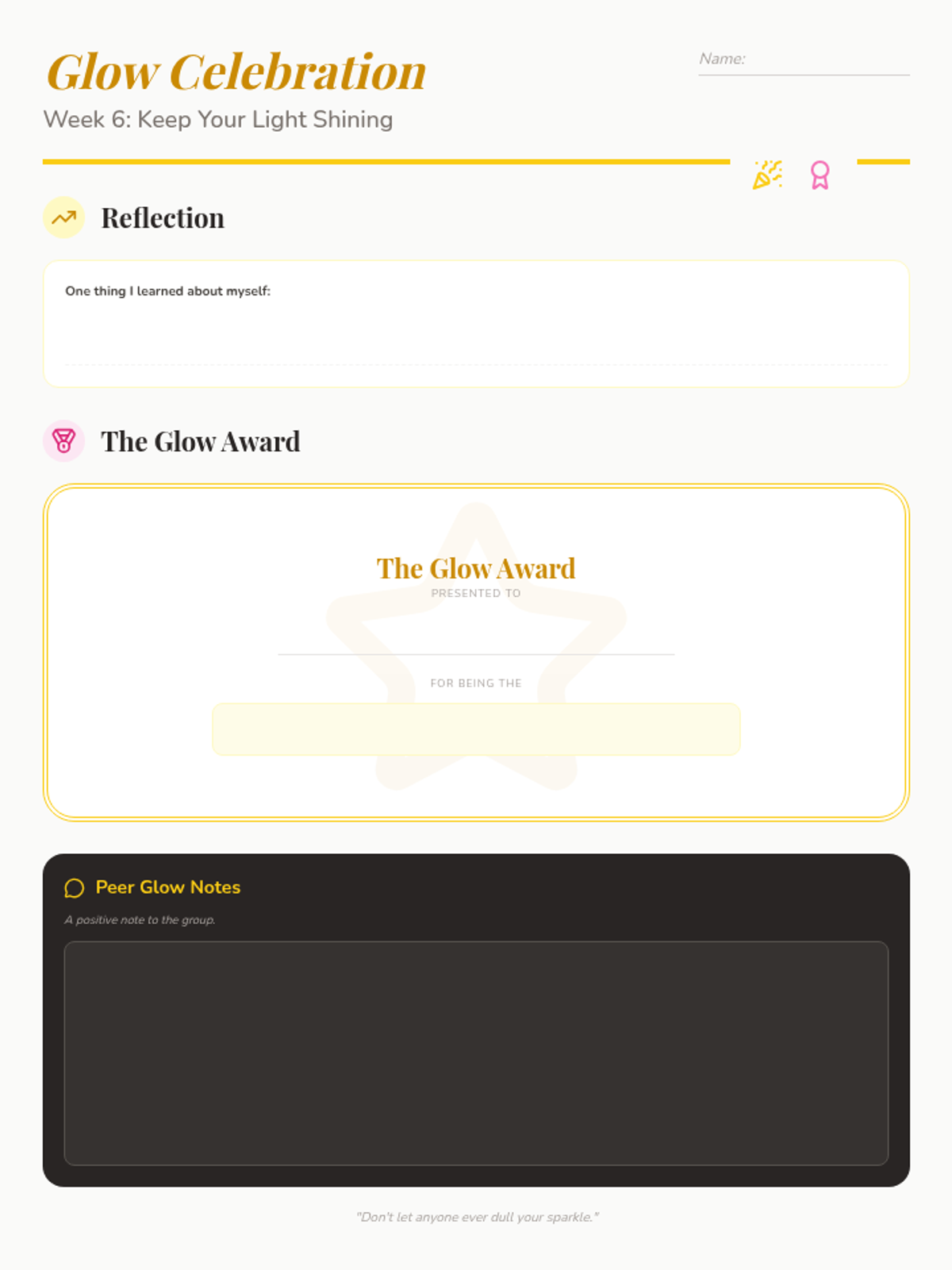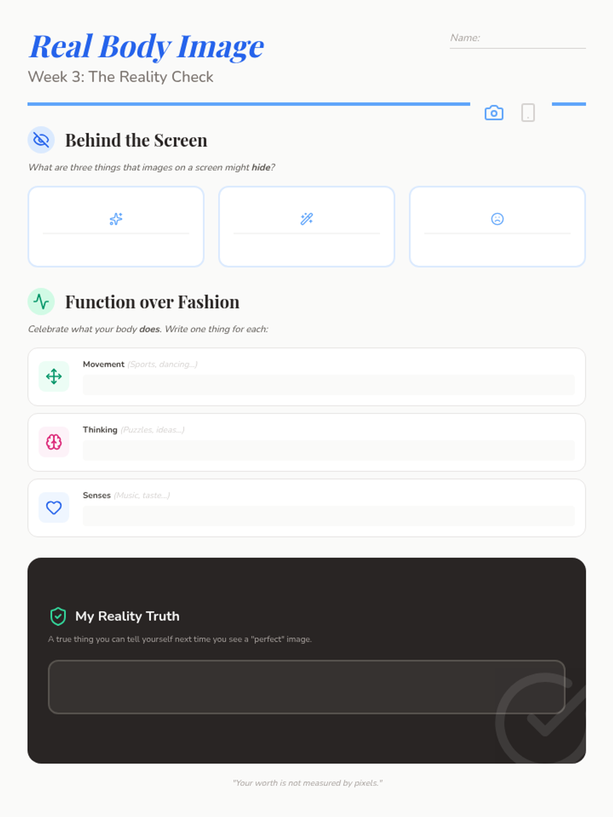 A 6-week self-esteem program for 5th-grade girls designed for 30-minute weekly sessions, covering identity, self-talk, body image, friendships, and goals.
