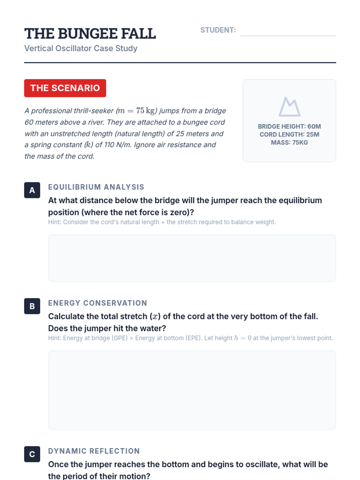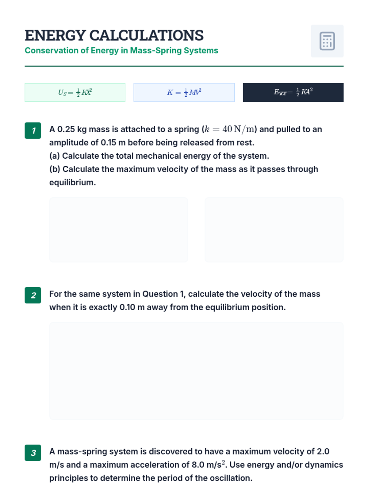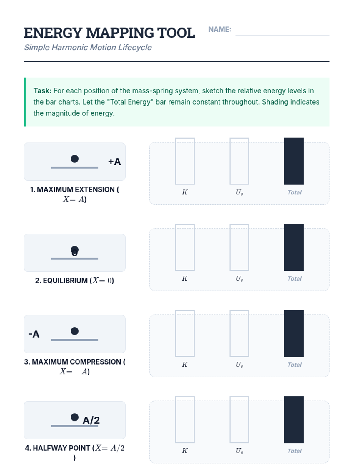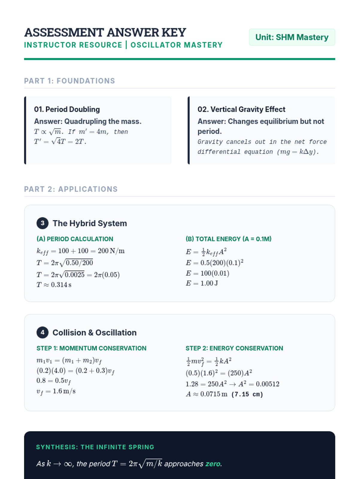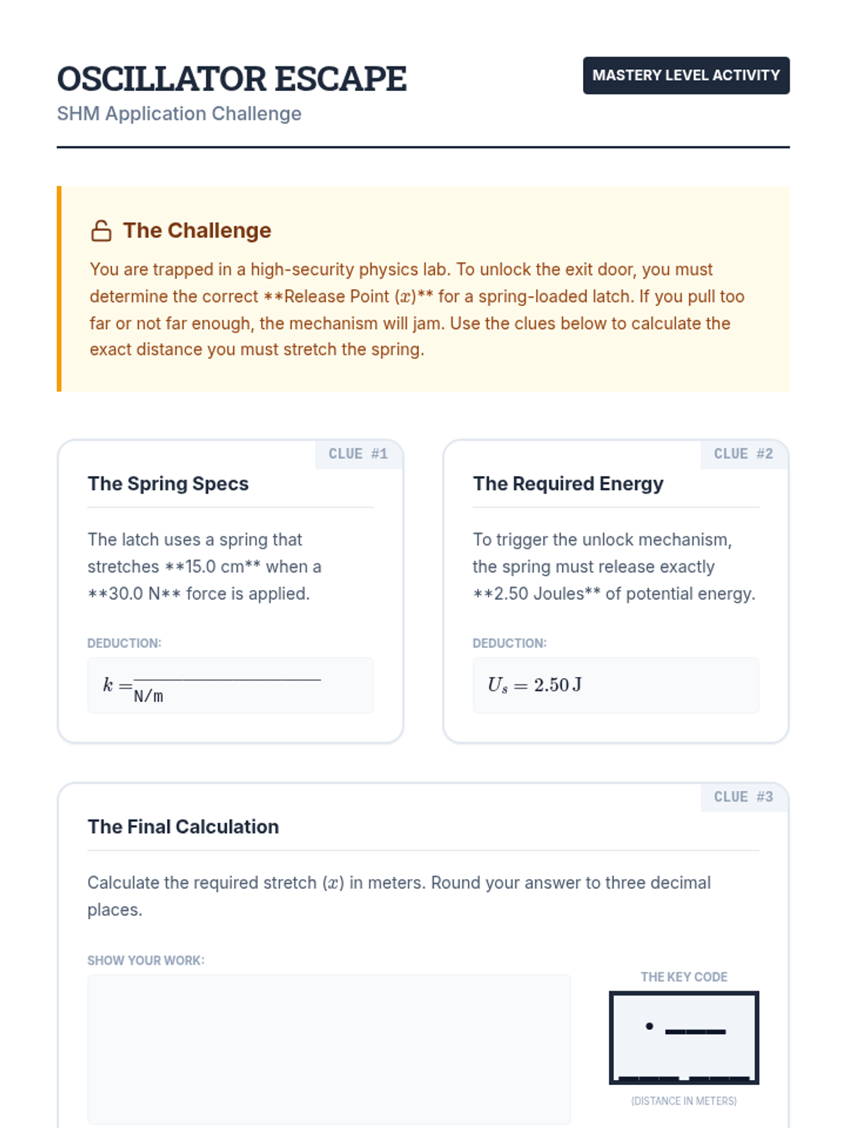 A comprehensive 12th-grade physics sequence exploring the dynamics and energy of mass-spring systems, moving from Hooke's Law to energy conservation and vertical oscillators.