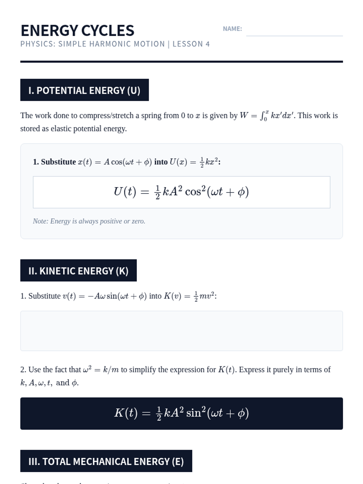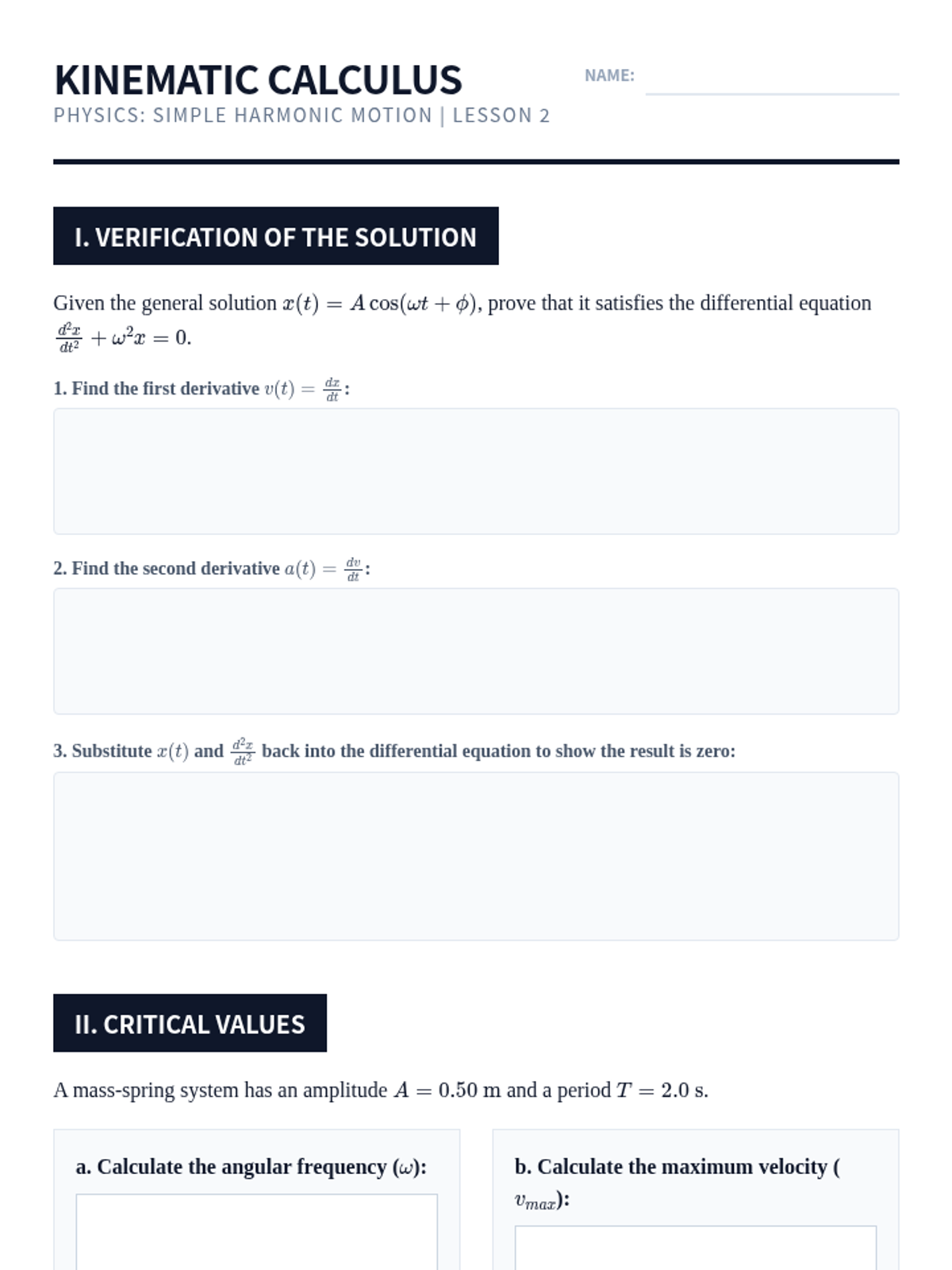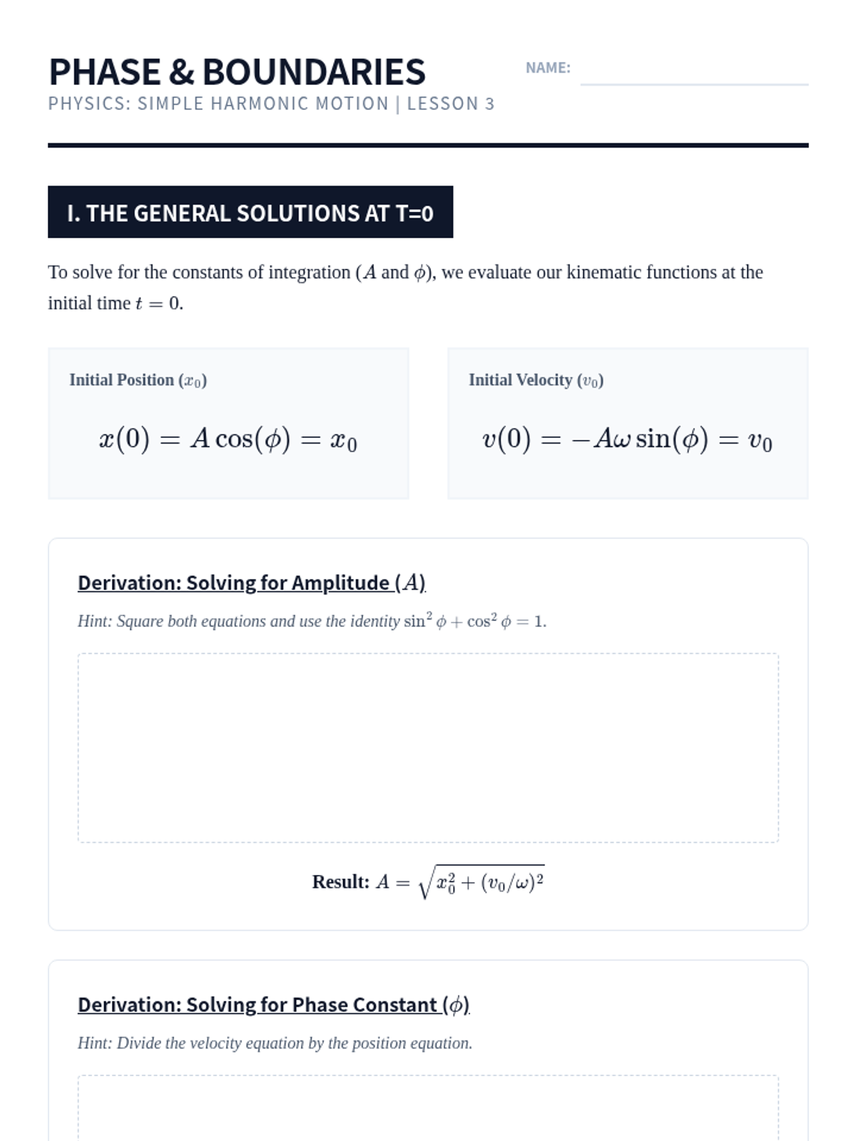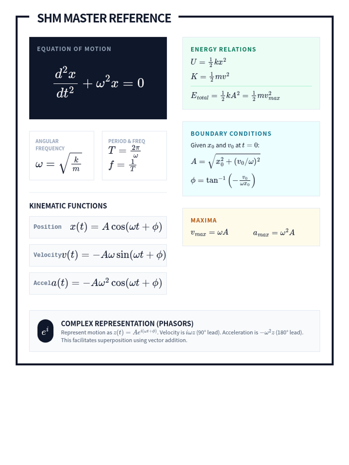 This sequence establishes the rigorous mathematical framework necessary for analyzing Simple Harmonic Motion (SHM) at the university level, covering derivations, kinematics, initial conditions, energy, and phasor representations.