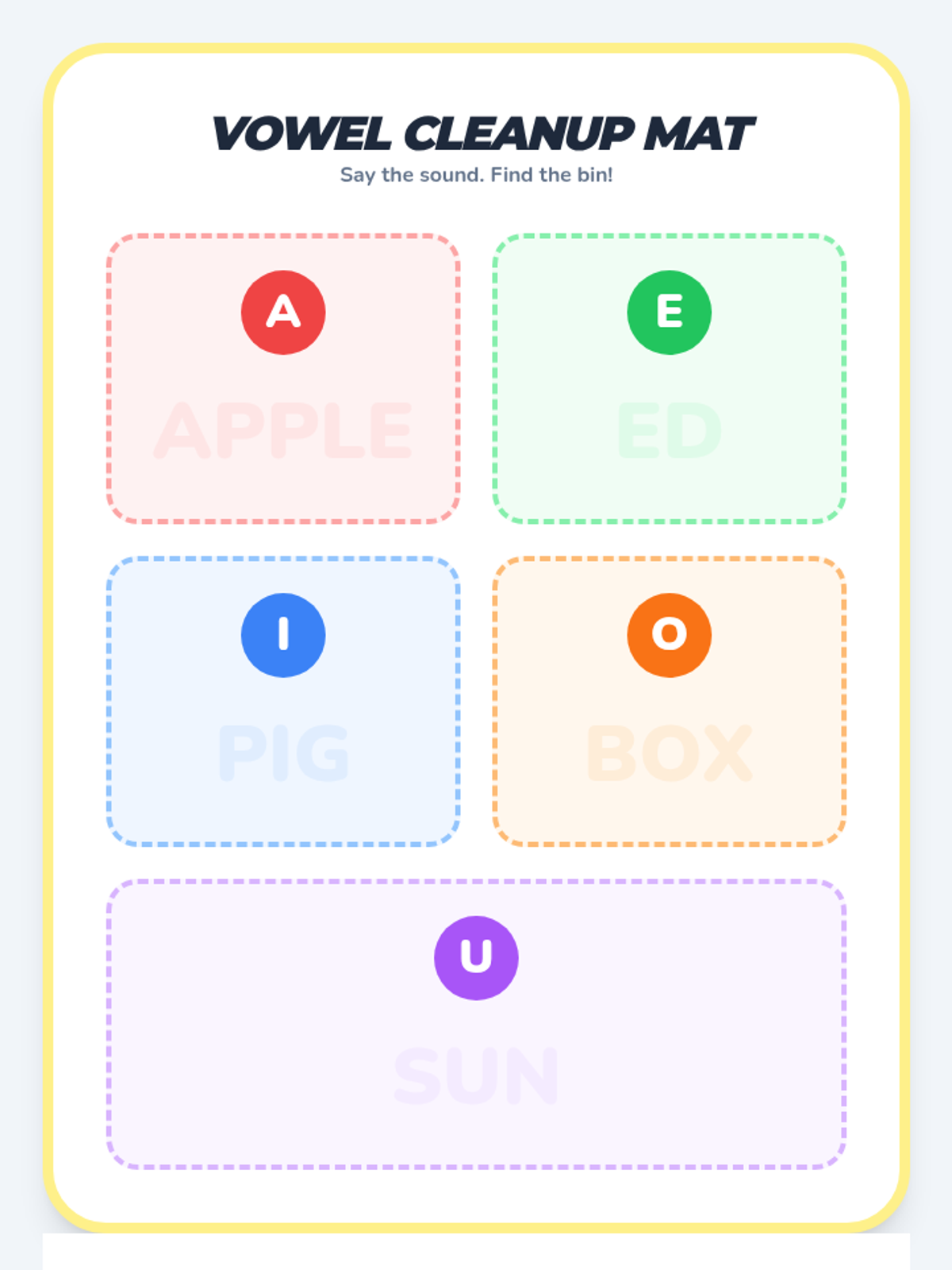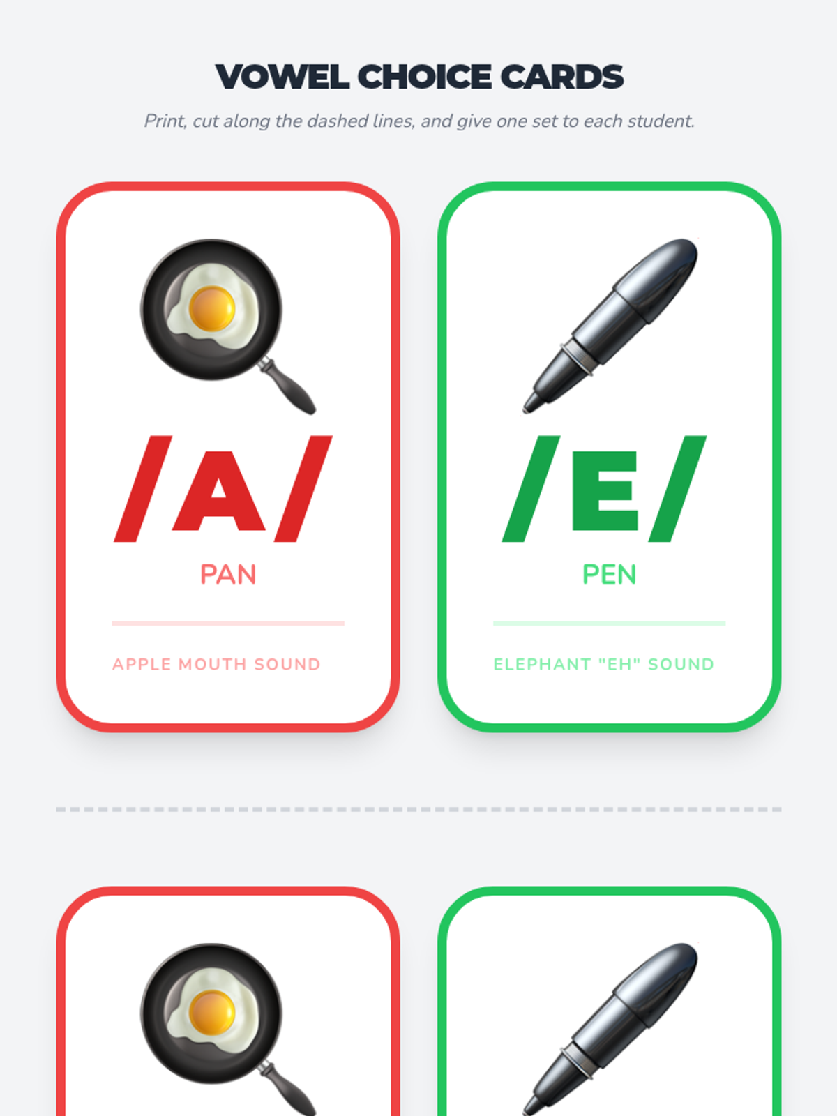 A comprehensive Pre-K sequence focused on mastering the short /e/ sound and distinguishing it from other vowels. Includes articulatory practice, minimal pair discrimination, word family exploration, and a final certification showcase.