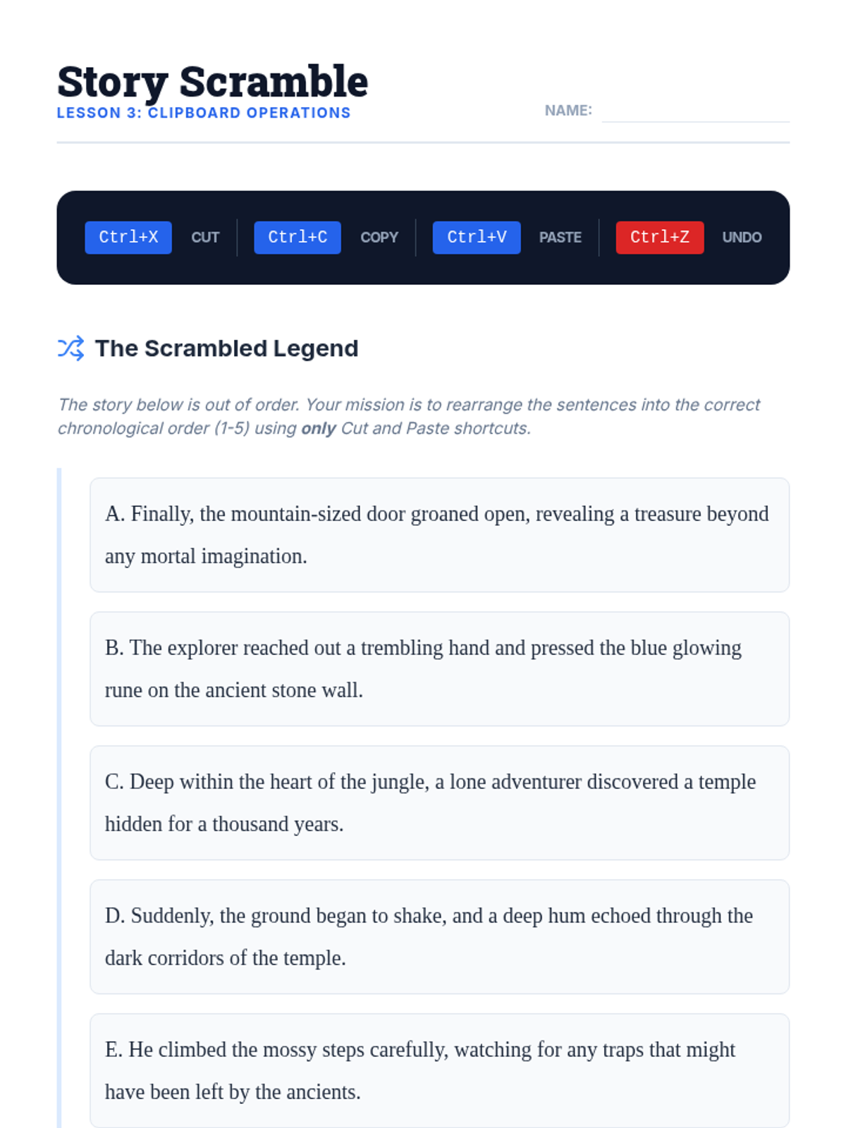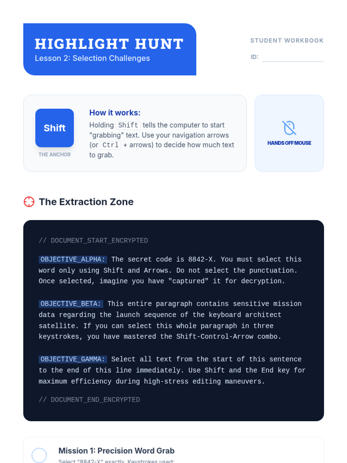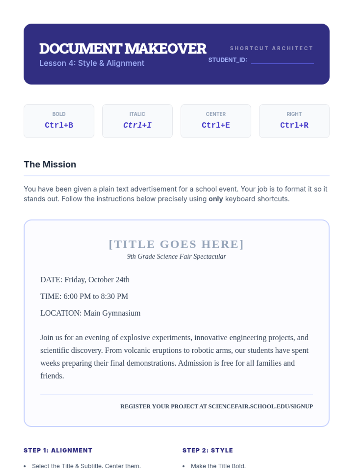 This workshop-style sequence equips 9th-grade students with essential keyboard shortcuts for academic writing and editing, moving from basic cursor navigation to advanced document formatting and review.