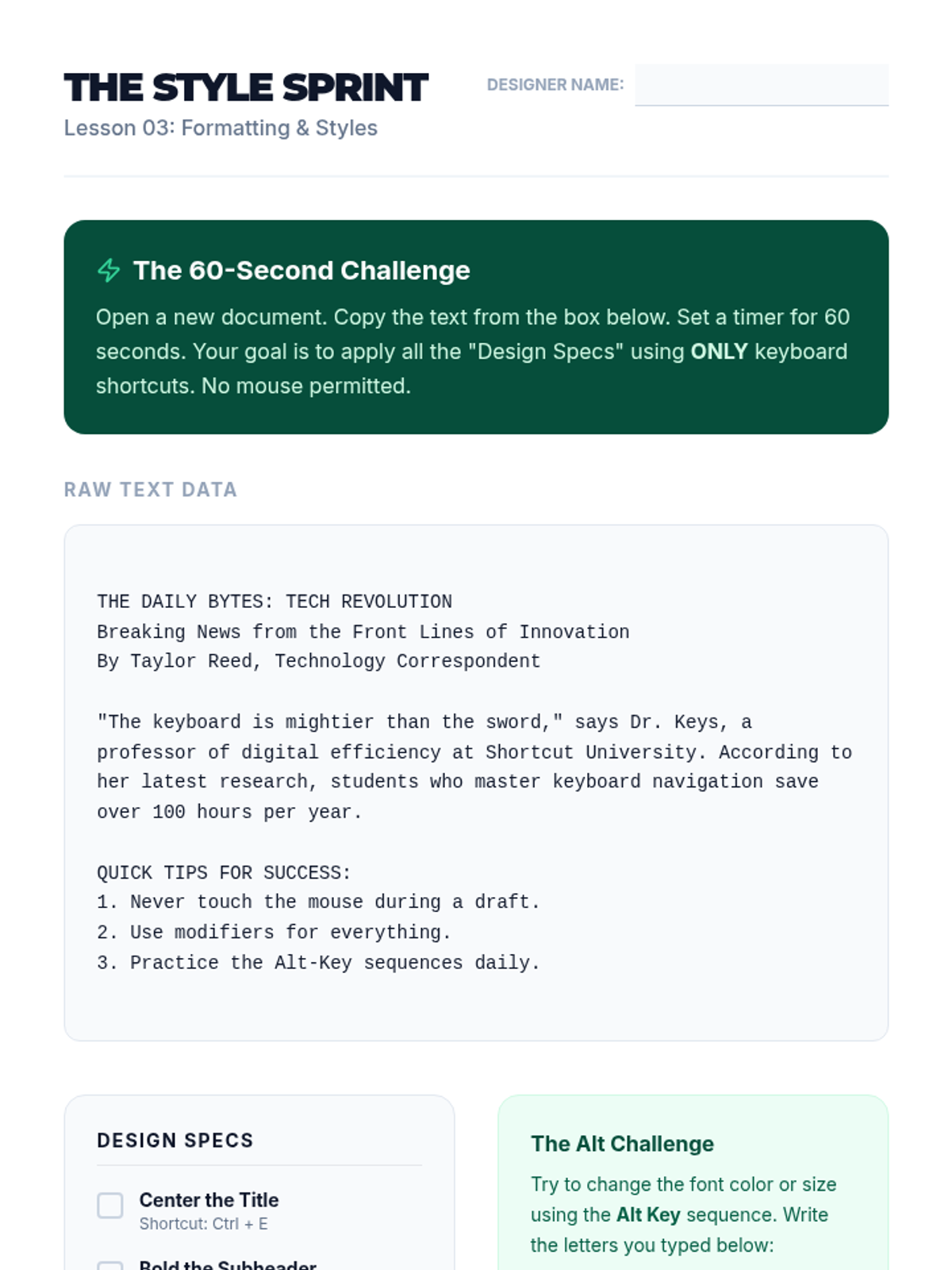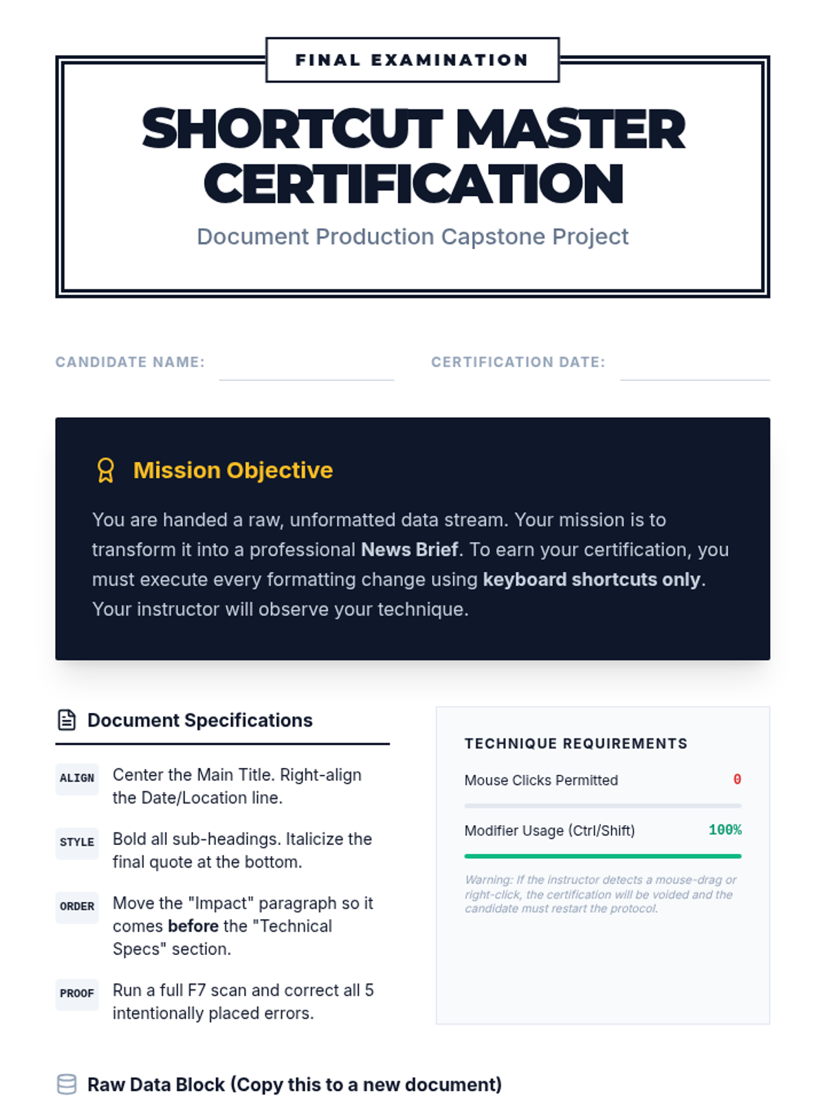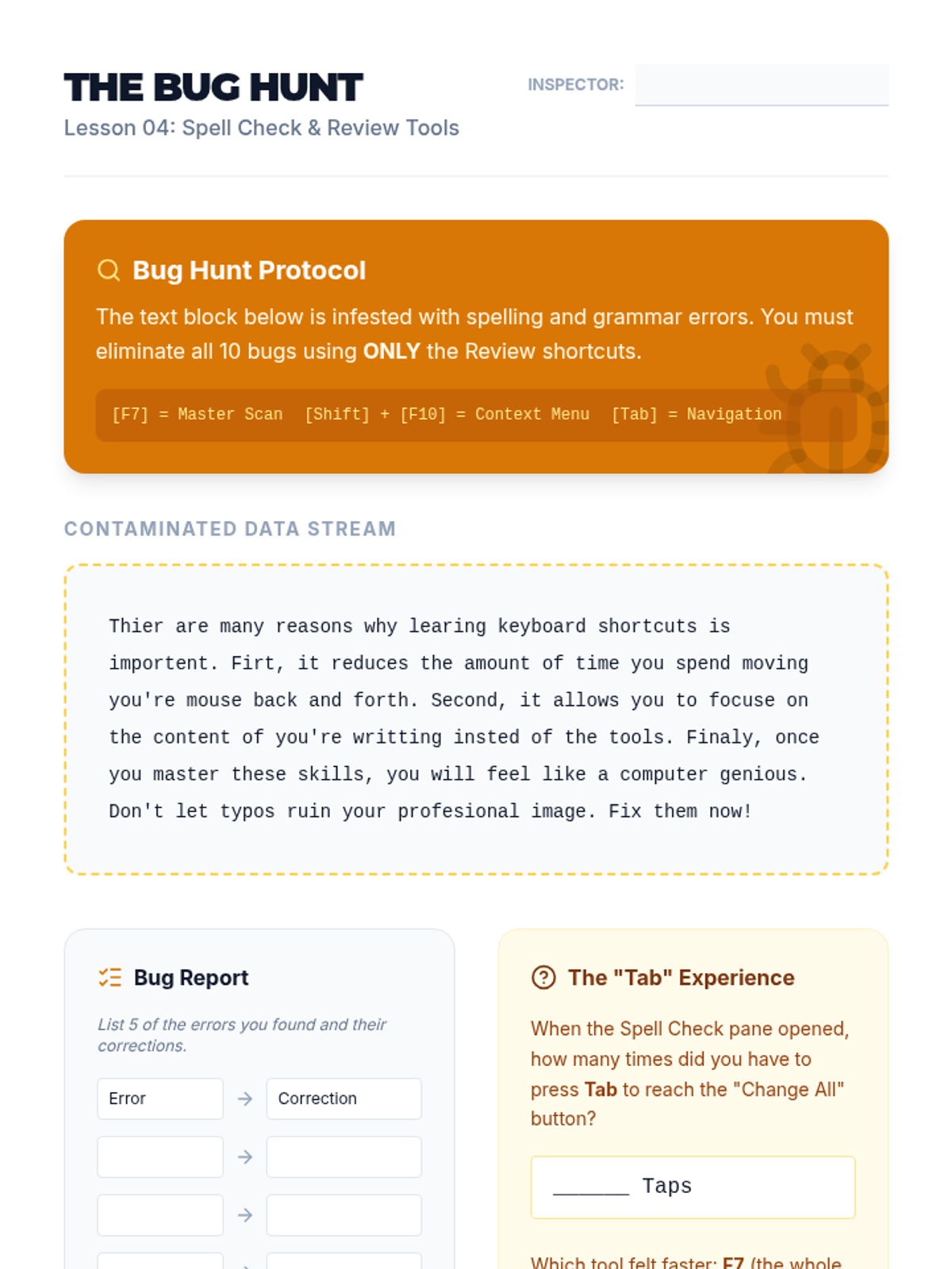 A specialized sequence for 10th-grade students to master keyboard navigation and document editing techniques. This unit reduces physical strain and increases digital productivity through intentional shortcut mastery.