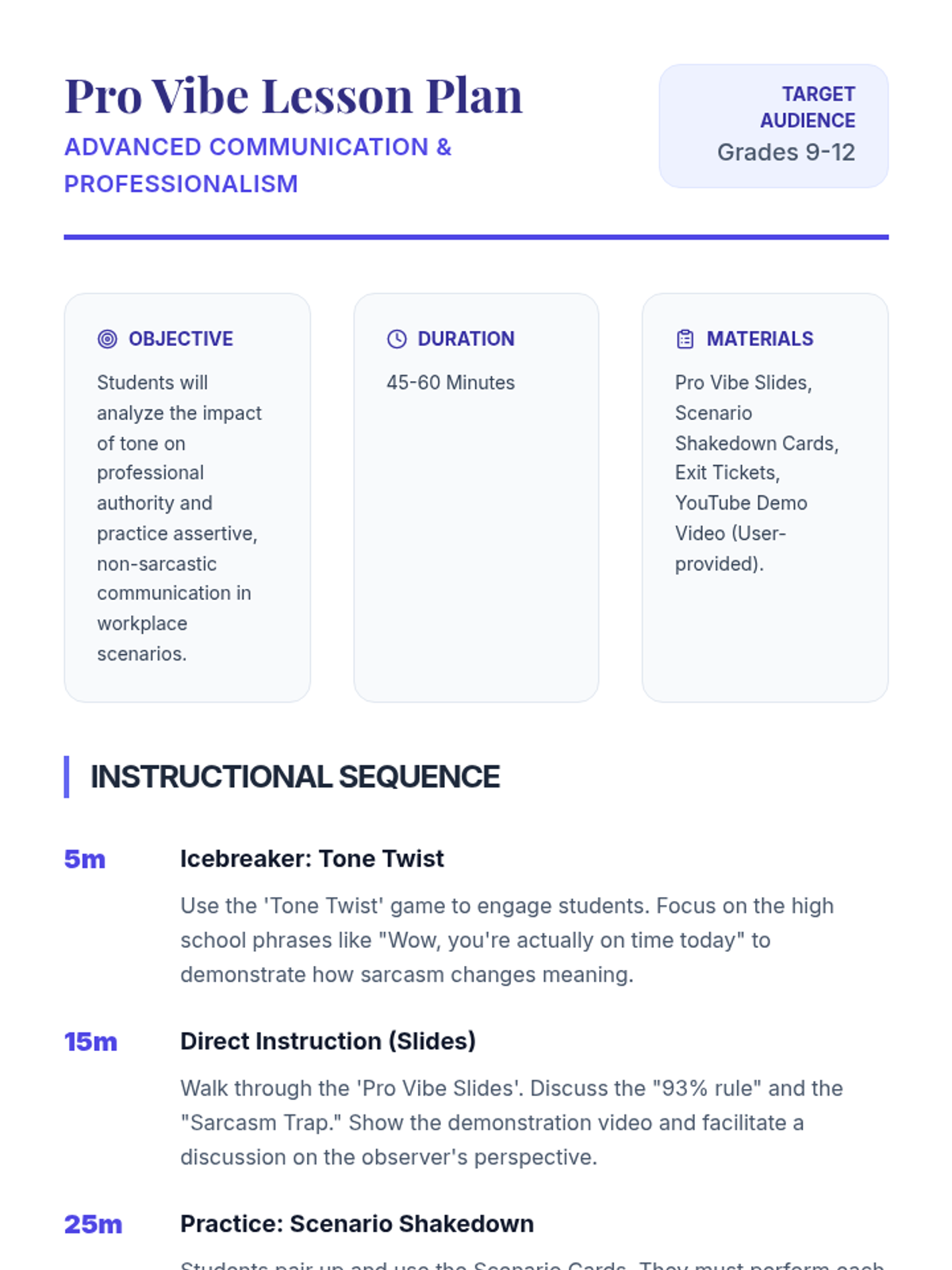 An advanced five-part professional development series for 11th graders focusing on the psychology of conflict, high-stakes communication, and strategic diplomacy. Students prepare for adult environments by mastering emotional intelligence, interest-based negotiation, and professional digital protocols.