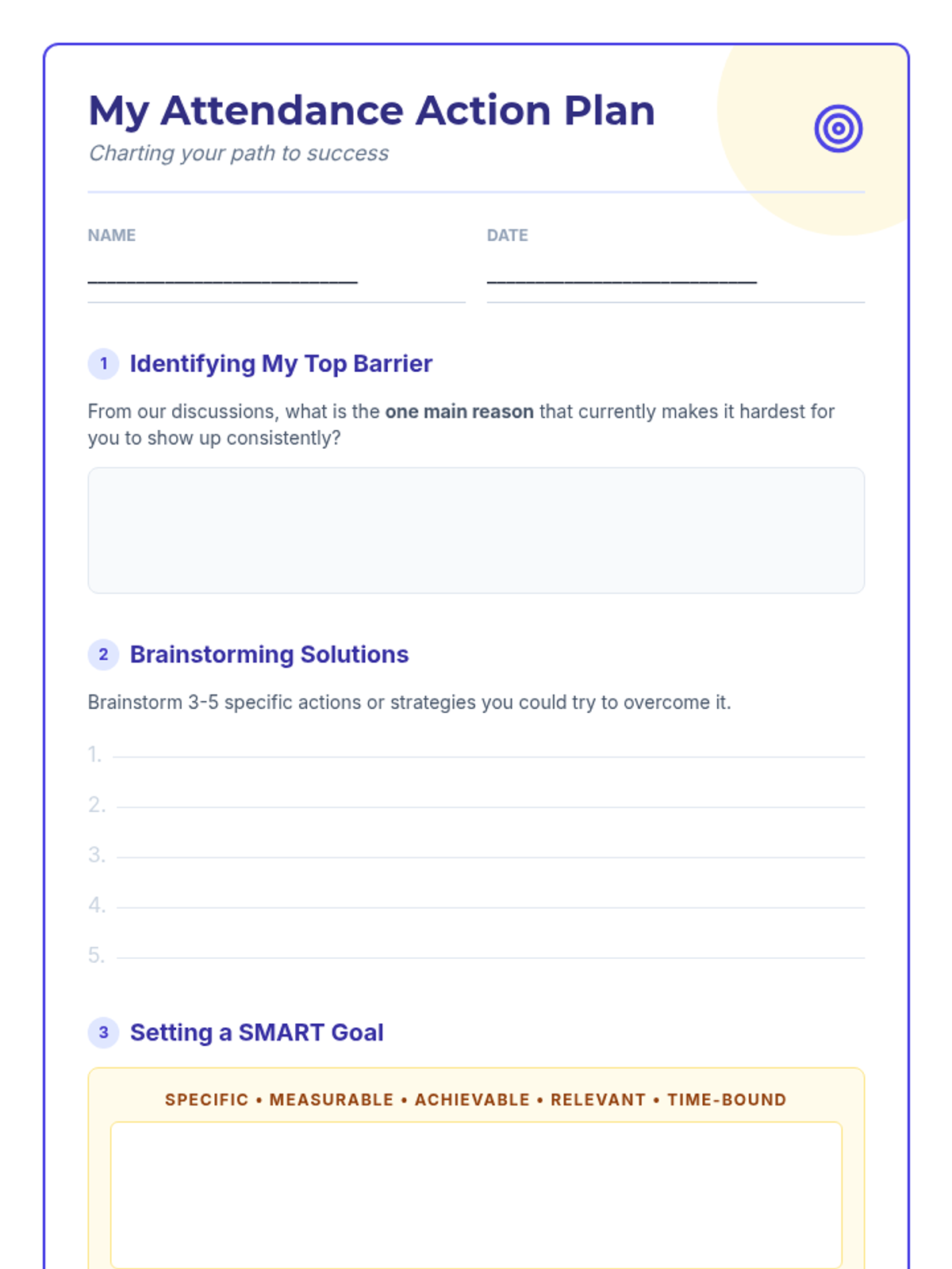 A 4-week Tier 2 intervention program for 12th-grade students to improve school attendance by identifying barriers and building personalized action plans.