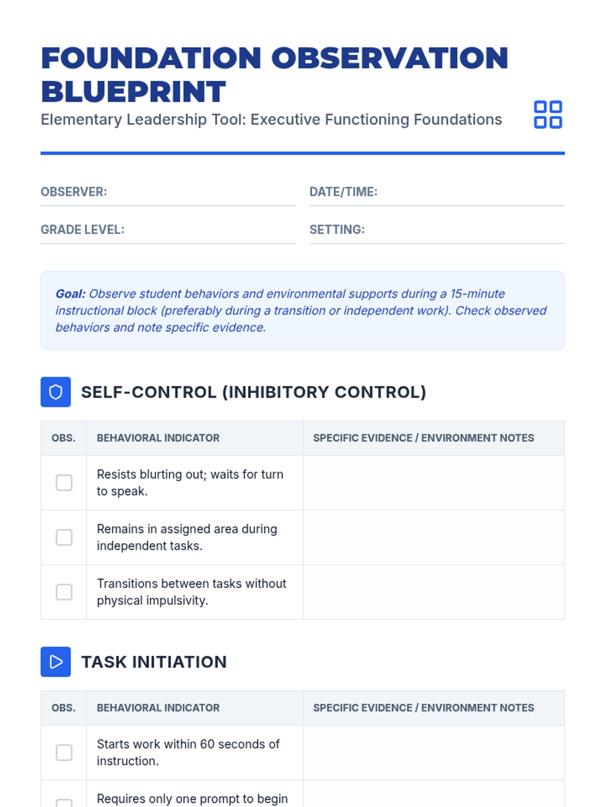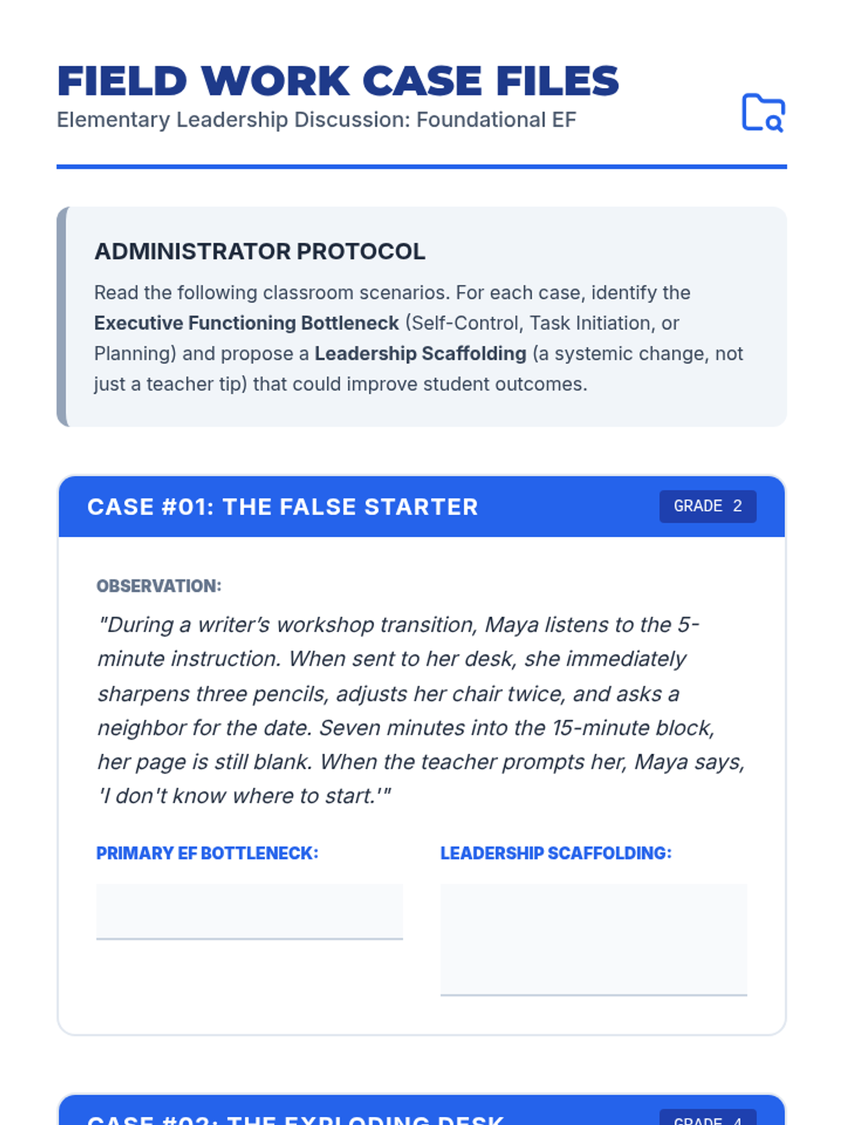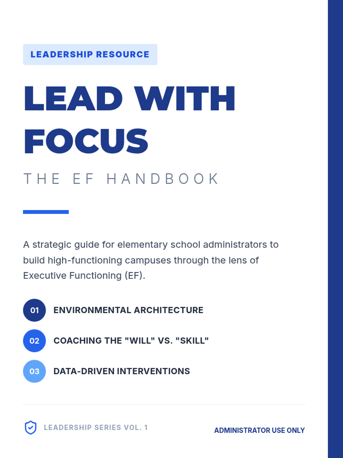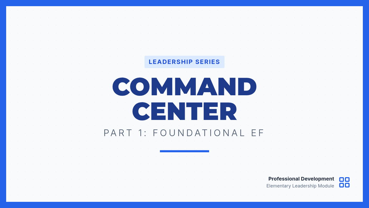 A comprehensive leadership training sequence designed to equip elementary school administrators with the tools to foster executive functioning skills across their campus. The sequence covers foundational self-regulation and organization as well as advanced cognitive flexibility and time management.