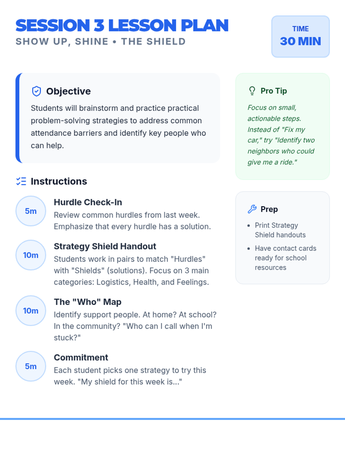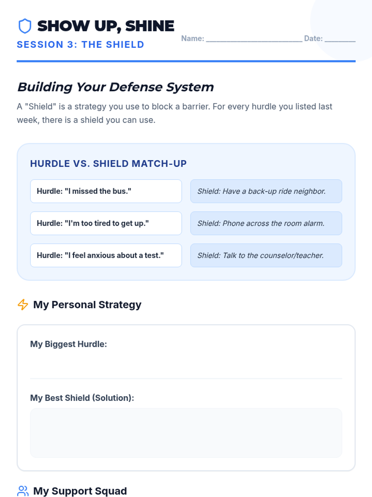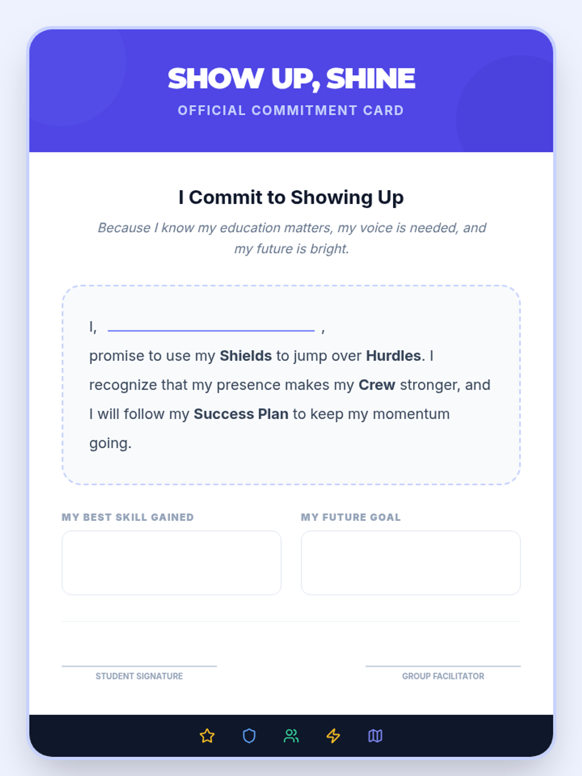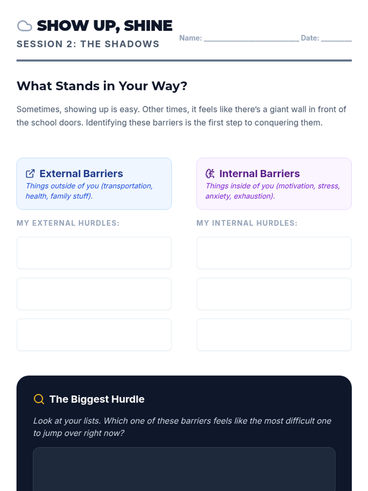 A six-session Tier 2 group intervention for 6th-grade students designed to improve school attendance by fostering motivation, identifying barriers, and building a sense of belonging.