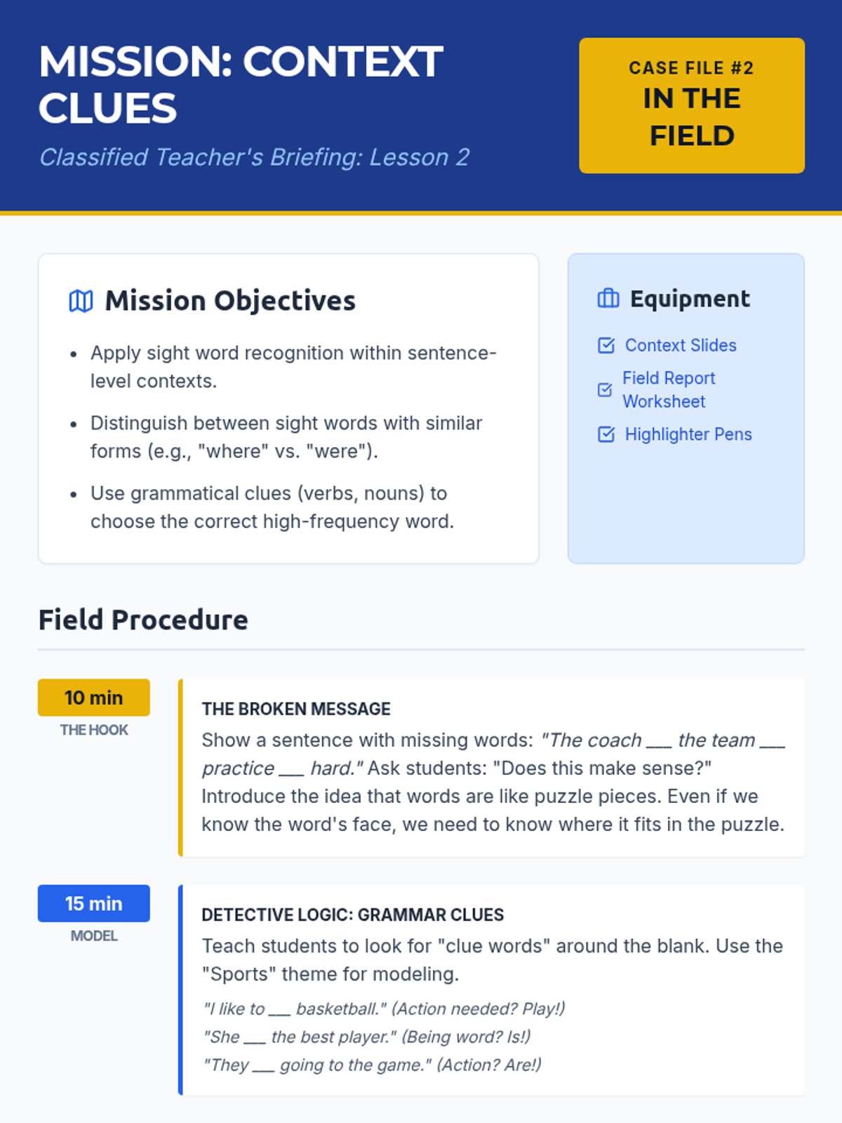 This sequence teaches 6th-grade ESL students the essential test-taking strategies of skimming and scanning. Through a 'Speed Scout' academy theme, students learn to navigate academic texts efficiently, identifying when to look for the 'gist' versus specific details to save time and improve accuracy on standardized tests.