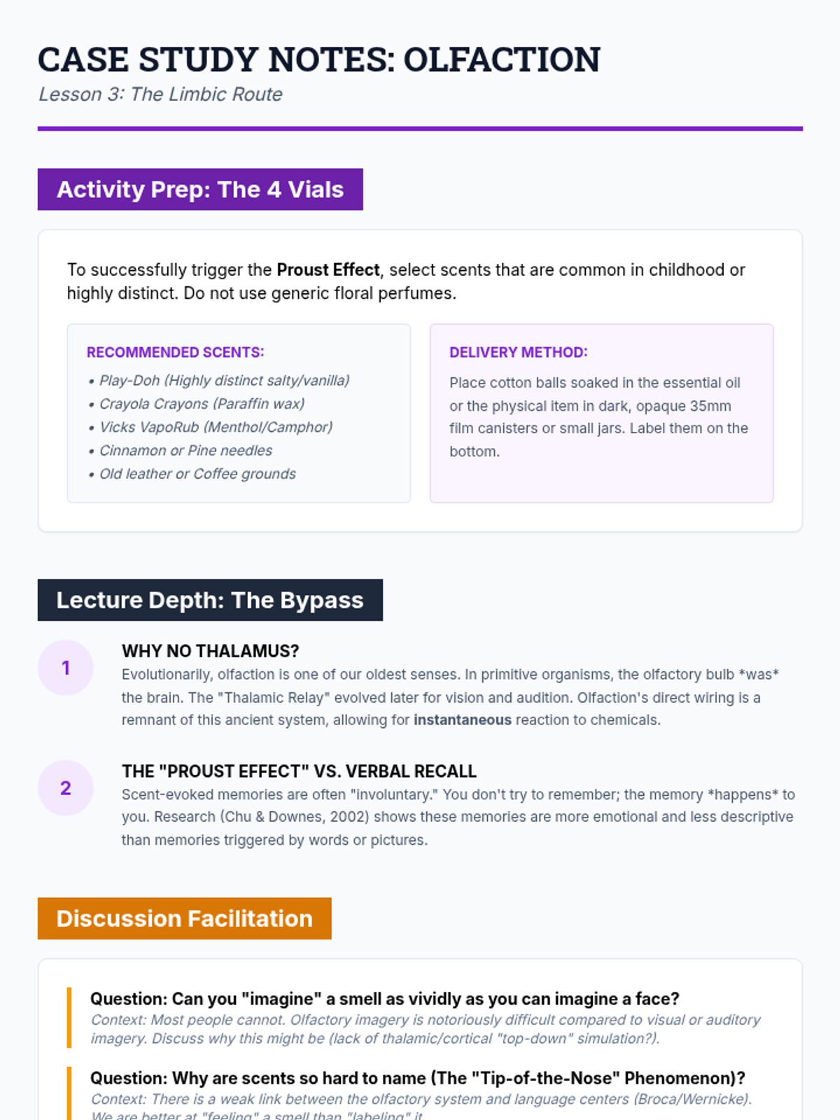 This sequence explores the psychological and biological mechanisms of Signal Detection Theory and the chemical senses (olfaction and gustation), emphasizing decision-making under uncertainty and multisensory integration.