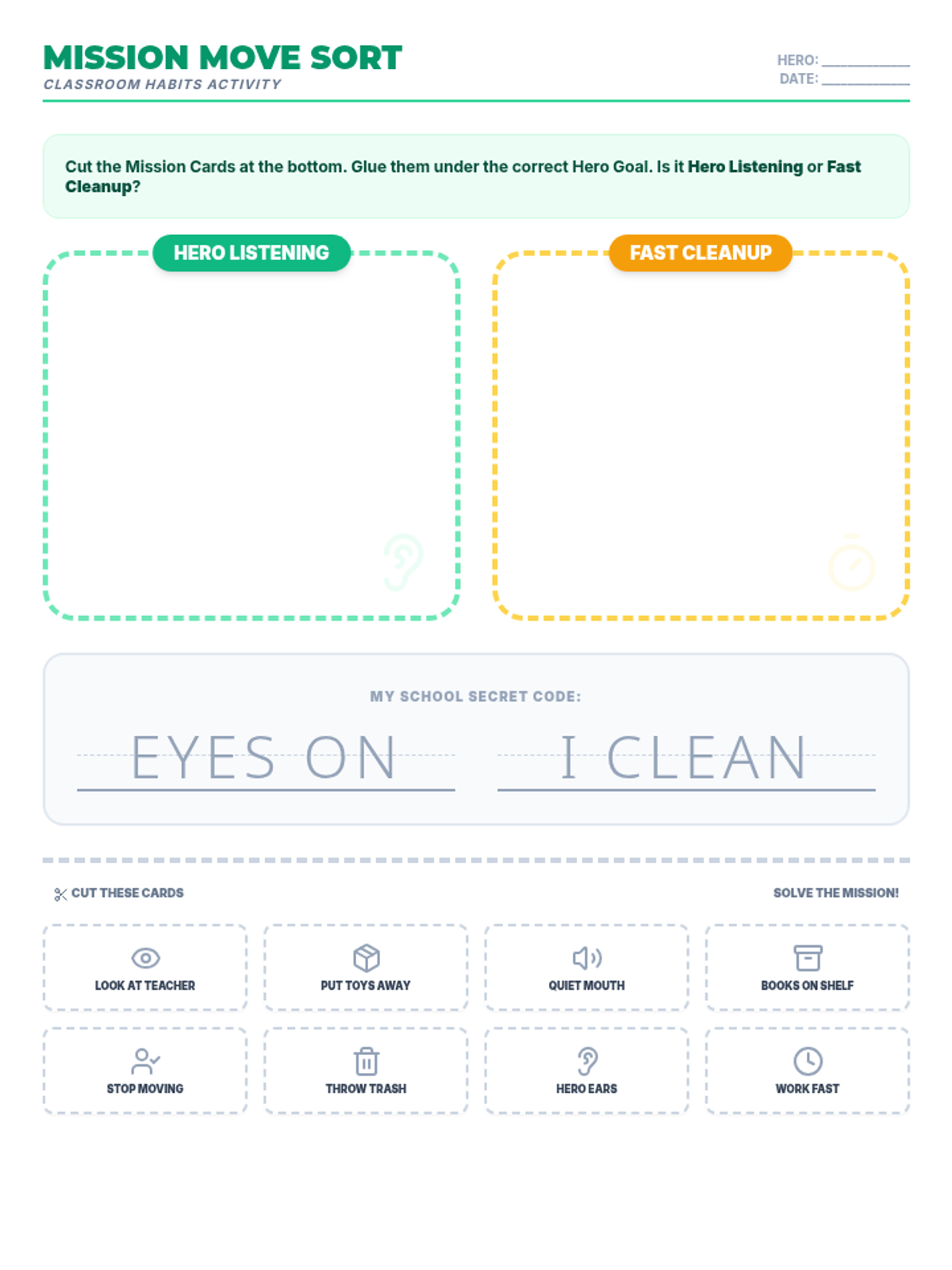A comprehensive instructional unit focused on the foundational skill of following a multi-step task to completion. This unit provides two distinct tracks: a secret agent-themed track for older students (7-8) and a Danny Go! themed track for Pre-K students, ensuring developmental appropriateness while maintaining high engagement.