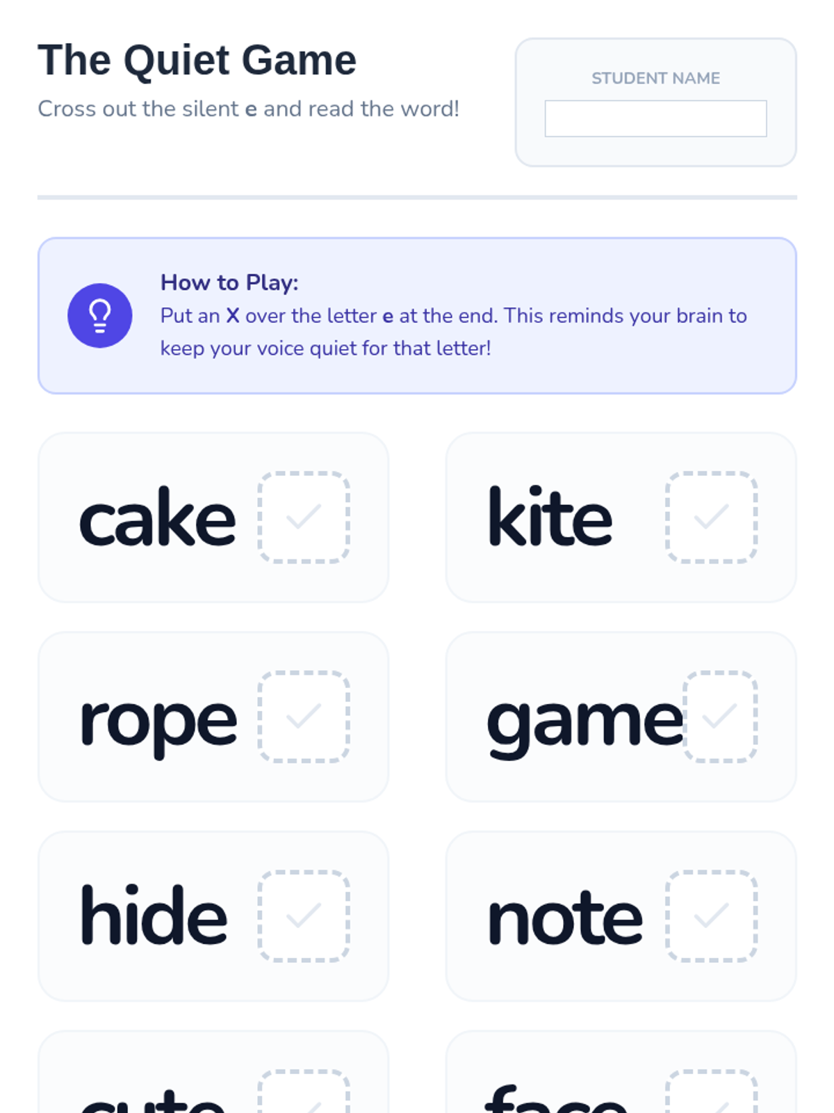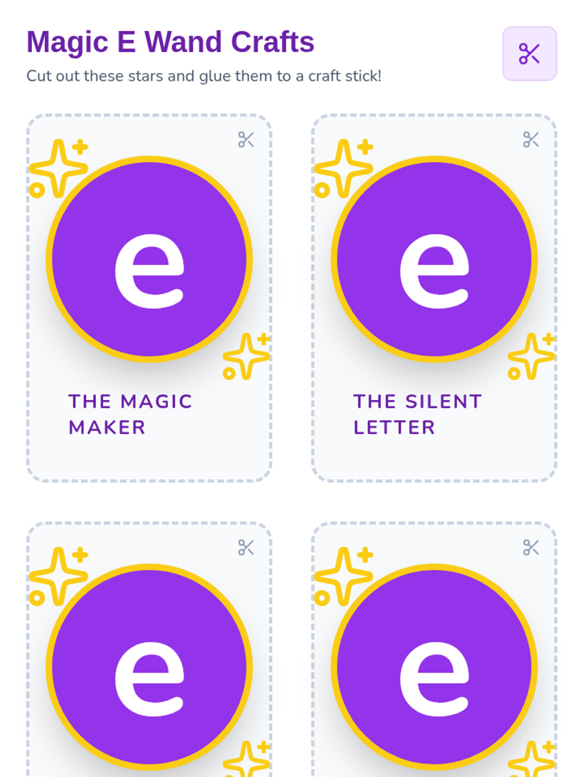 A Kindergarten phonics sequence introducing the Silent E (CVCe) syllable pattern through a 'Magic E' narrative. Students explore how the addition of a silent 'e' transforms vowel sounds from short to long through storytelling, hands-on manipulation, and writing.