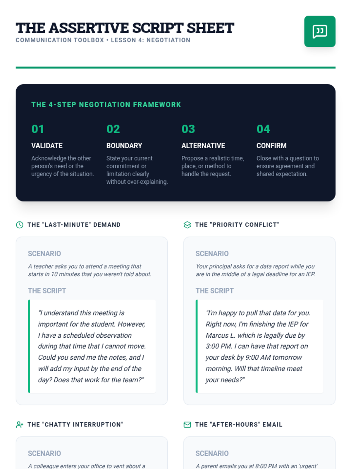 An advanced five-part professional development series for 11th graders focusing on the psychology of conflict, high-stakes communication, and strategic diplomacy. Students prepare for adult environments by mastering emotional intelligence, interest-based negotiation, and professional digital protocols.