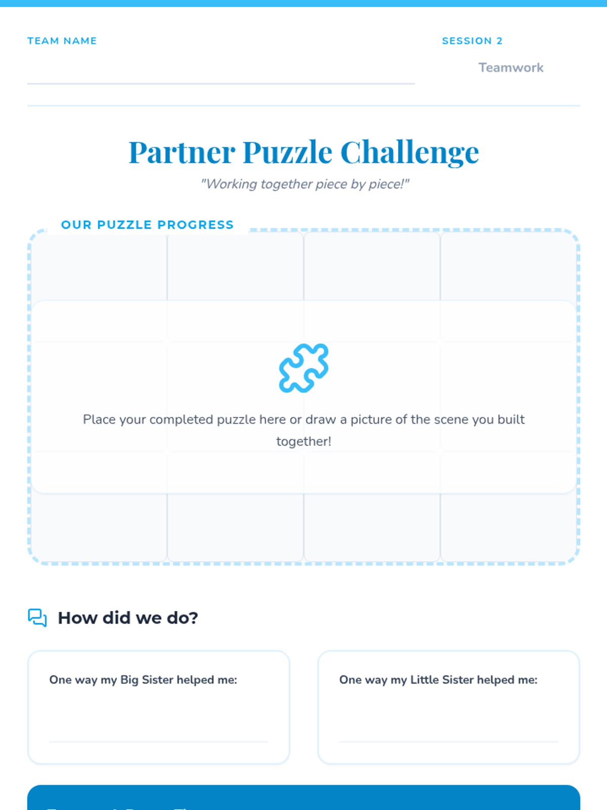 A comprehensive 6-session program designed to foster social-emotional growth and leadership through a 'Big Sister, Little Sister' mentorship dynamic between second-grade and younger girls.