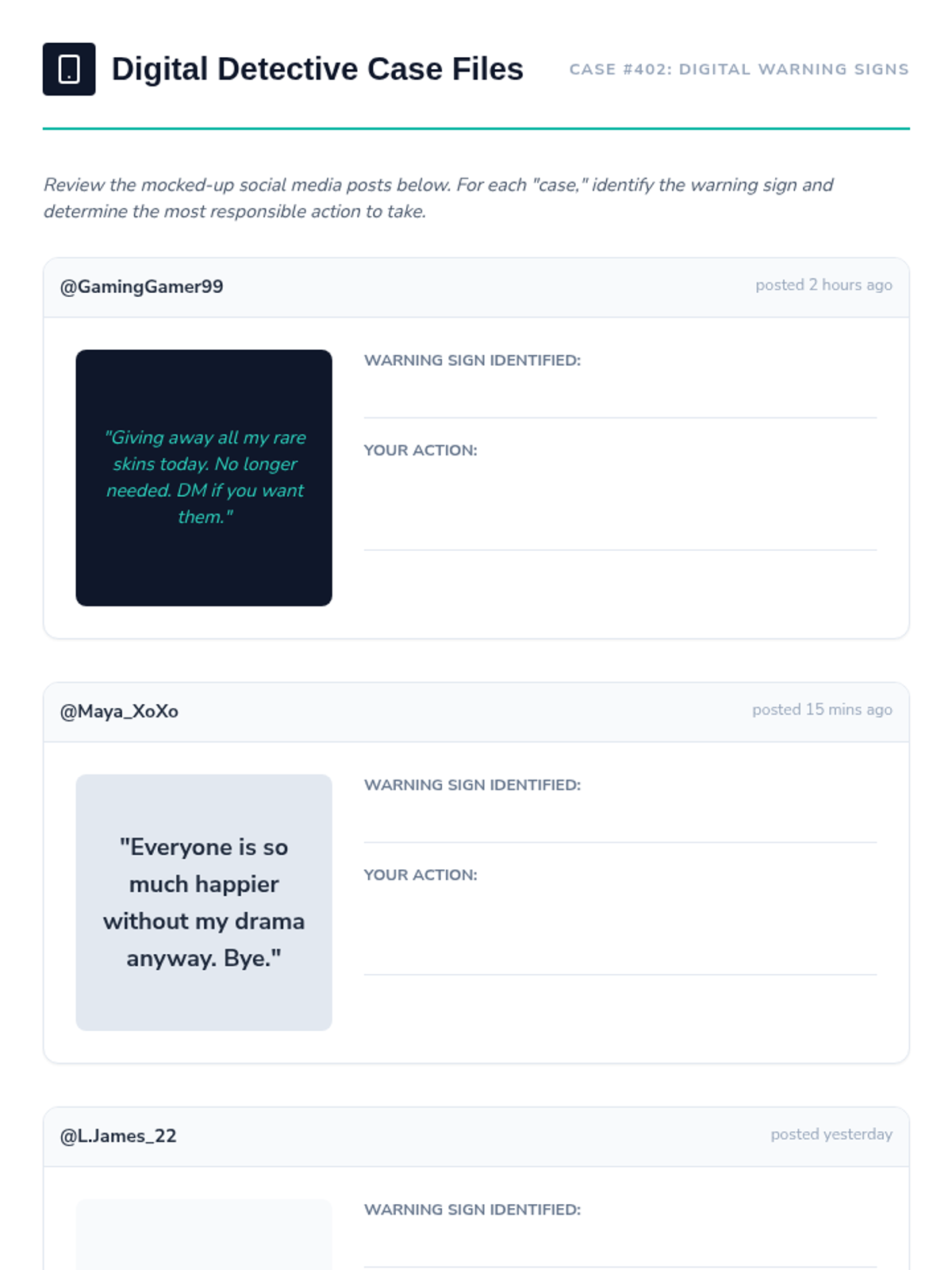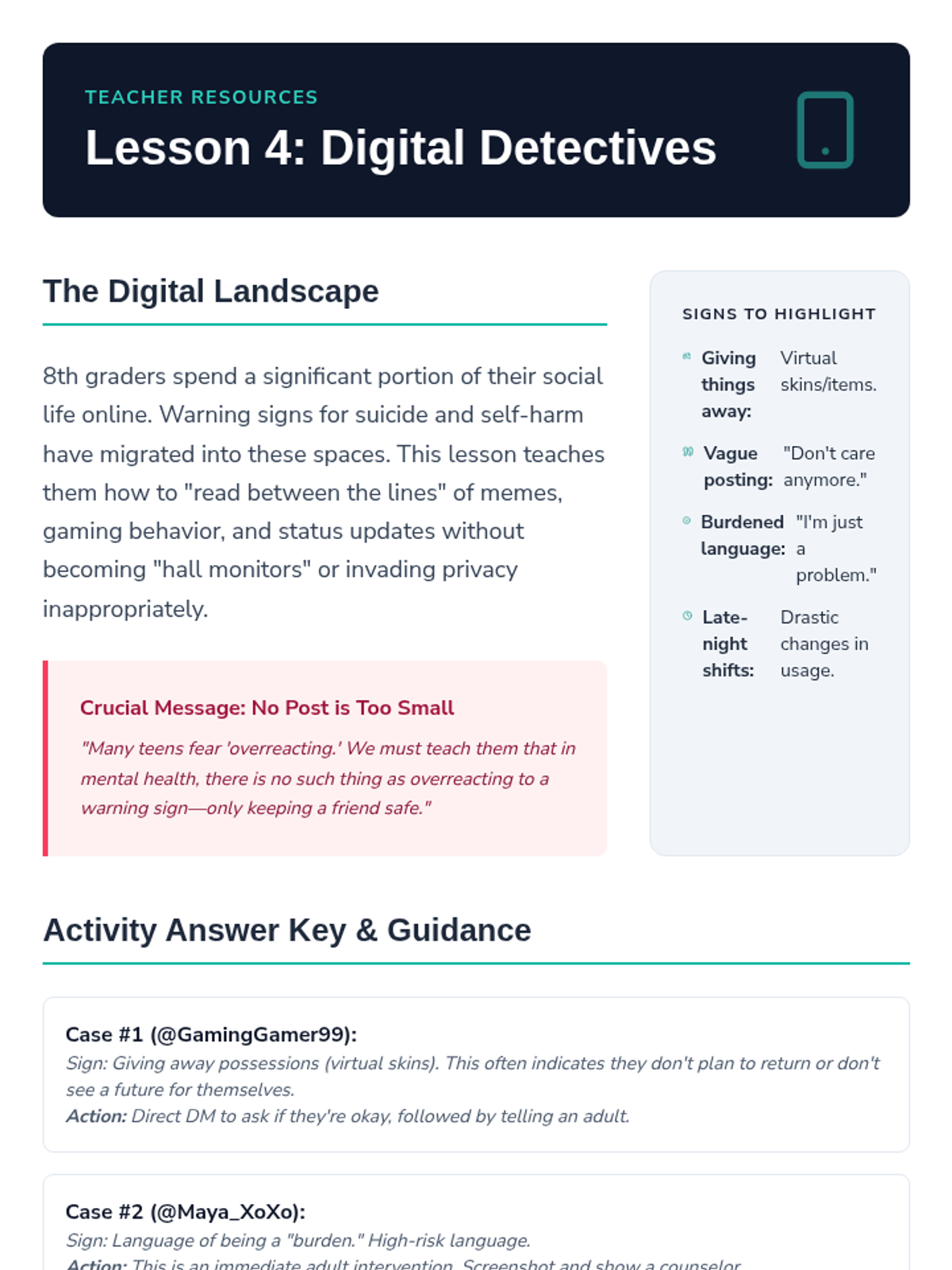 A series of lessons focused on digital wellness and mental health for upper elementary and middle school students.