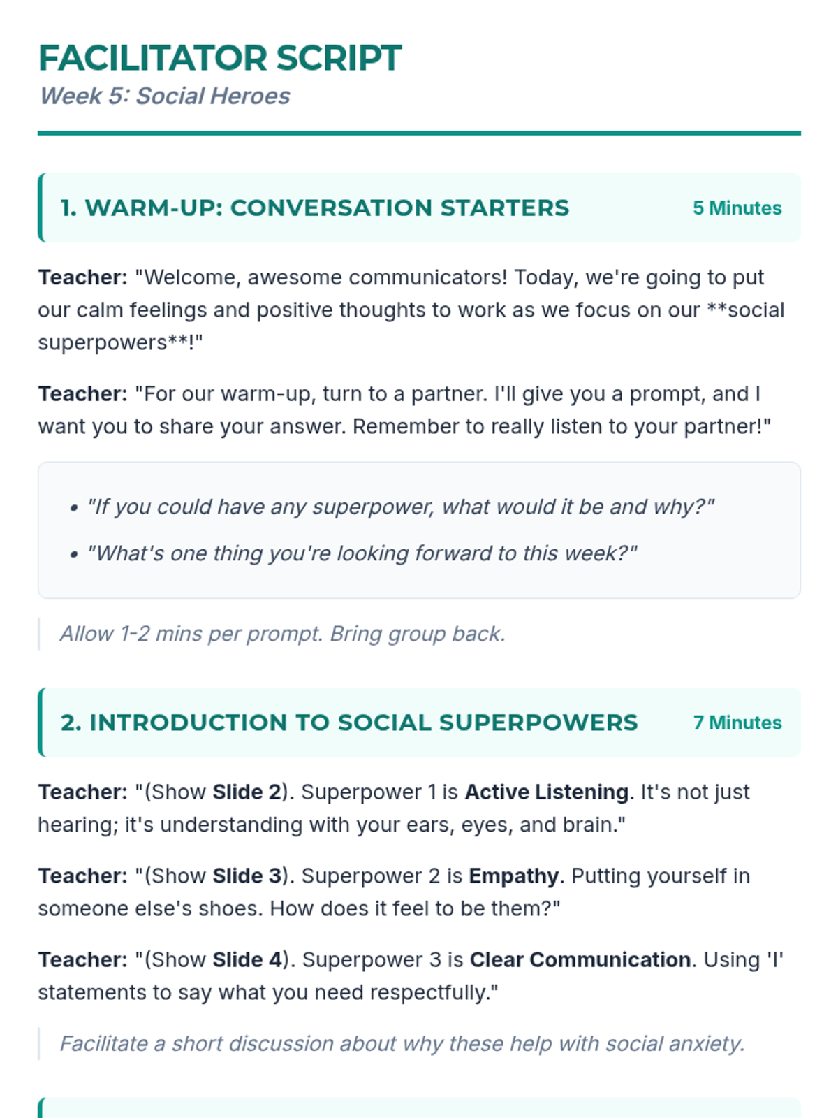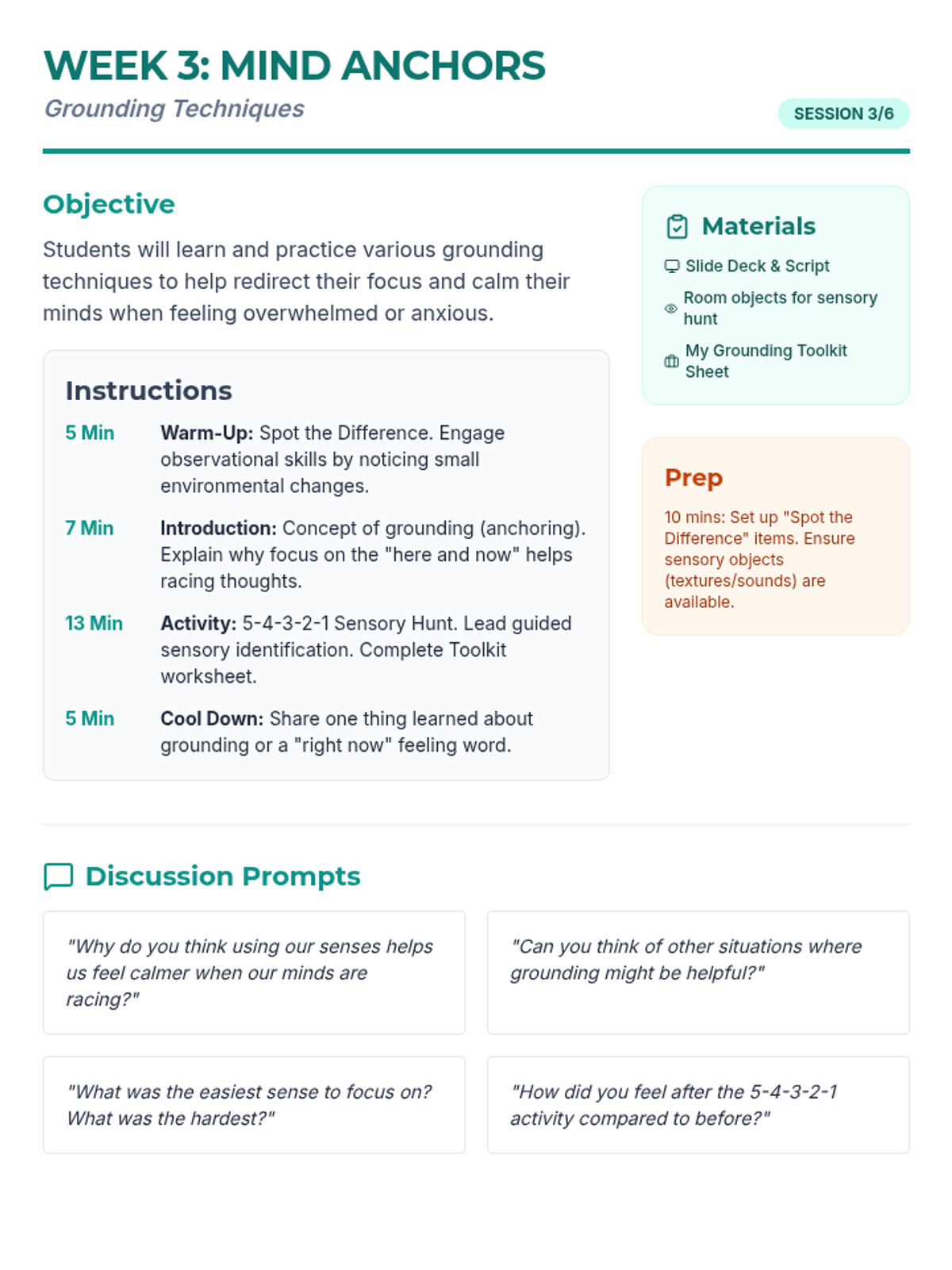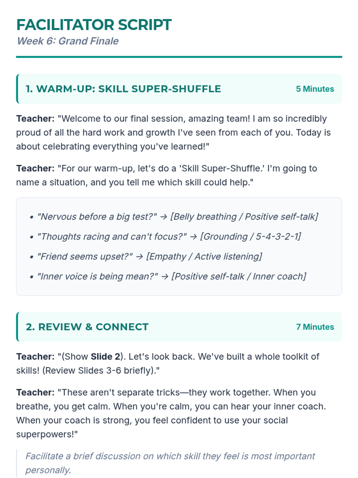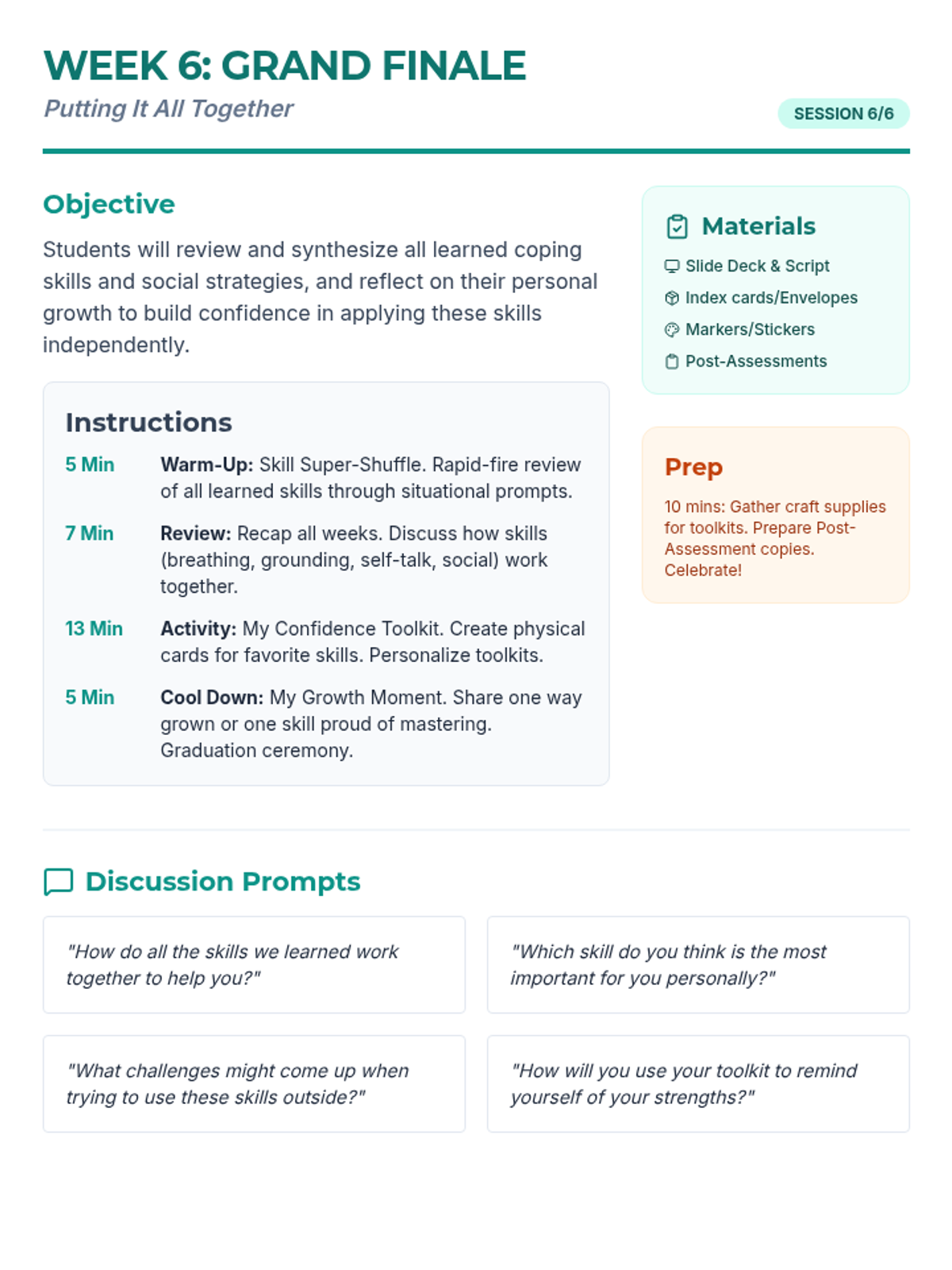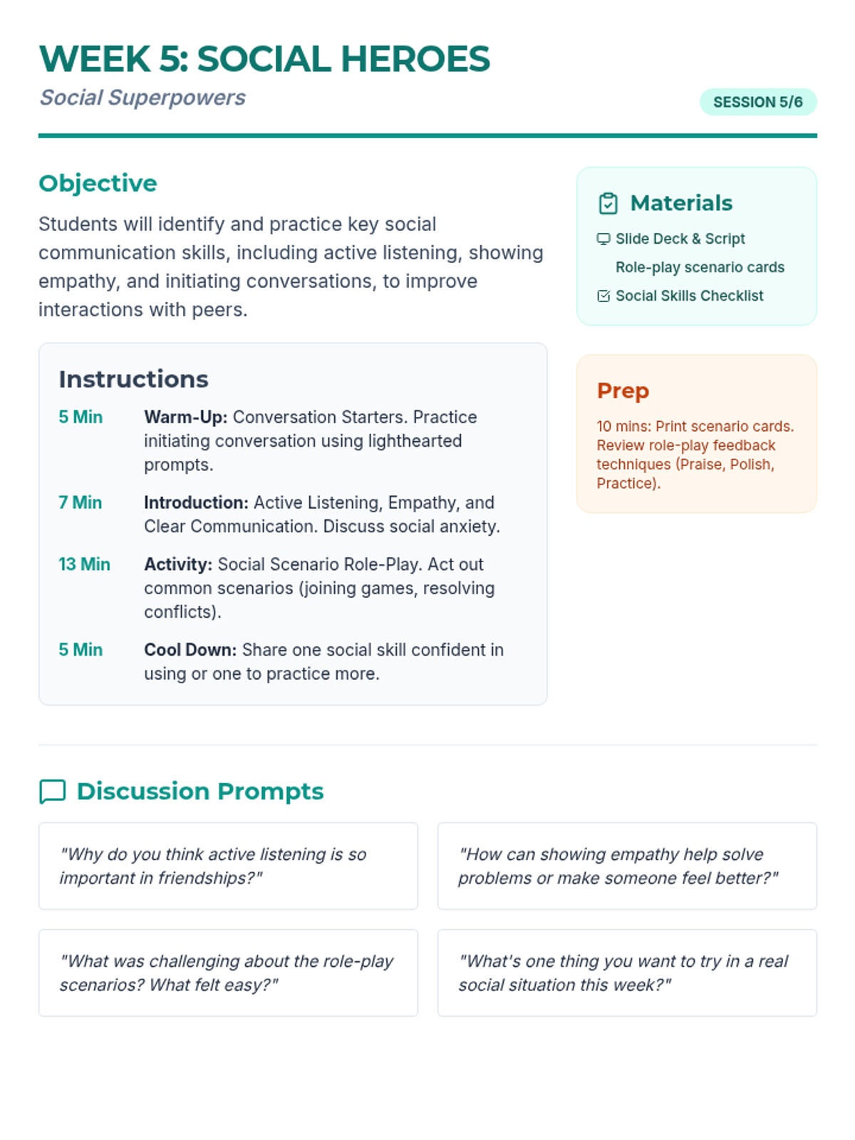 A 6-week Tier 2 intervention program for 5th and 6th graders designed to build coping skills, social communication, and emotional resilience.