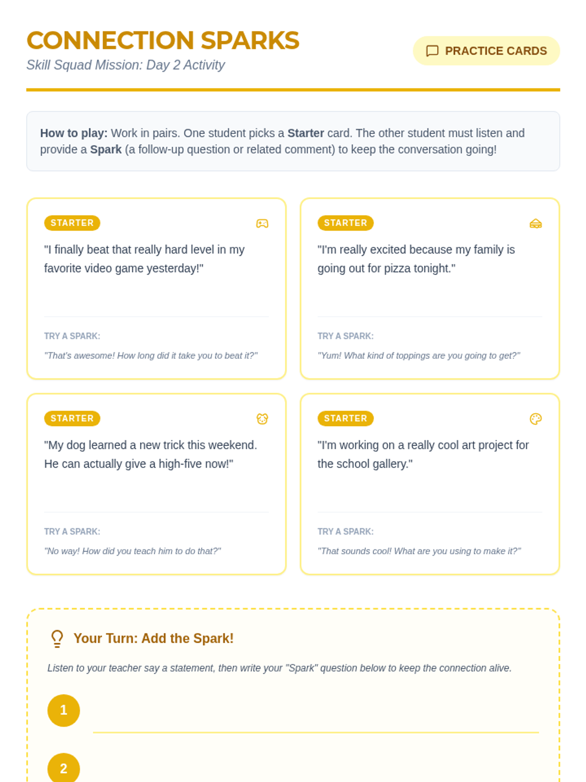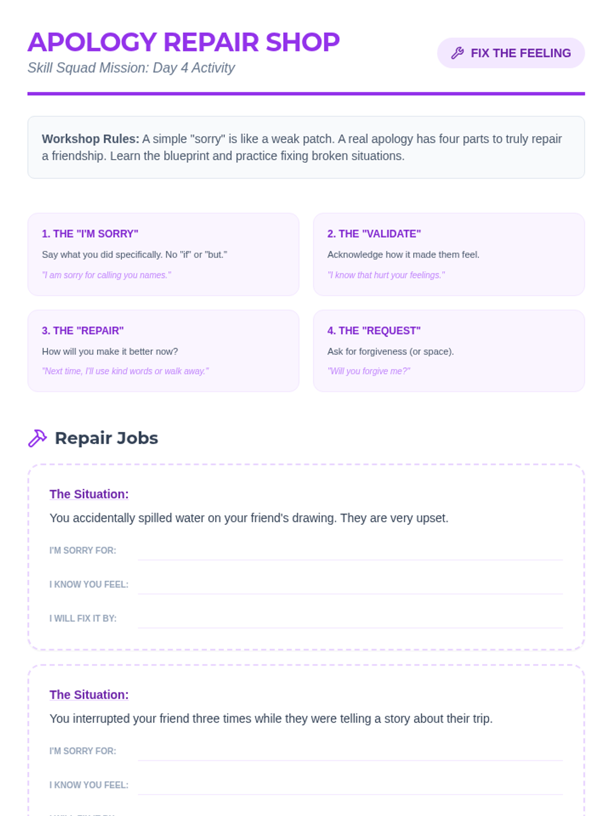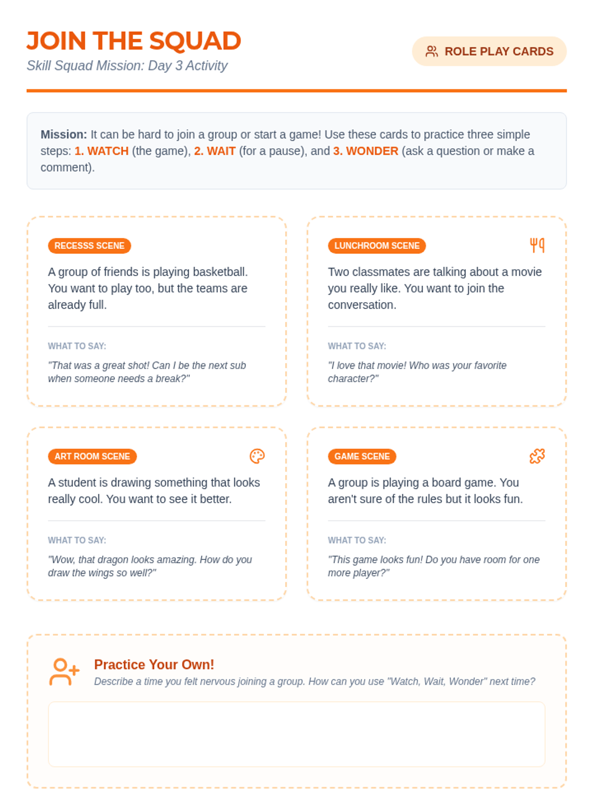 A comprehensive 4-day small group program focusing on essential social-emotional skills including emotional regulation, active listening, friendship building, and conflict resolution.