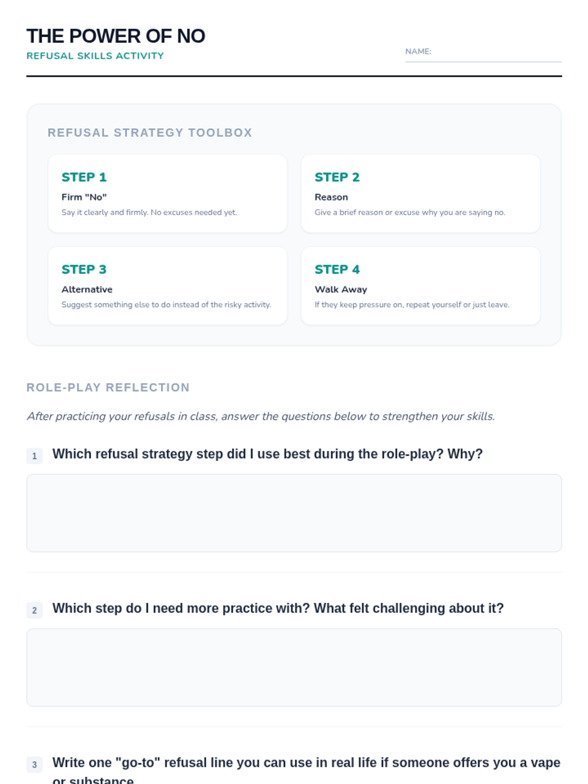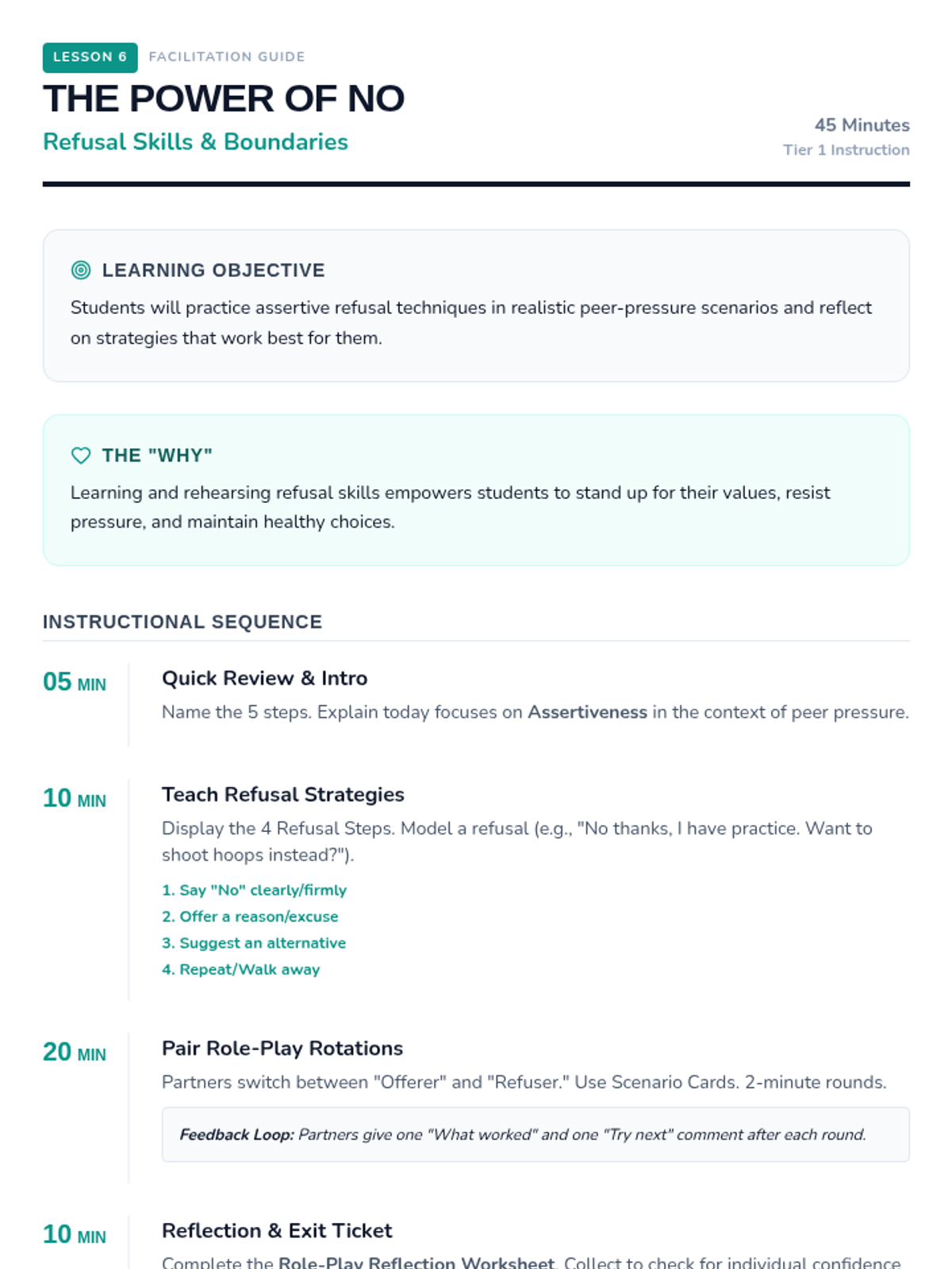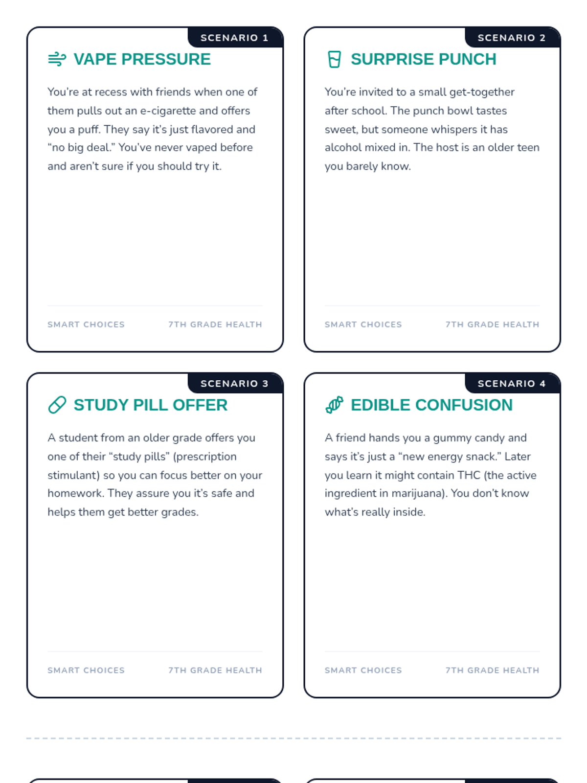 A comprehensive vaping prevention unit that covers health risks, the science of nicotine addiction, and social refusal strategies for middle and high school students.