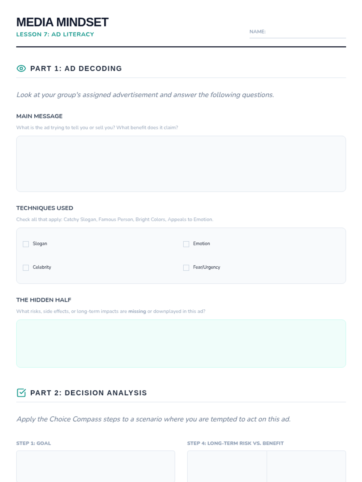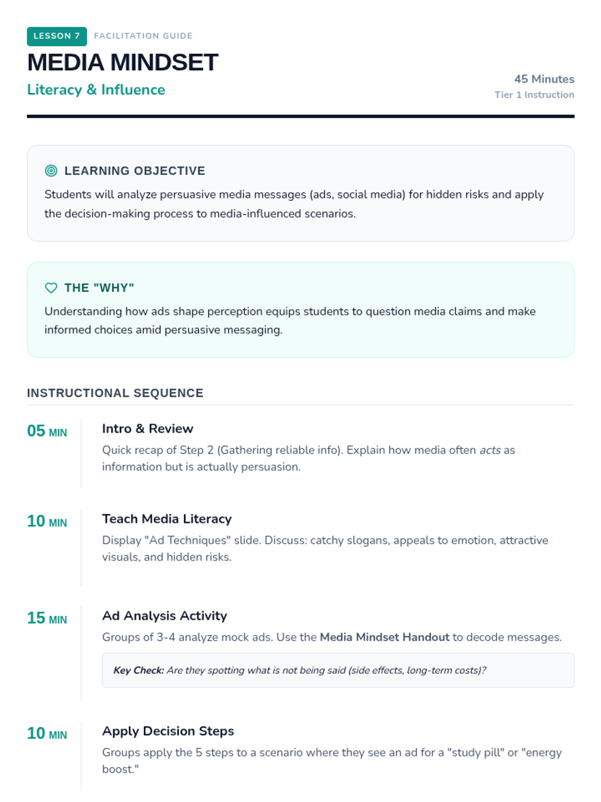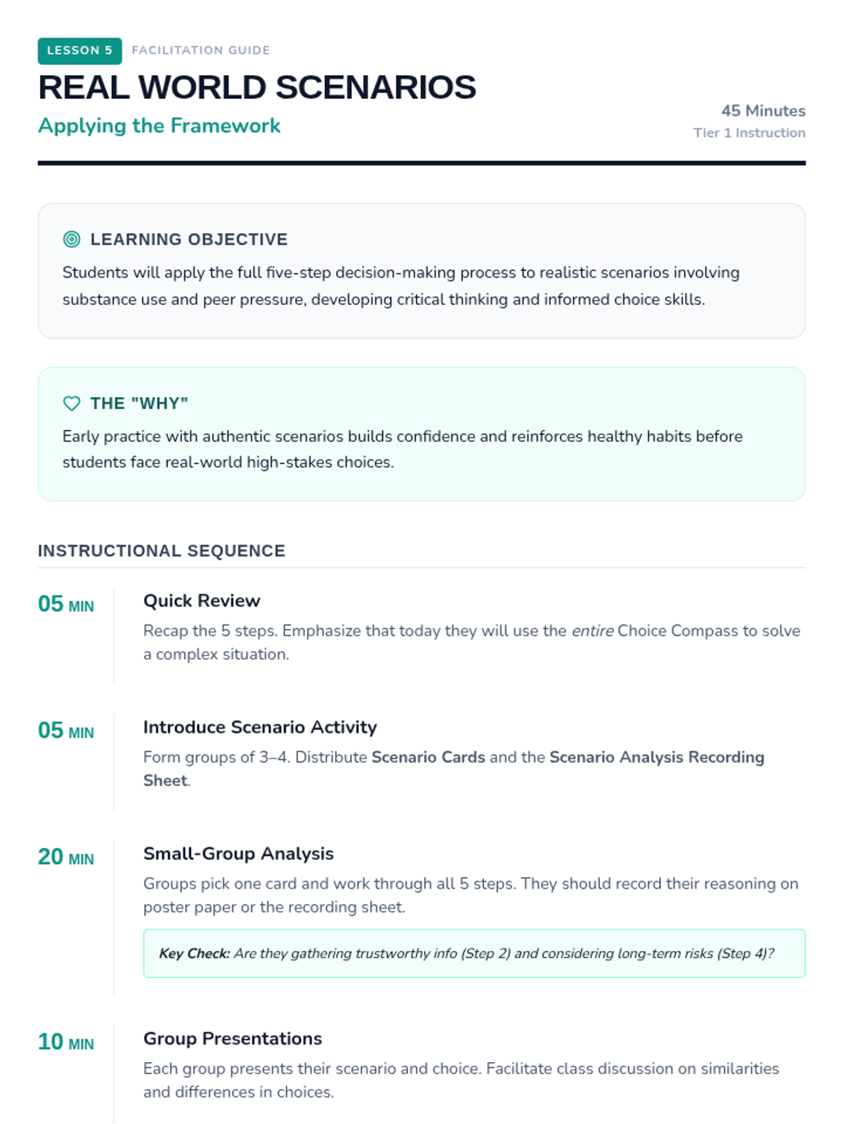 A sequence designed for 10-12 year olds to explore the psychological and social factors that influence decision-making, specifically regarding substance use. Students will learn to distinguish between internal emotions and external social pressures.