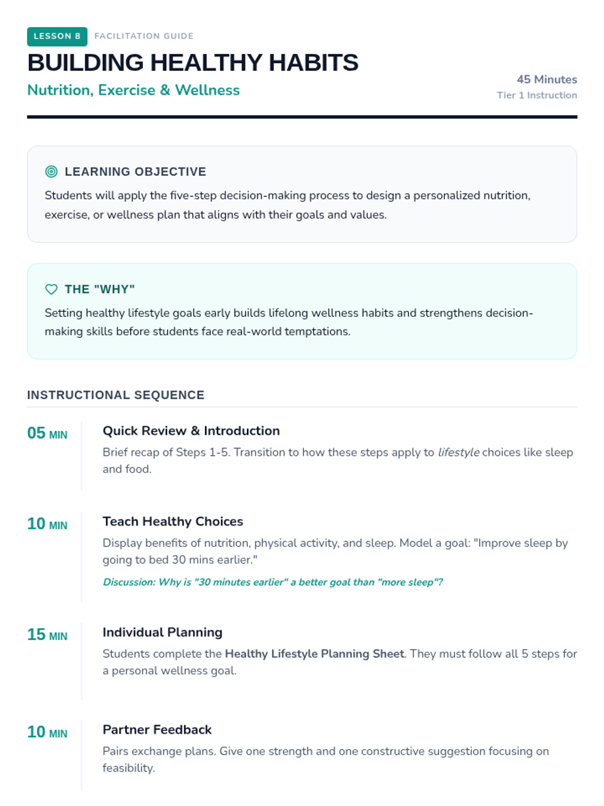A comprehensive unit designed to help students understand the science of sleep, identify personal sleep barriers, and implement effective sleep hygiene habits for better physical and mental well-being.