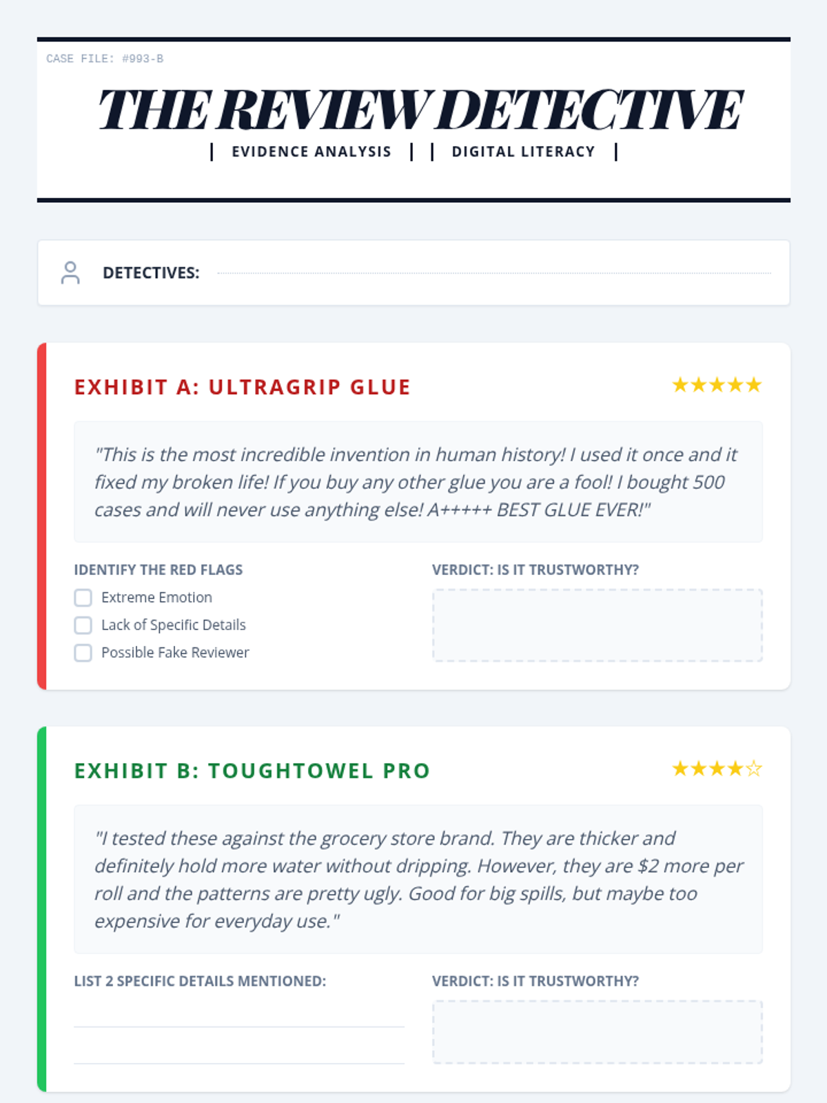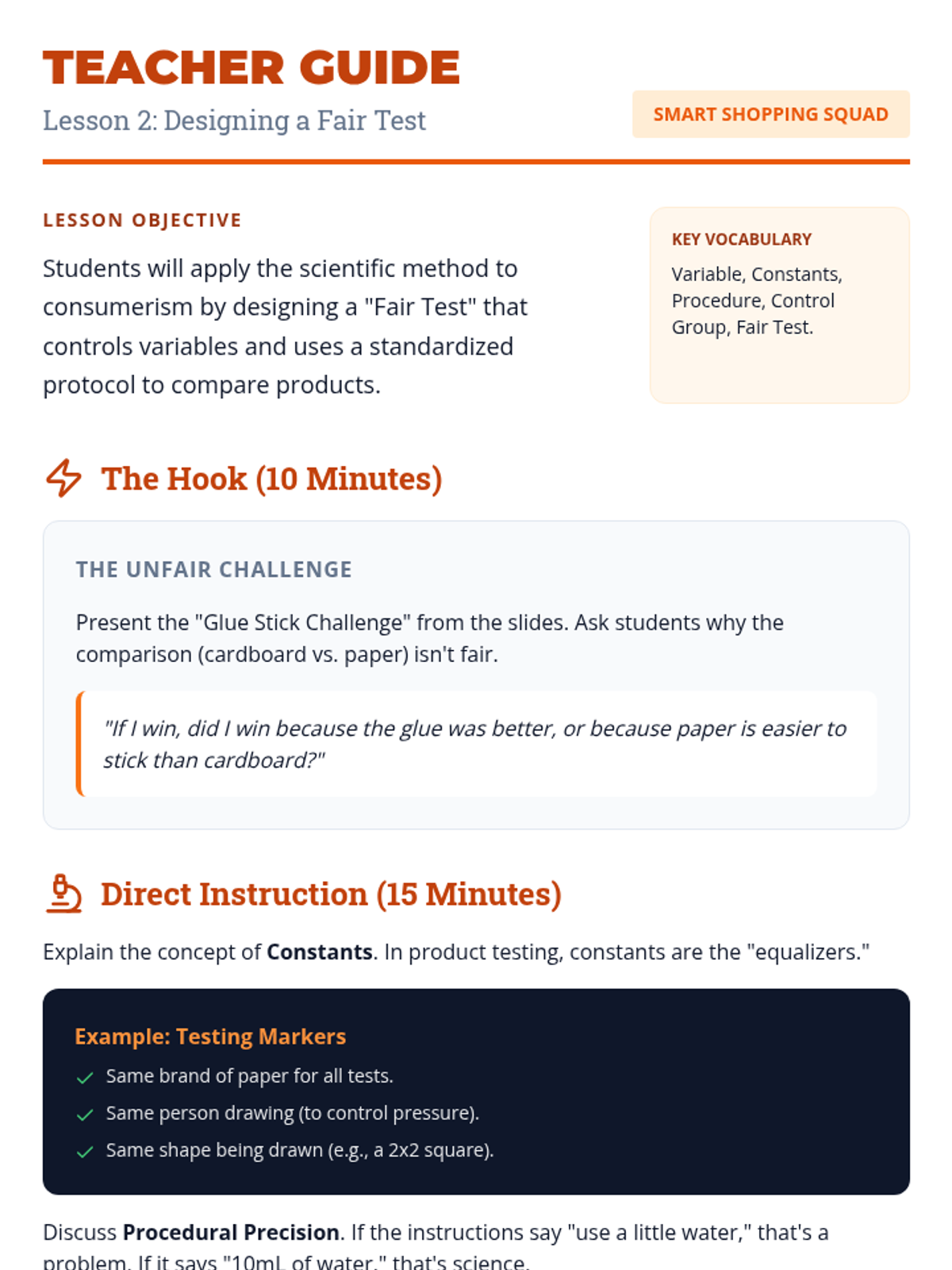 A comprehensive 5th-grade sequence where students become product testers. They learn to evaluate product quality through objective criteria, design and conduct fair scientific tests, identify biased online information, and publish evidence-based consumer reports.