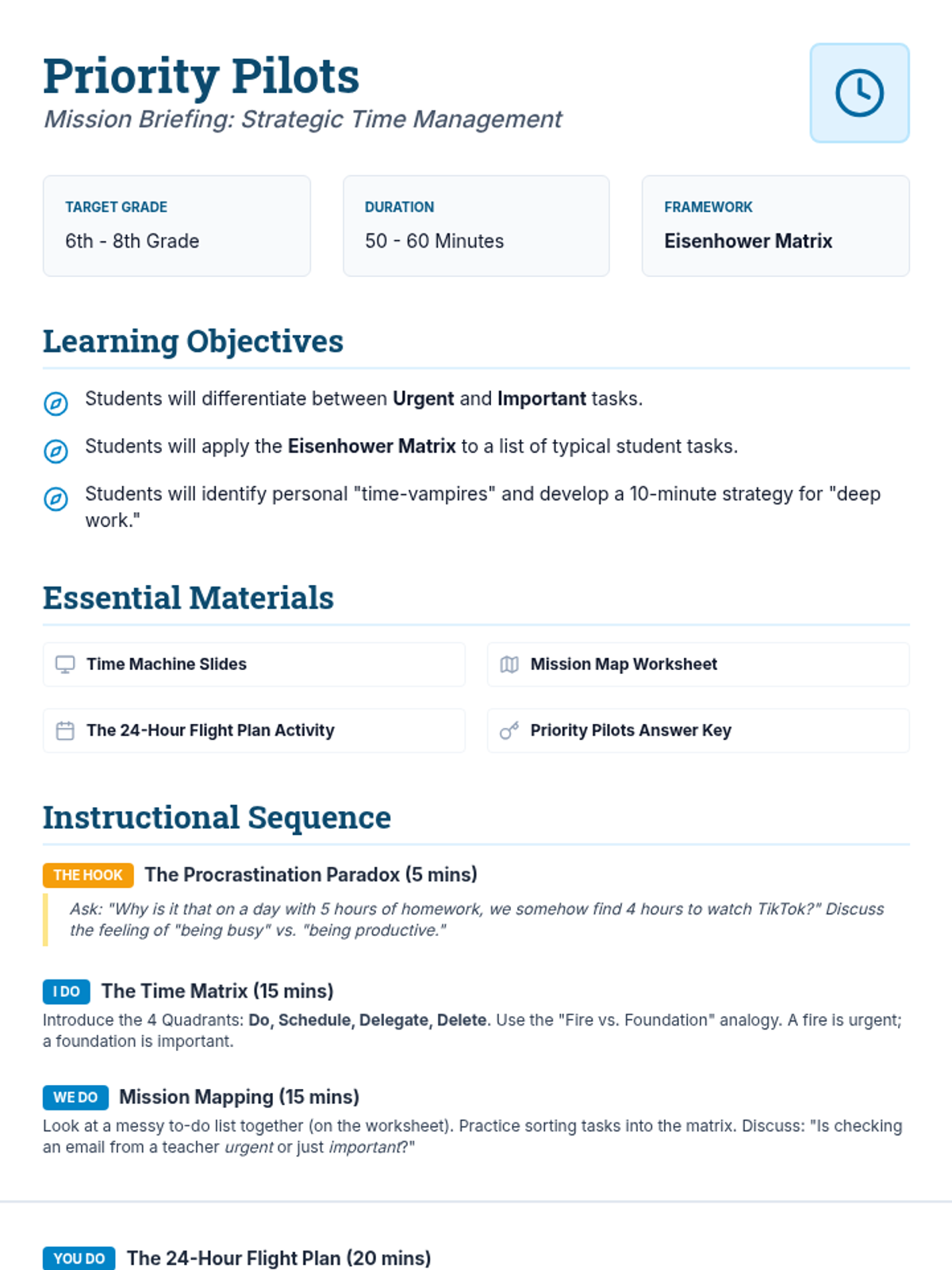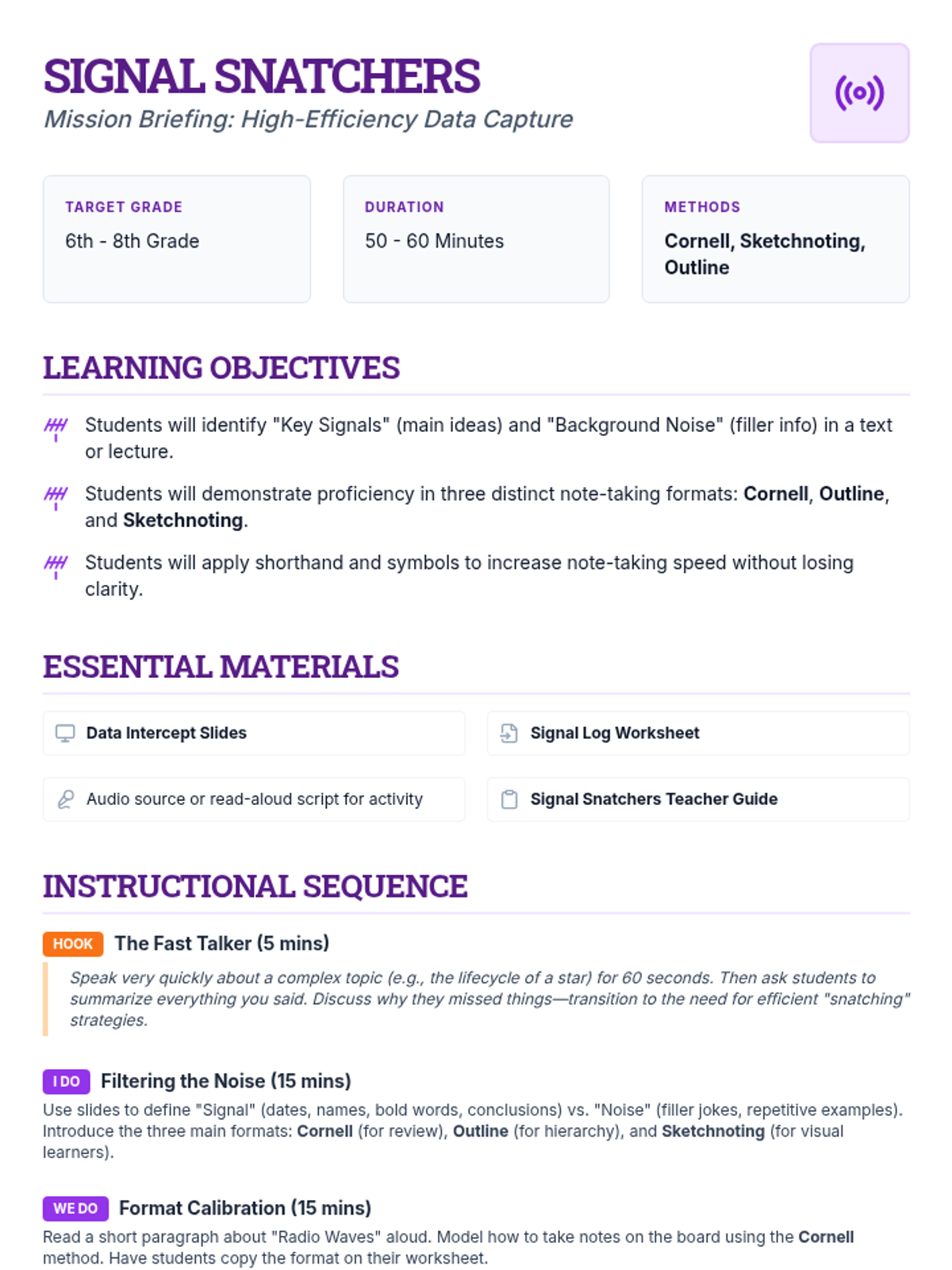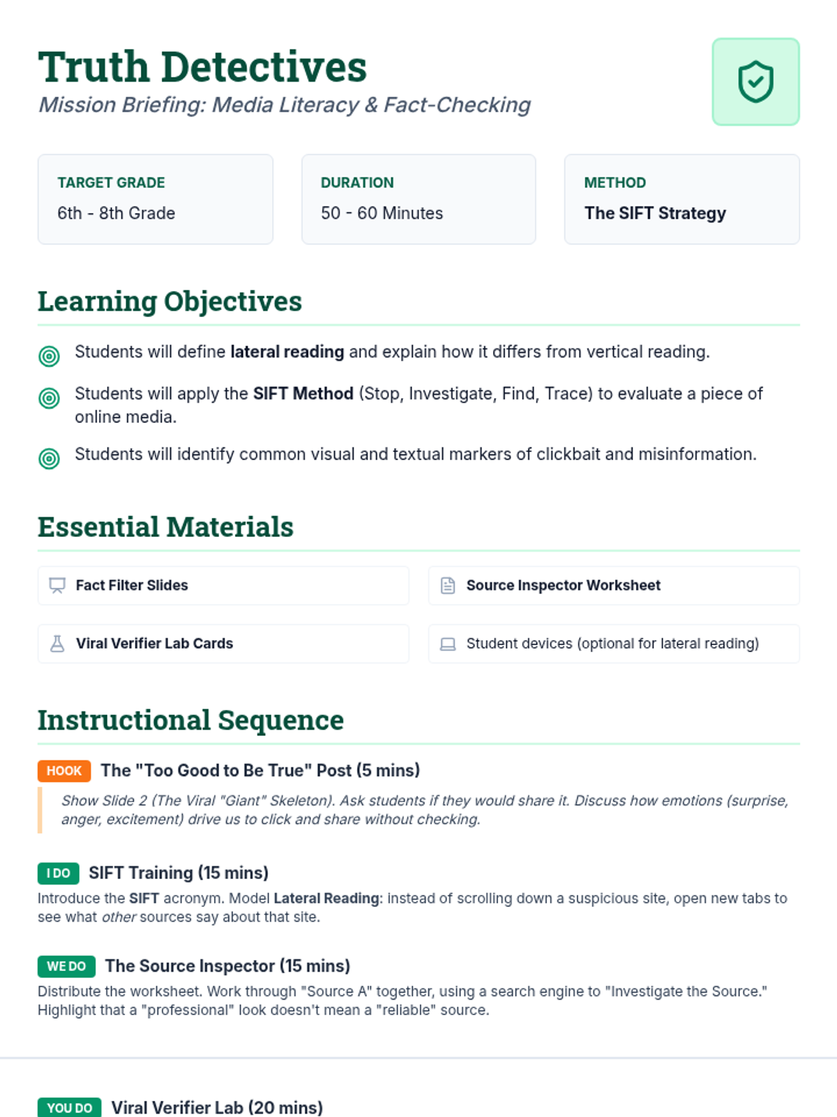 A middle school curriculum unit focused on critical thinking, information literacy, and strategic task management across digital and physical media.