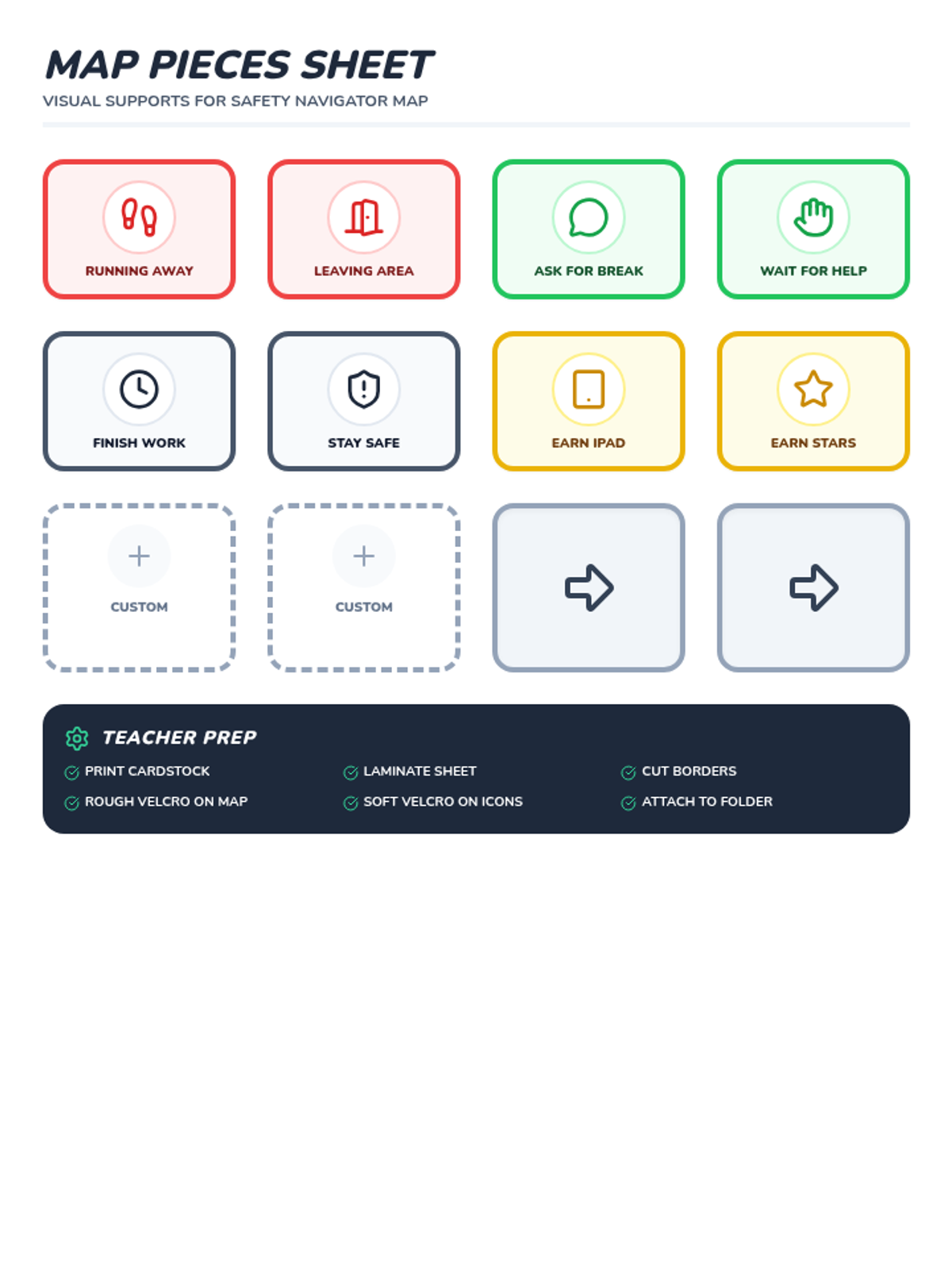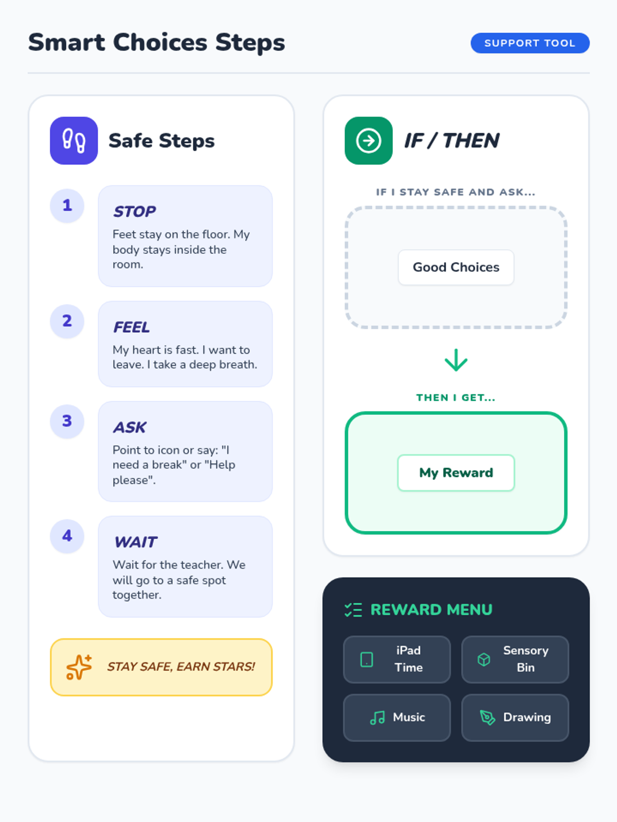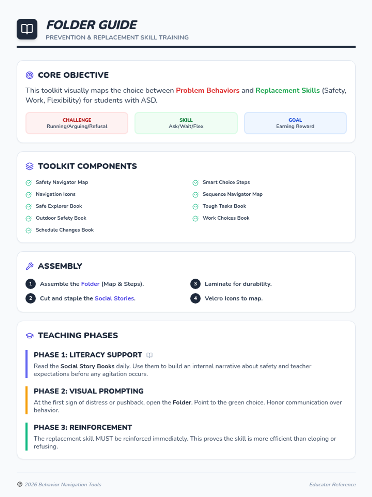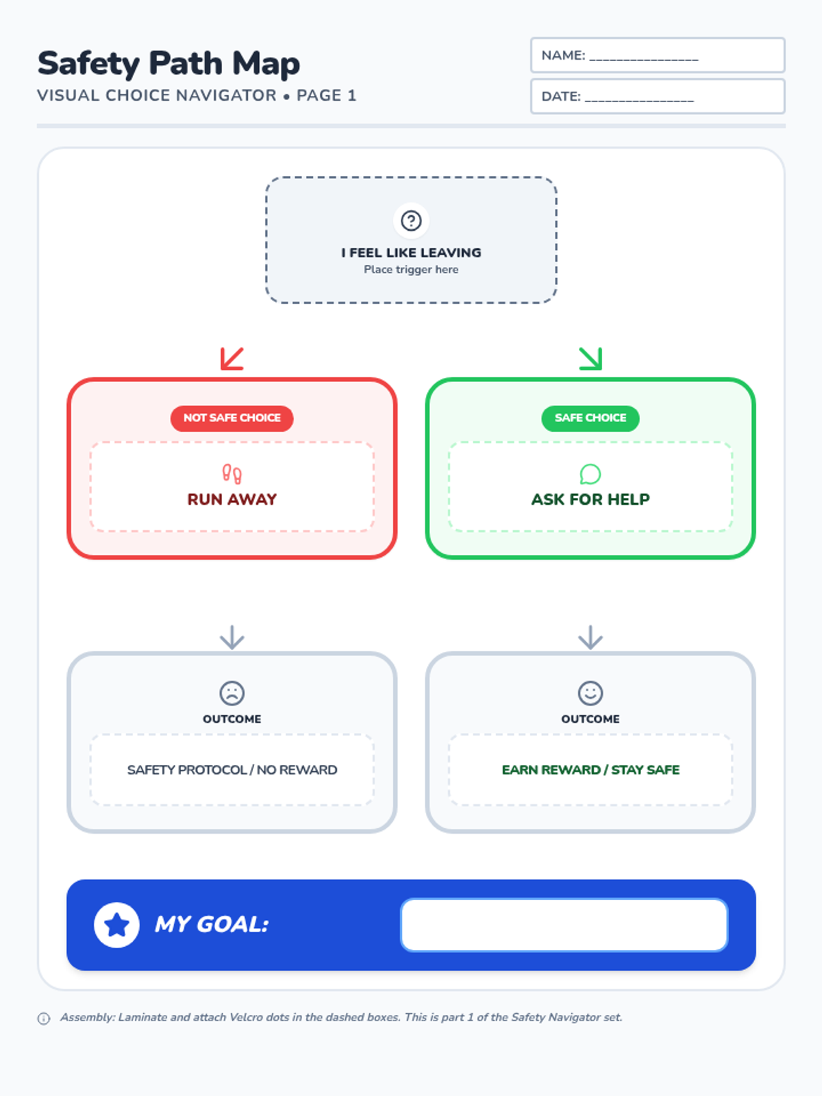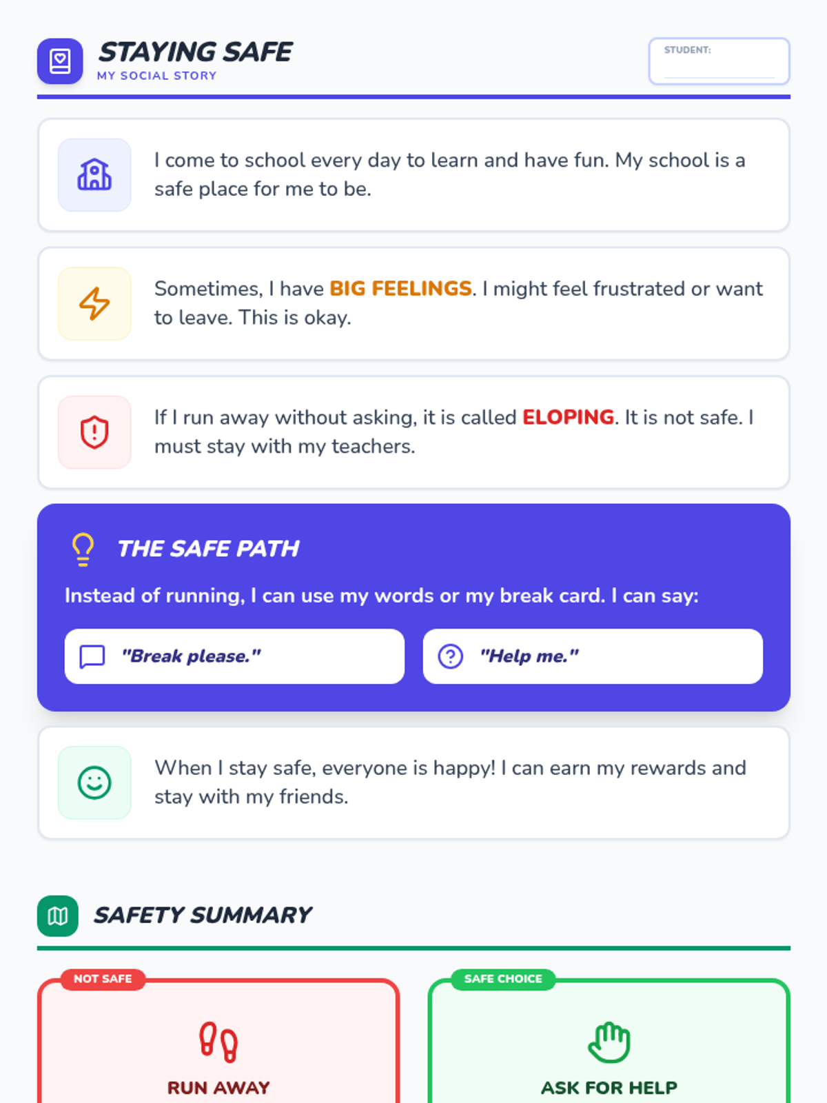 A set of visual supports and interactive activities designed to help students with ASD understand the consequences of elopement and learn safe replacement behaviors.