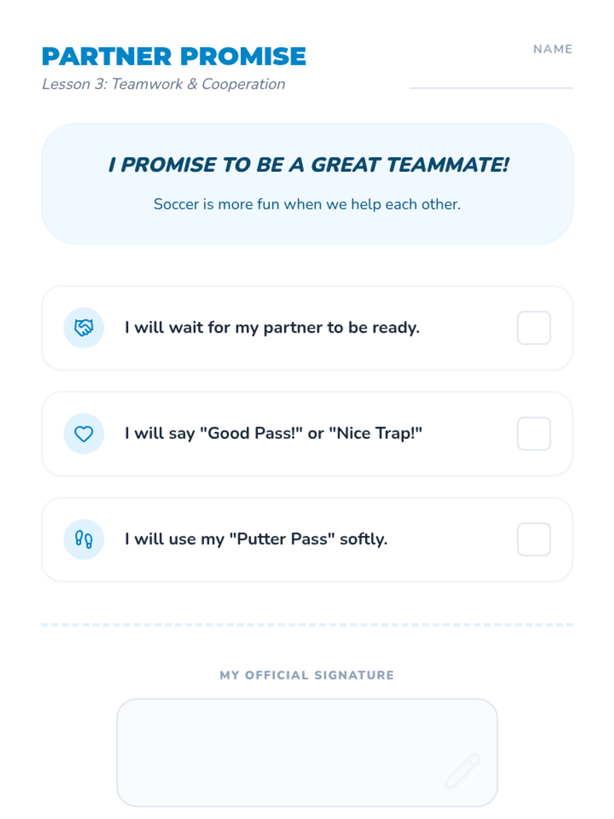 A Kindergarten Physical Education sequence focused on social-emotional skills through team building. Students learn to recognize emotions, offer encouragement, help peers in games, and celebrate together to build a supportive classroom culture.