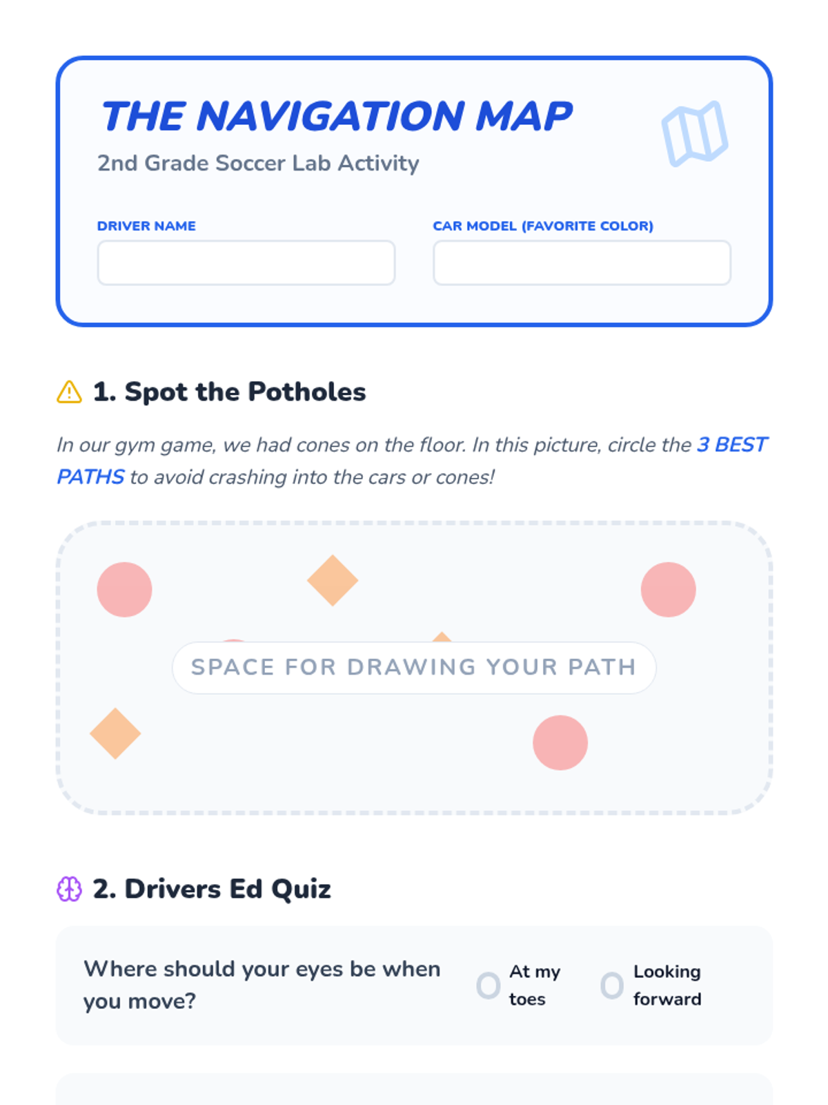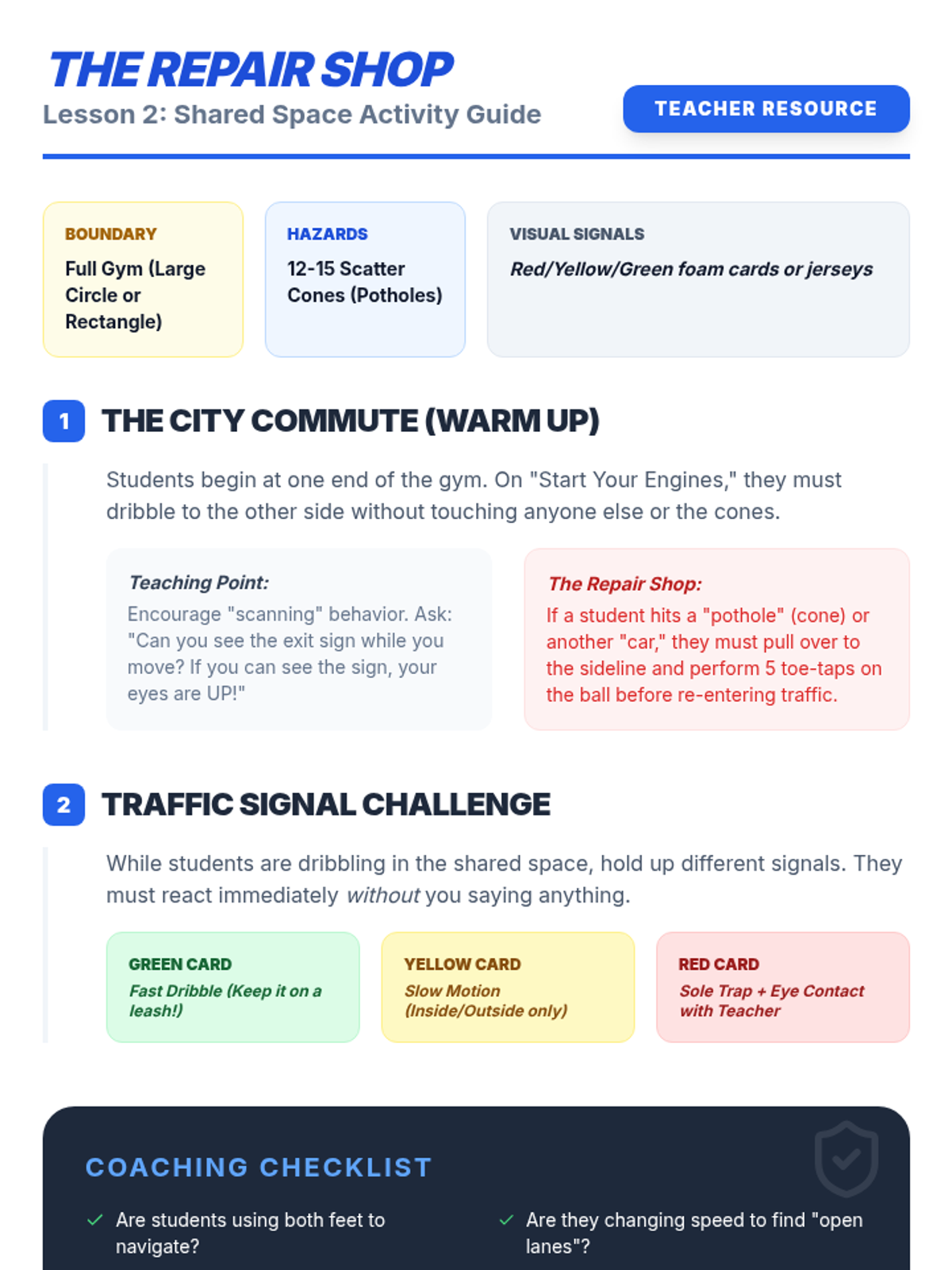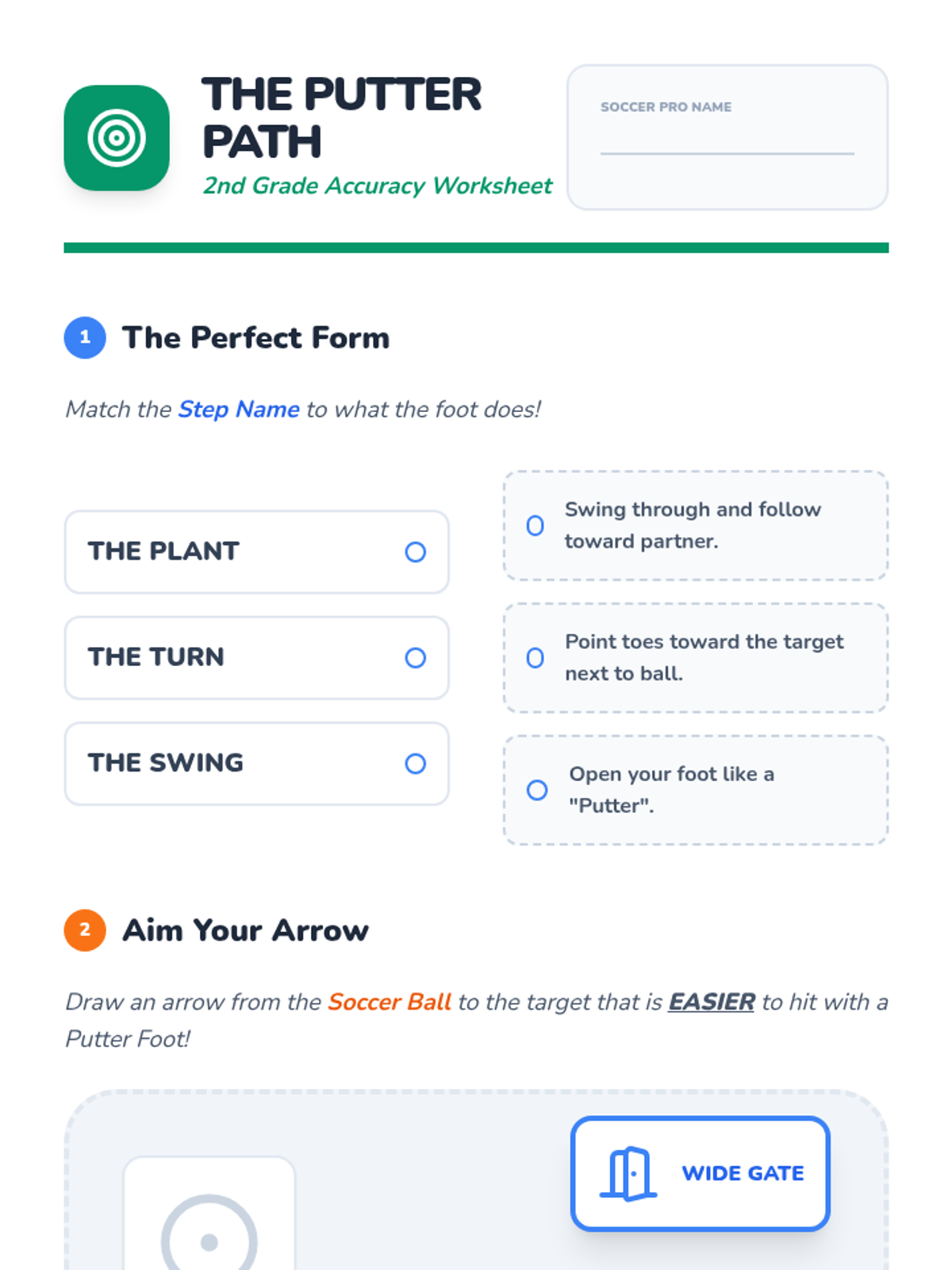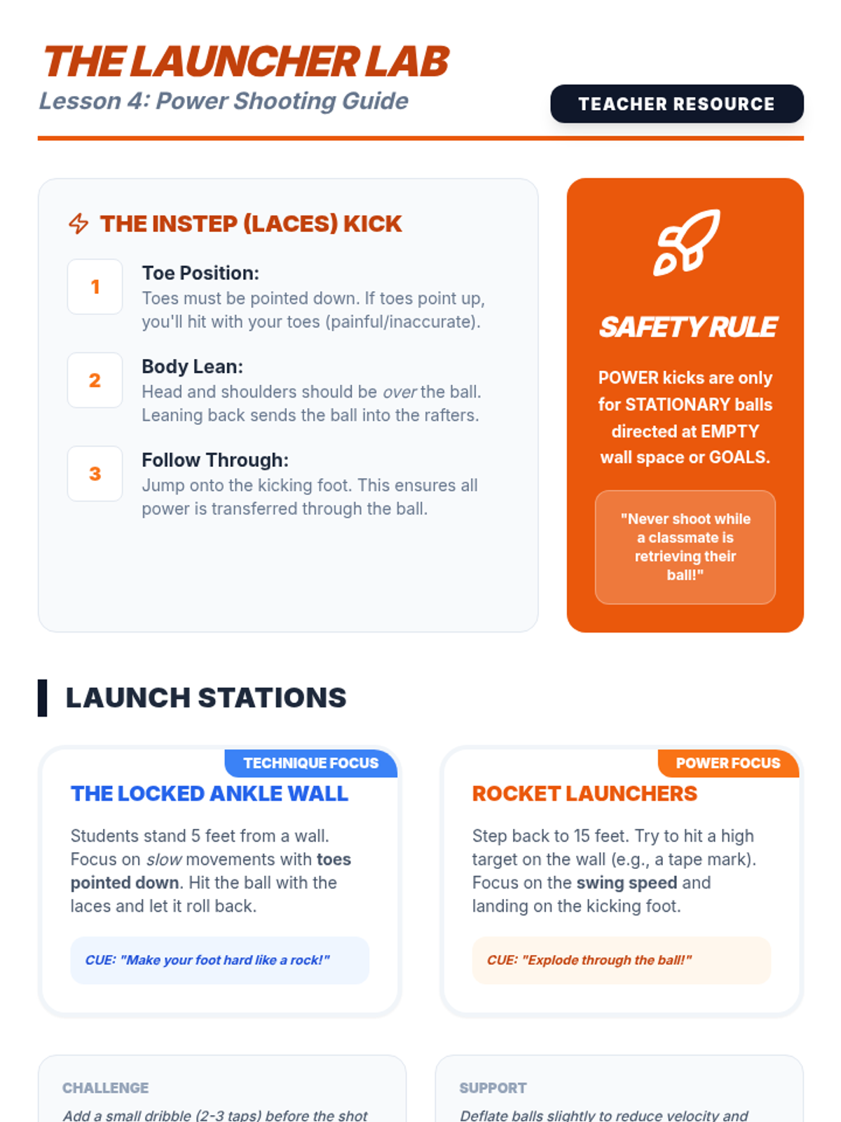 A 2nd-grade physical education sequence focused on soccer-style foot skills, including dribbling with control, spatial awareness, passing accuracy, and power shooting. Students progress from individual ball control to navigating shared spaces and combining skills in an obstacle course.