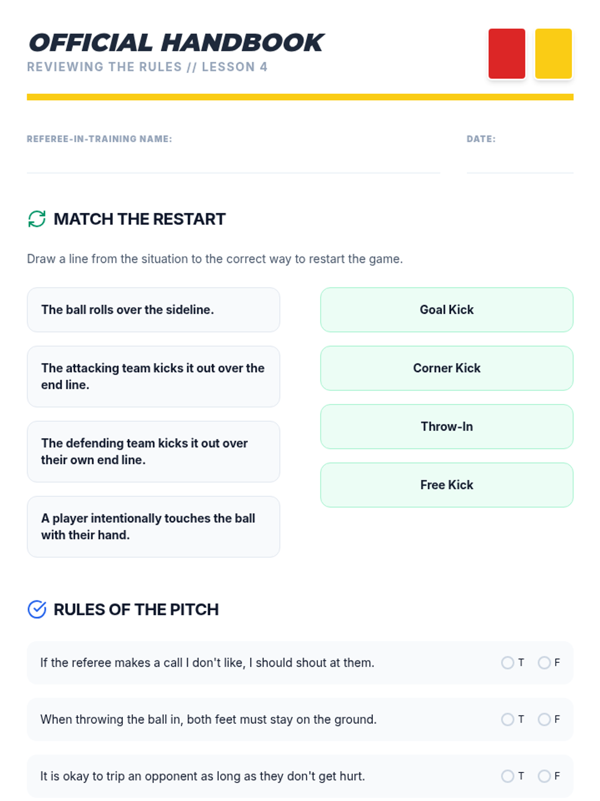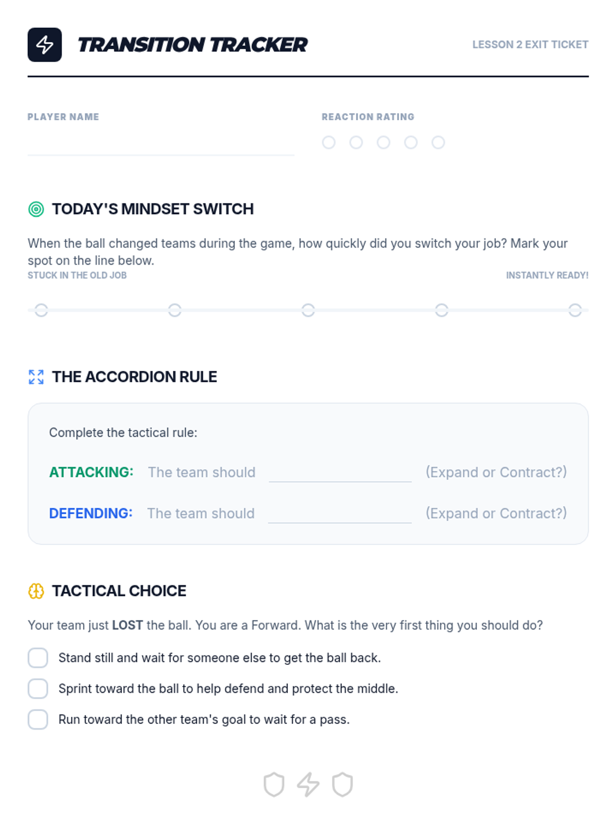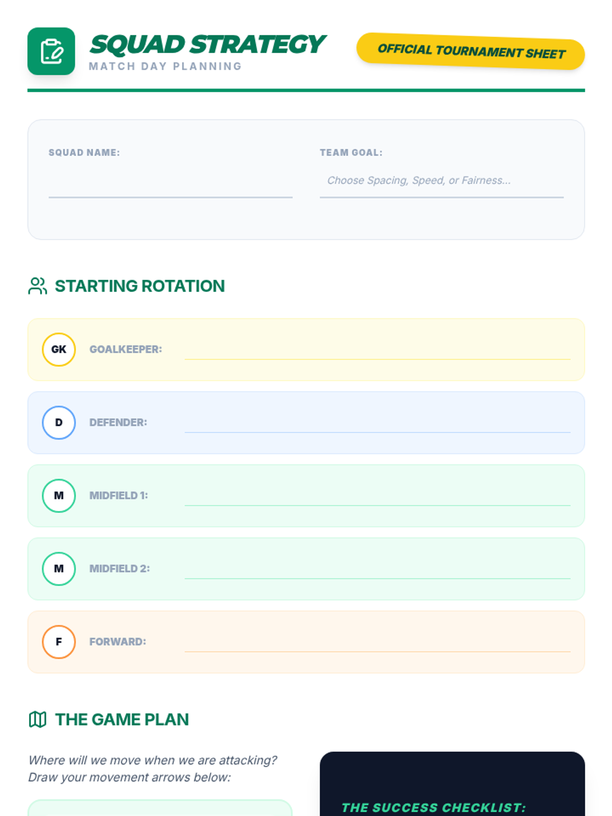 A comprehensive 4th-grade unit on soccer tactics, positions, and sportsmanship. Students progress from learning individual roles to applying complex team strategies in small-sided games and a culminating tournament.
