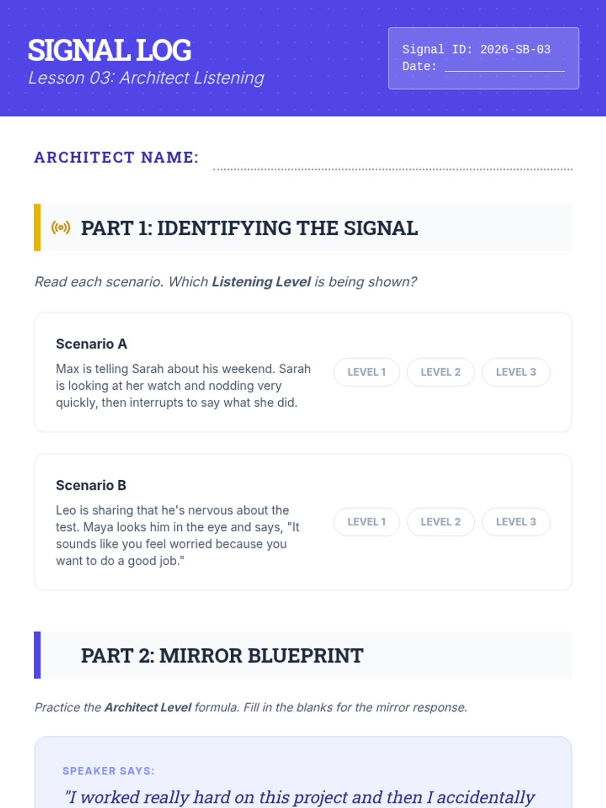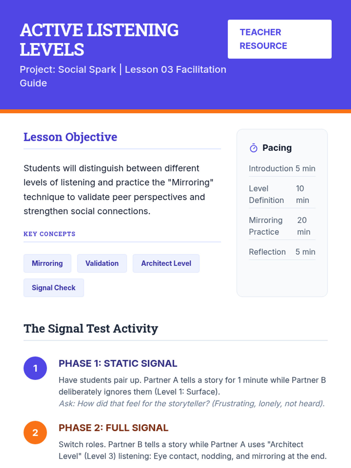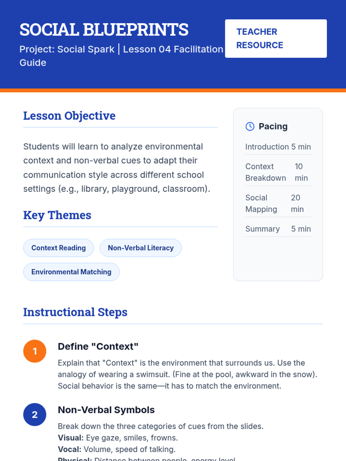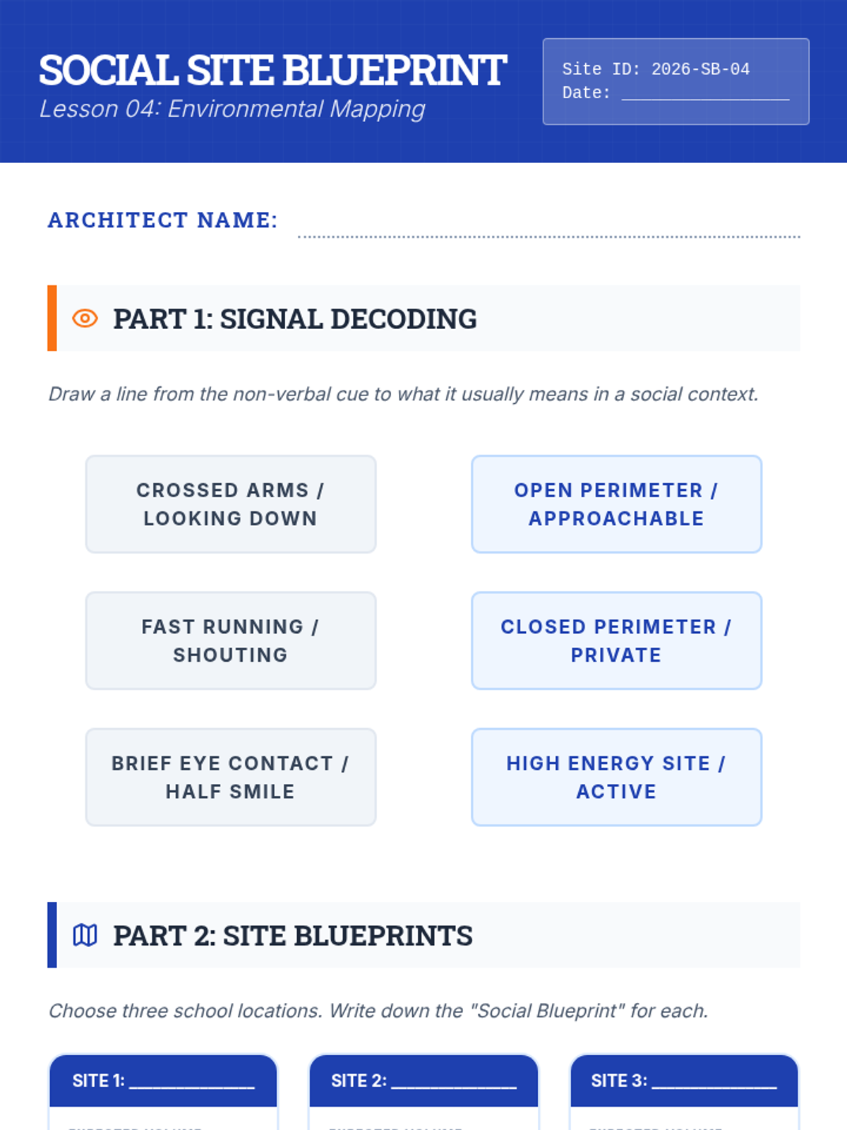 An 8-week curriculum designed to empower students with the tools to initiate positive peer interactions and resolve conflicts effectively. The unit uses a 'Social Architects' theme, framing social skills as building blocks for a strong community.