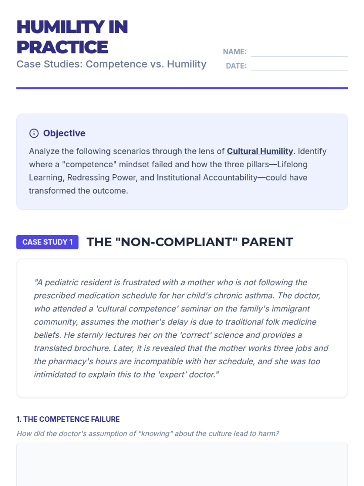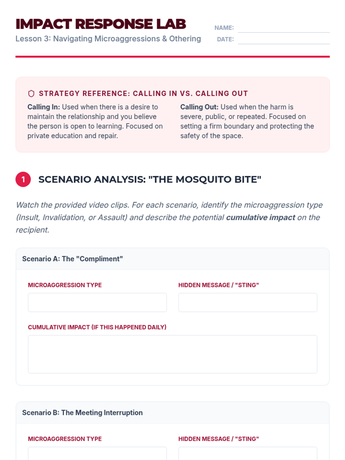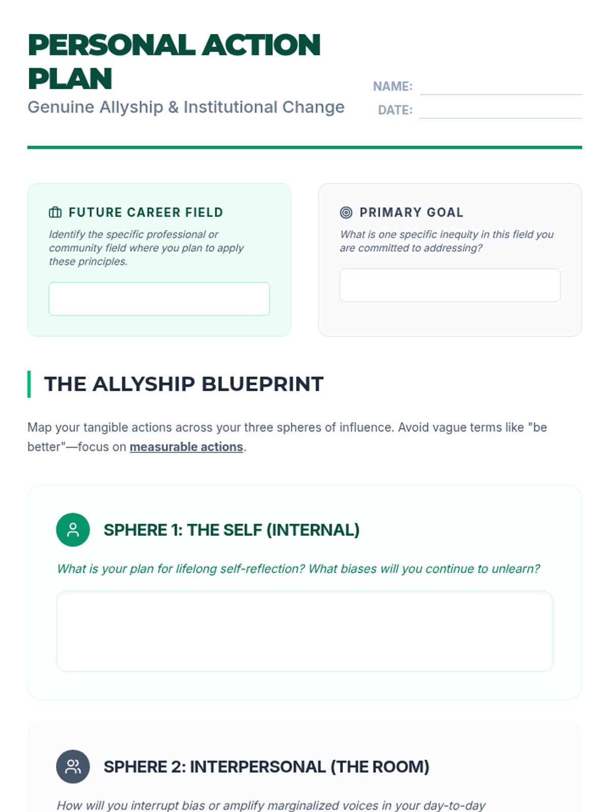 A comprehensive exploration of intersectionality and cultural humility for undergraduate students. This sequence moves from personal identity mapping to institutional accountability, emphasizing lifelong self-reflection and the recognition of power dynamics in professional and community settings.