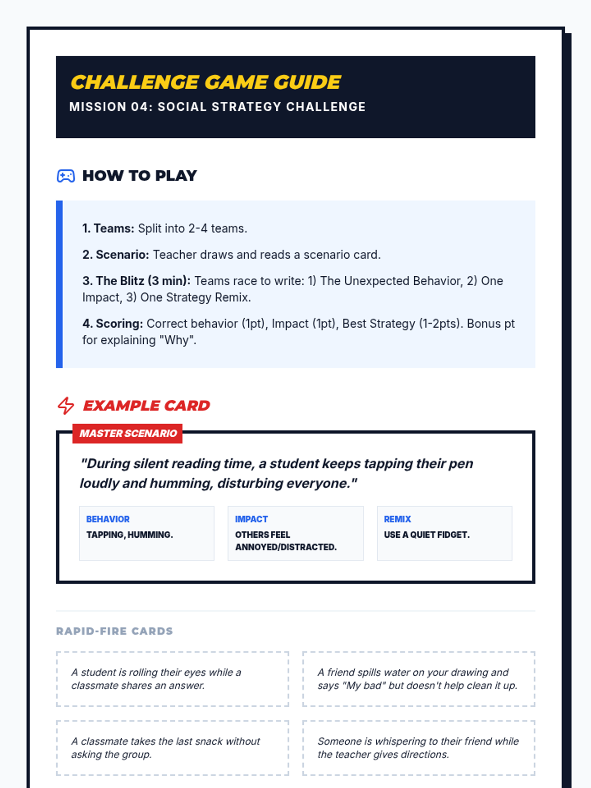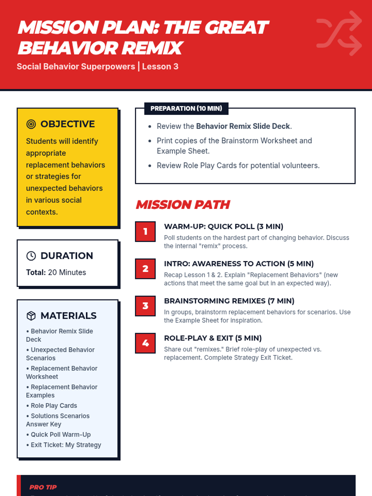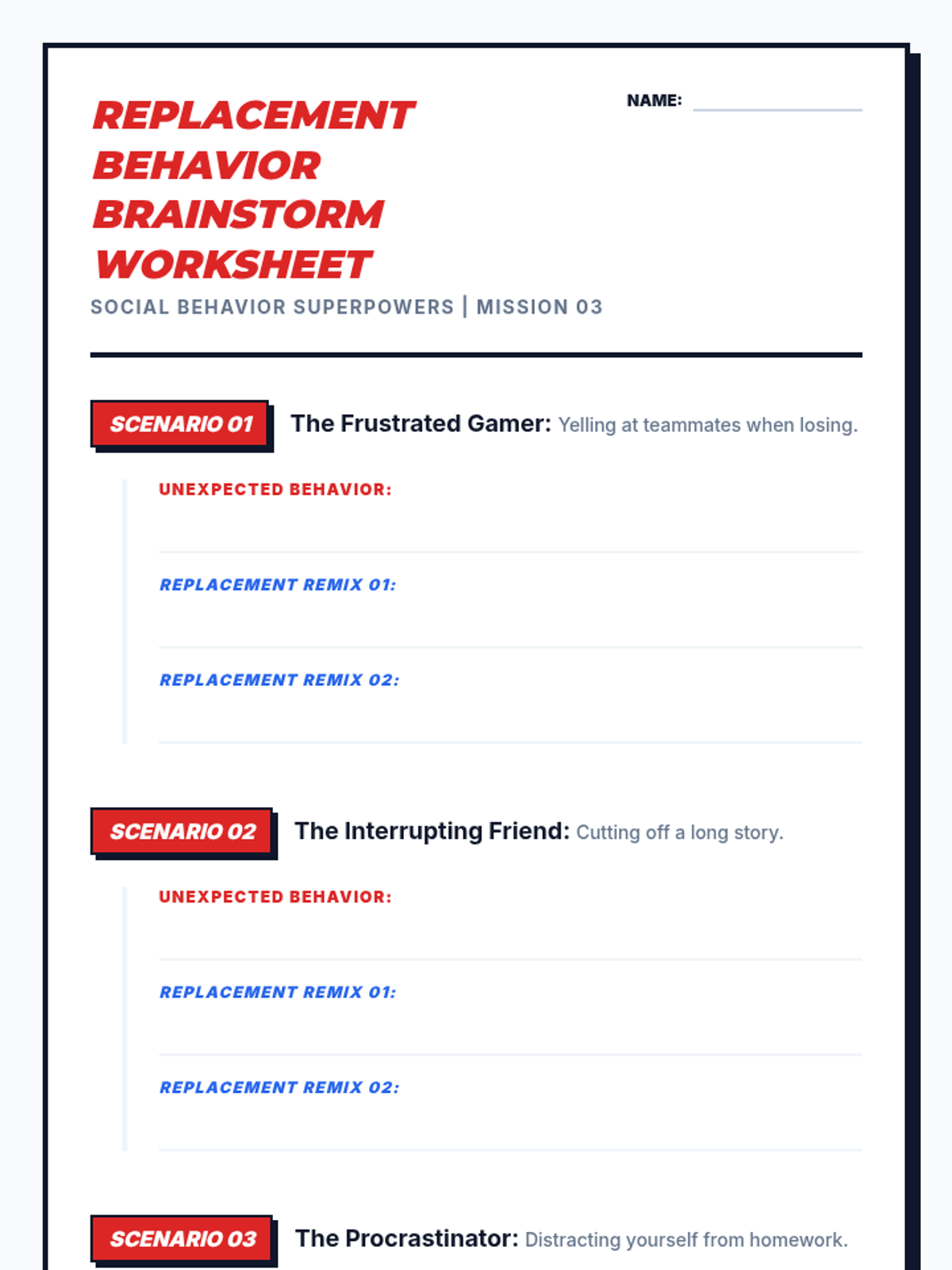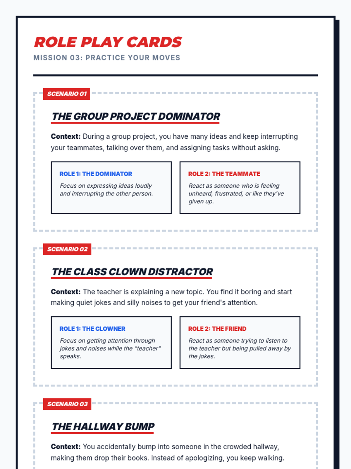A four-part unit for 7th-grade students designed to develop social awareness and self-regulation. Students learn to identify expected and unexpected behaviors, practice perspective-taking through empathy mapping, and develop replacement strategies for more positive social outcomes.