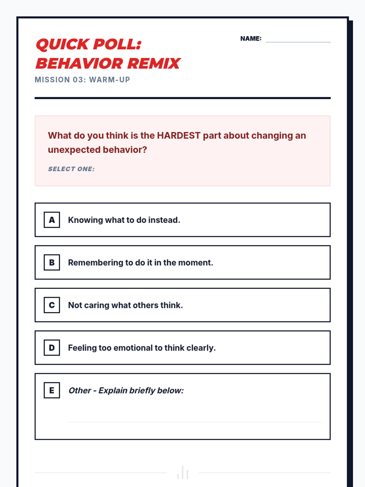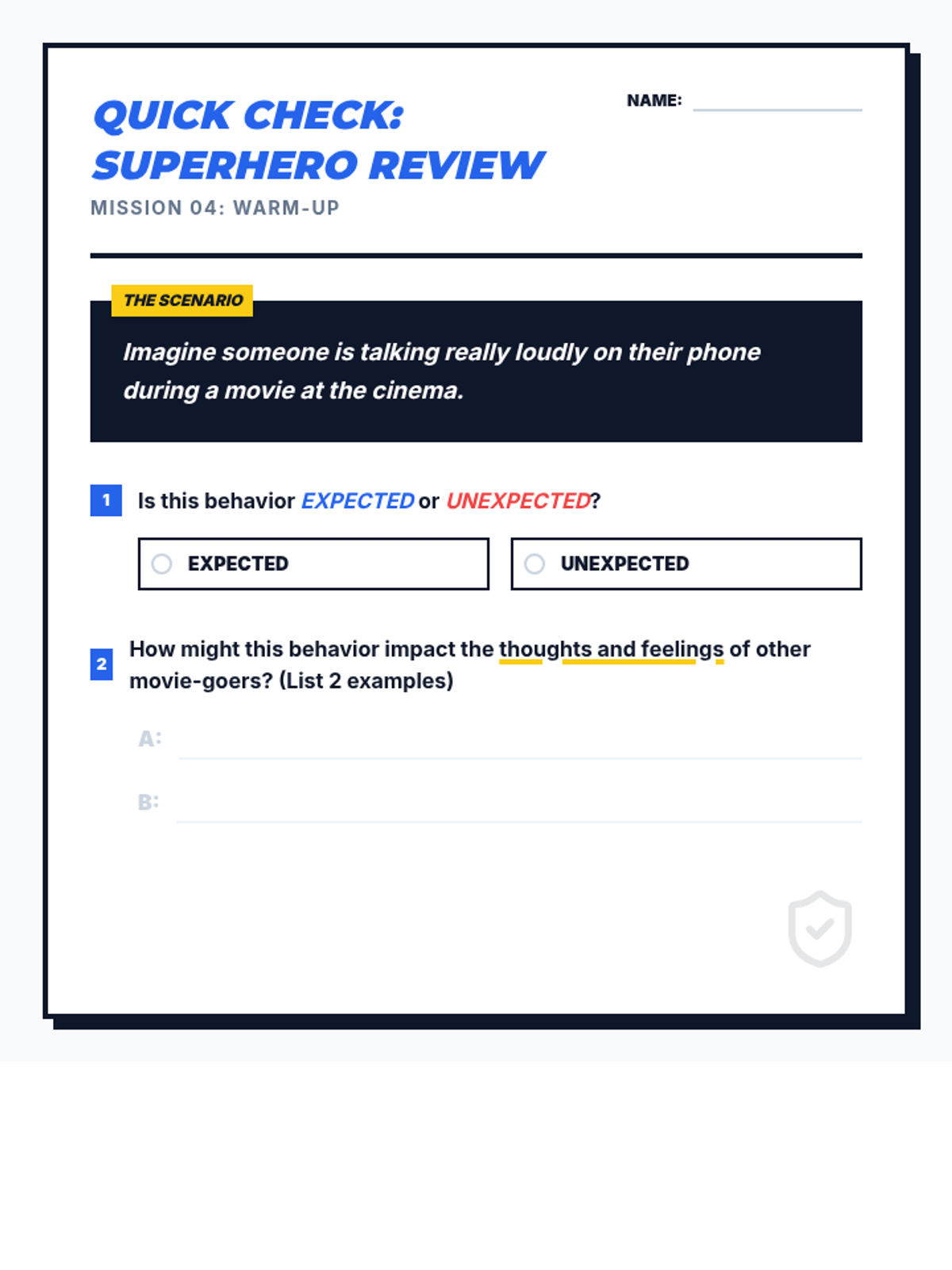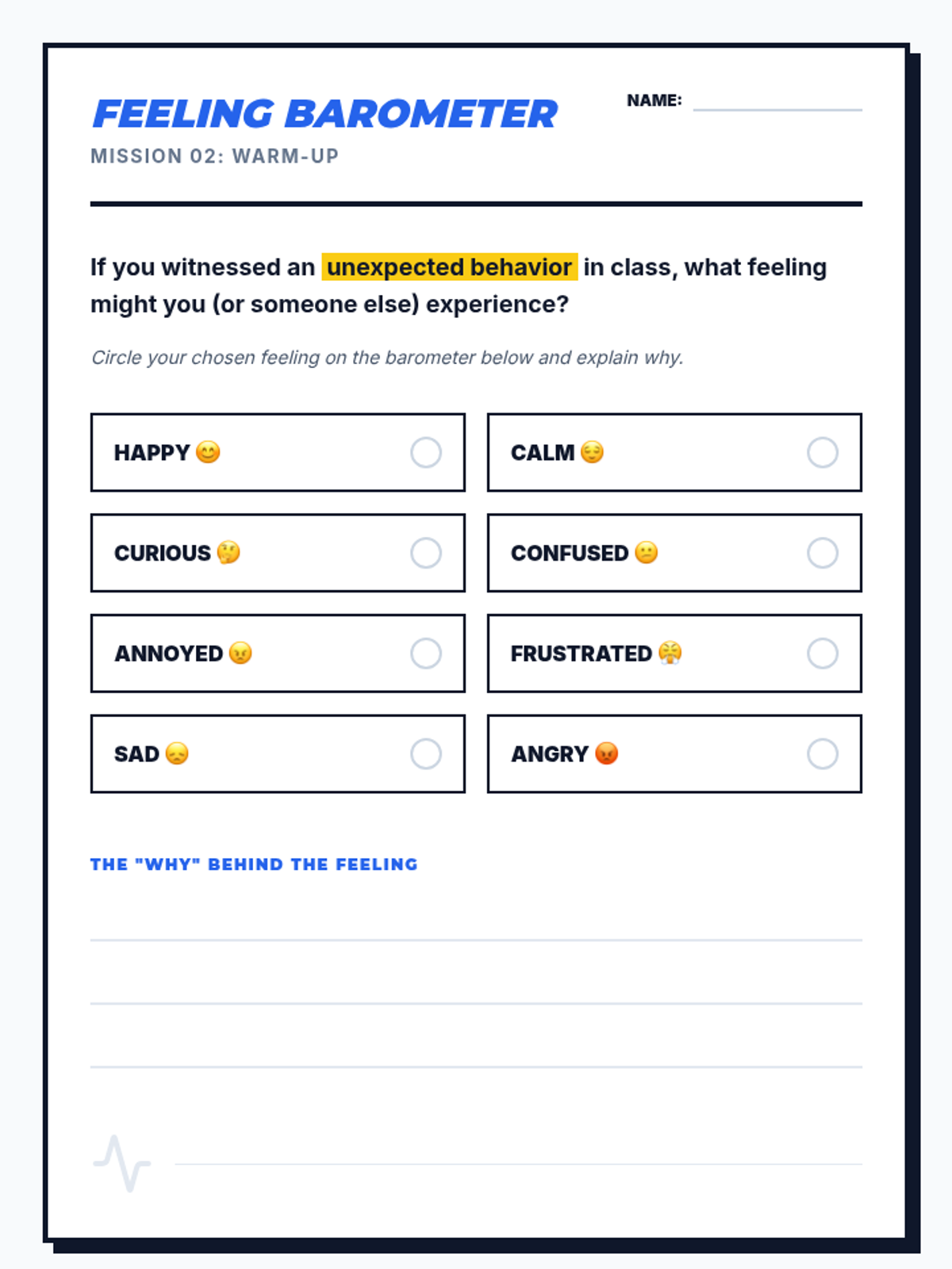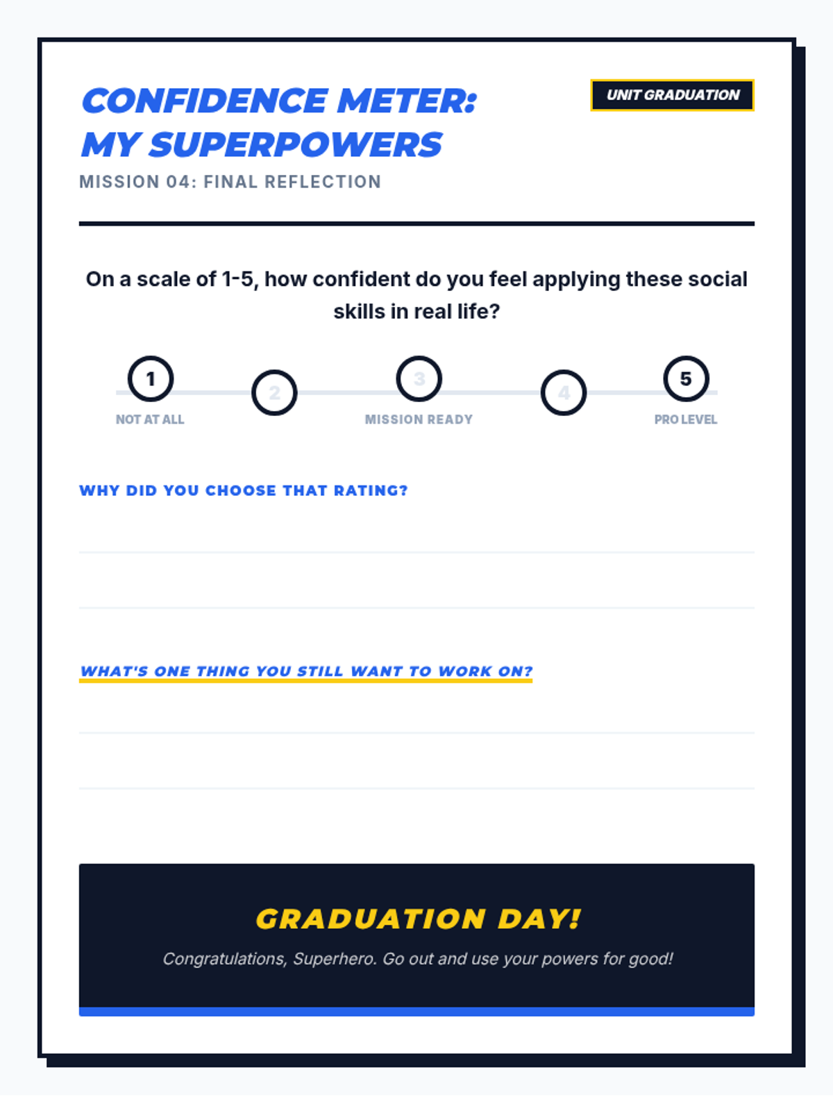A four-part unit for 7th-grade students designed to develop social awareness and self-regulation. Students learn to identify expected and unexpected behaviors, practice perspective-taking through empathy mapping, and develop replacement strategies for more positive social outcomes.