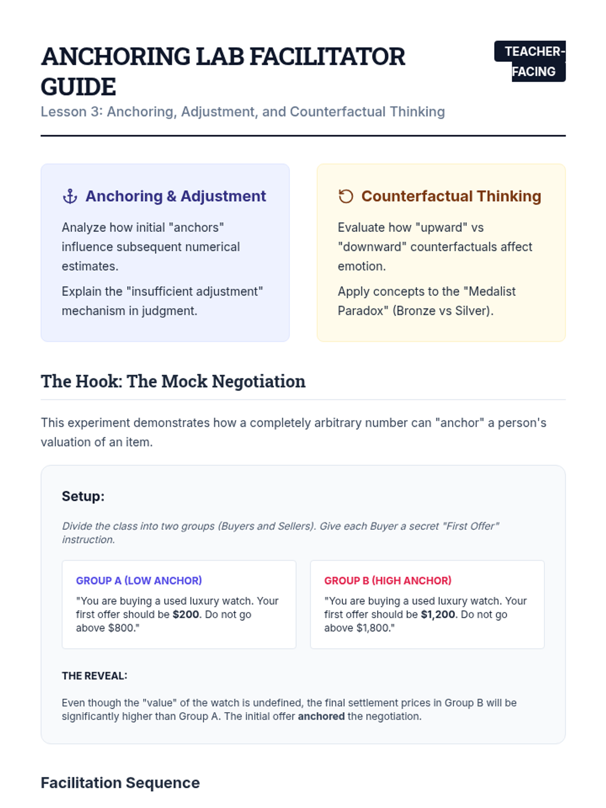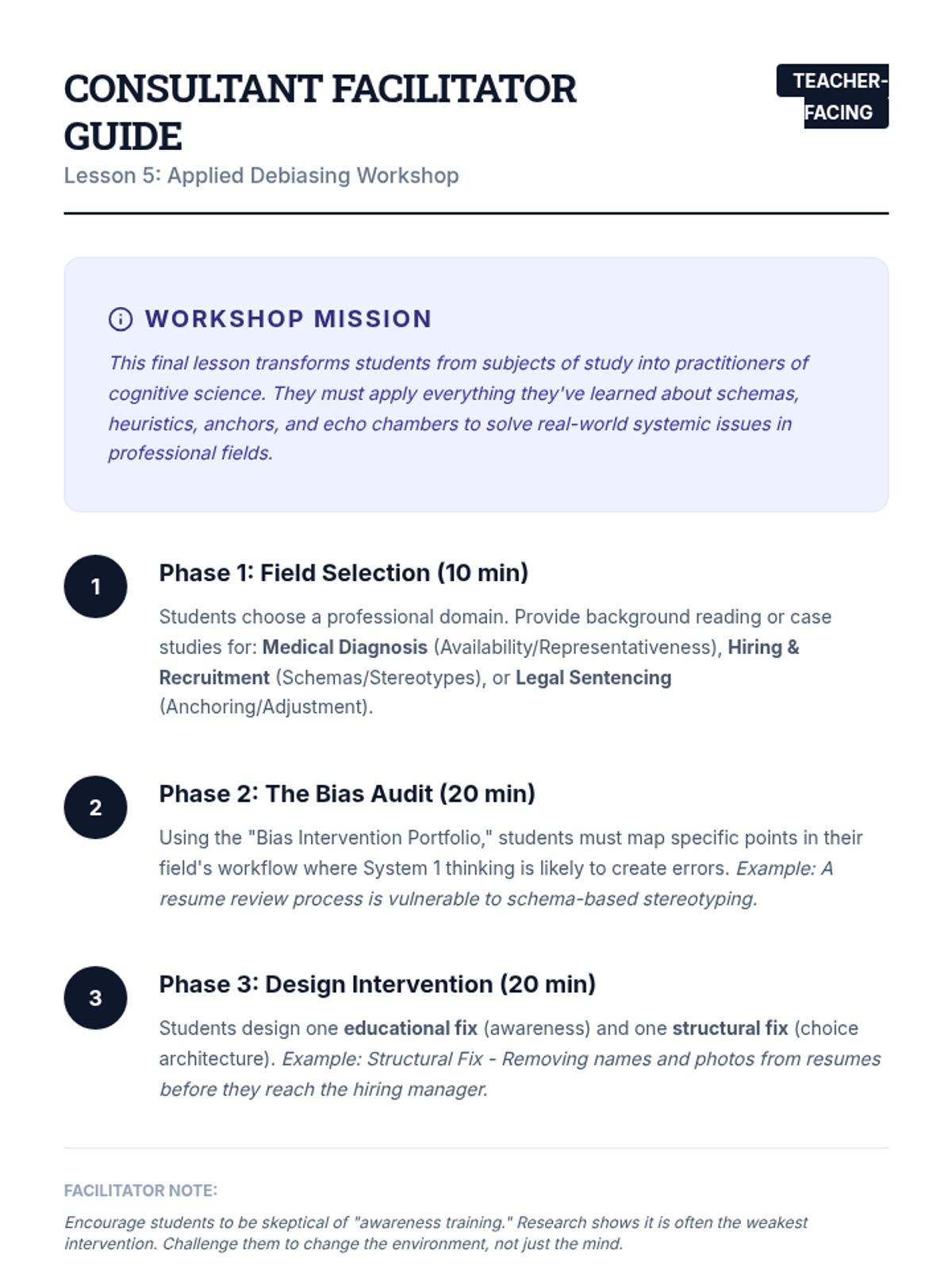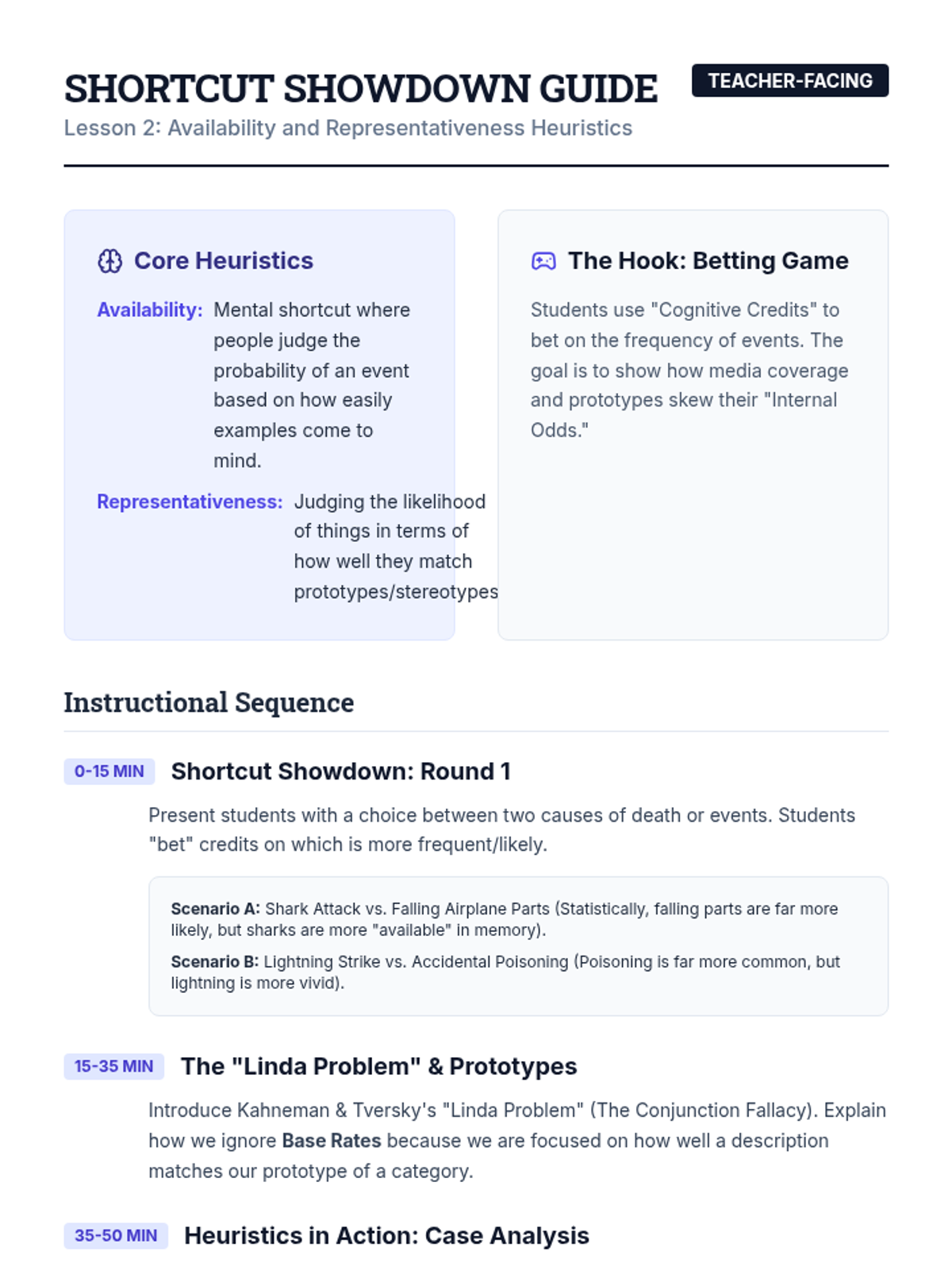 This sequence explores the cognitive architecture of social thought, focusing on how schemas, heuristics, and biases influence decision-making. Students engage in simulations and experiments to identify 'System 1' pitfalls and develop debiasing strategies for professional contexts.