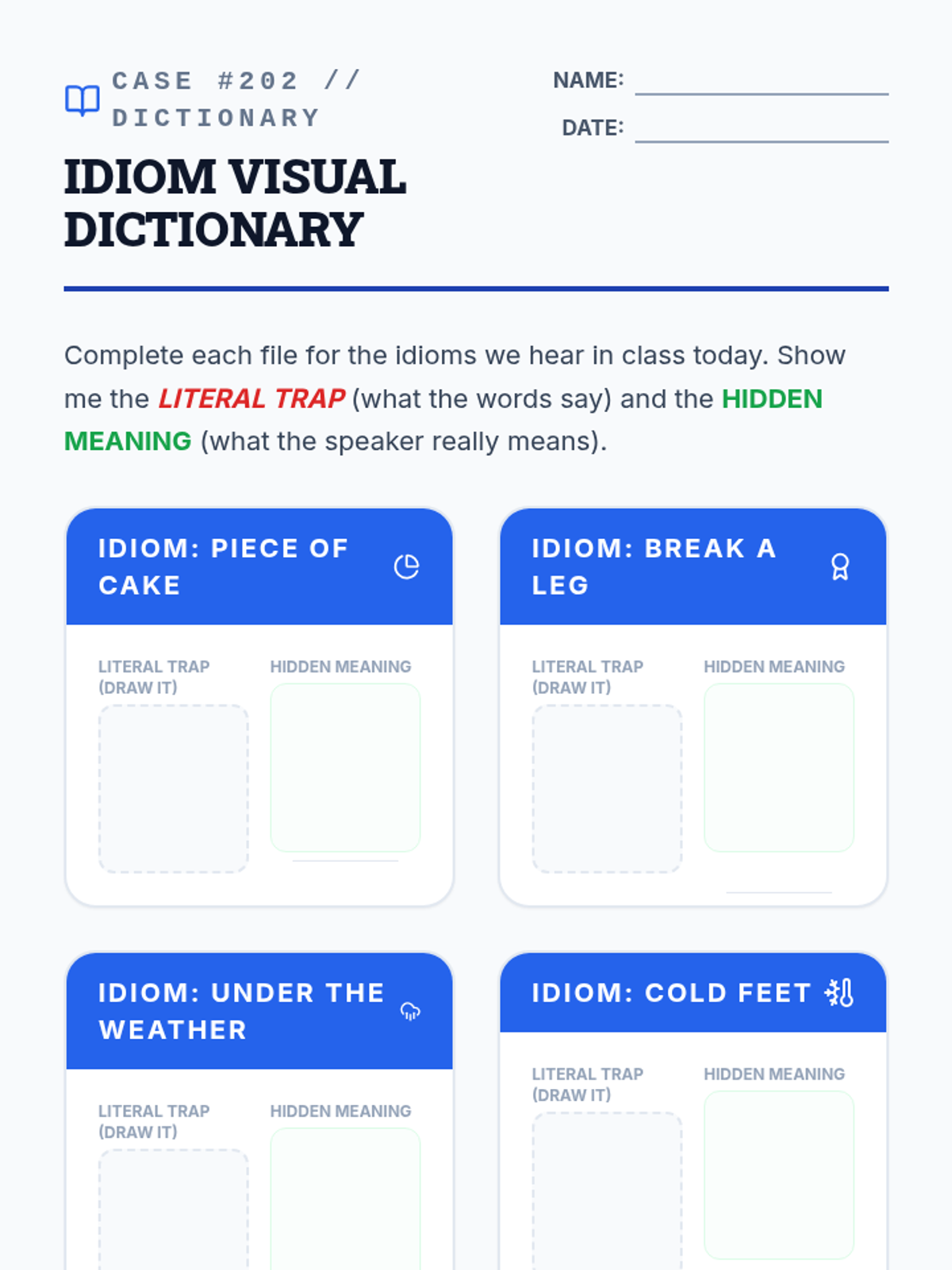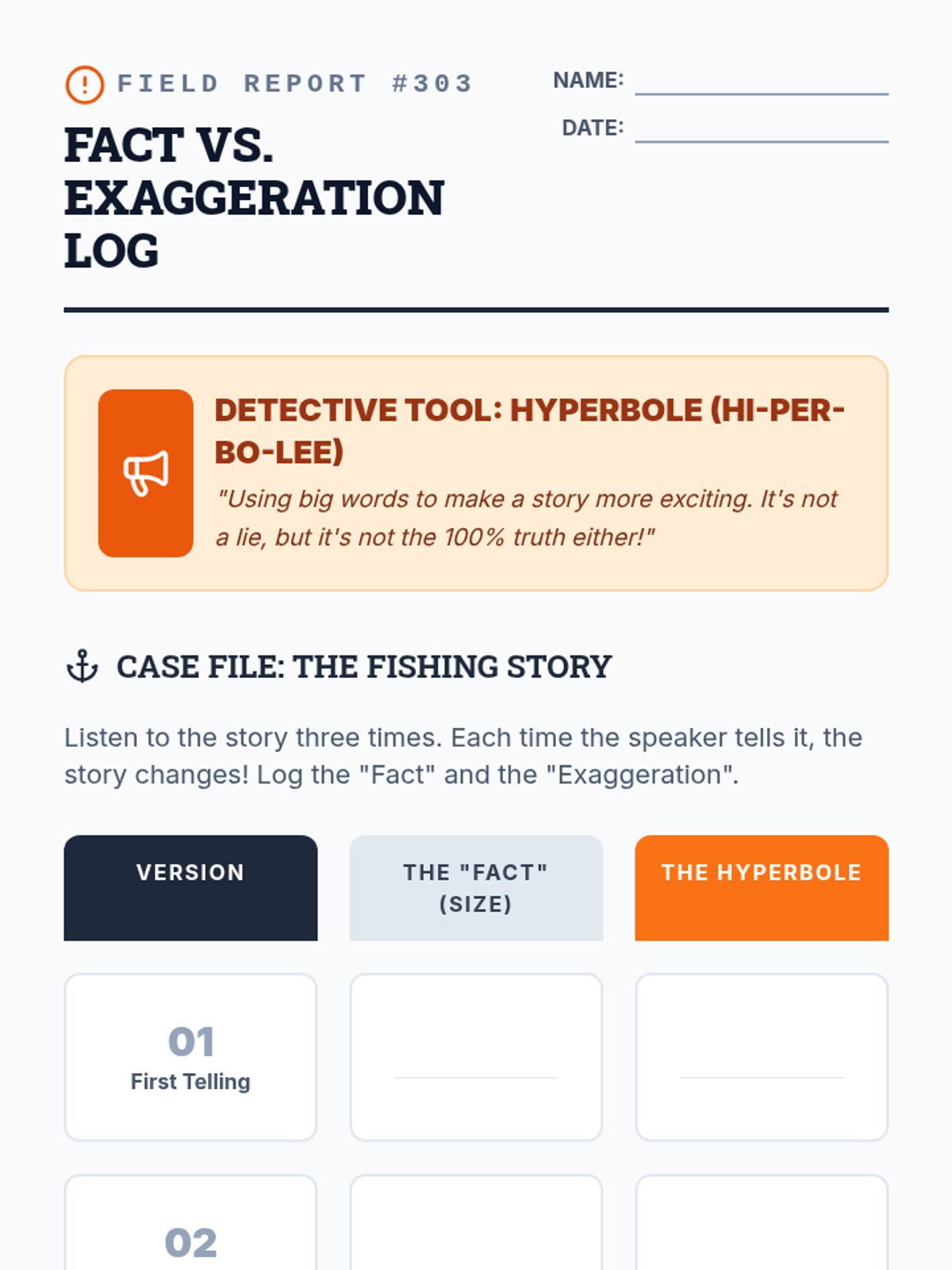 An intermediate ESL sequence where students act as 'communication detectives' to analyze tone, idioms, exaggeration, and speaker intent in spoken English. The sequence culminates in a mystery simulation requiring students to synthesize all listening skills to solve a case.