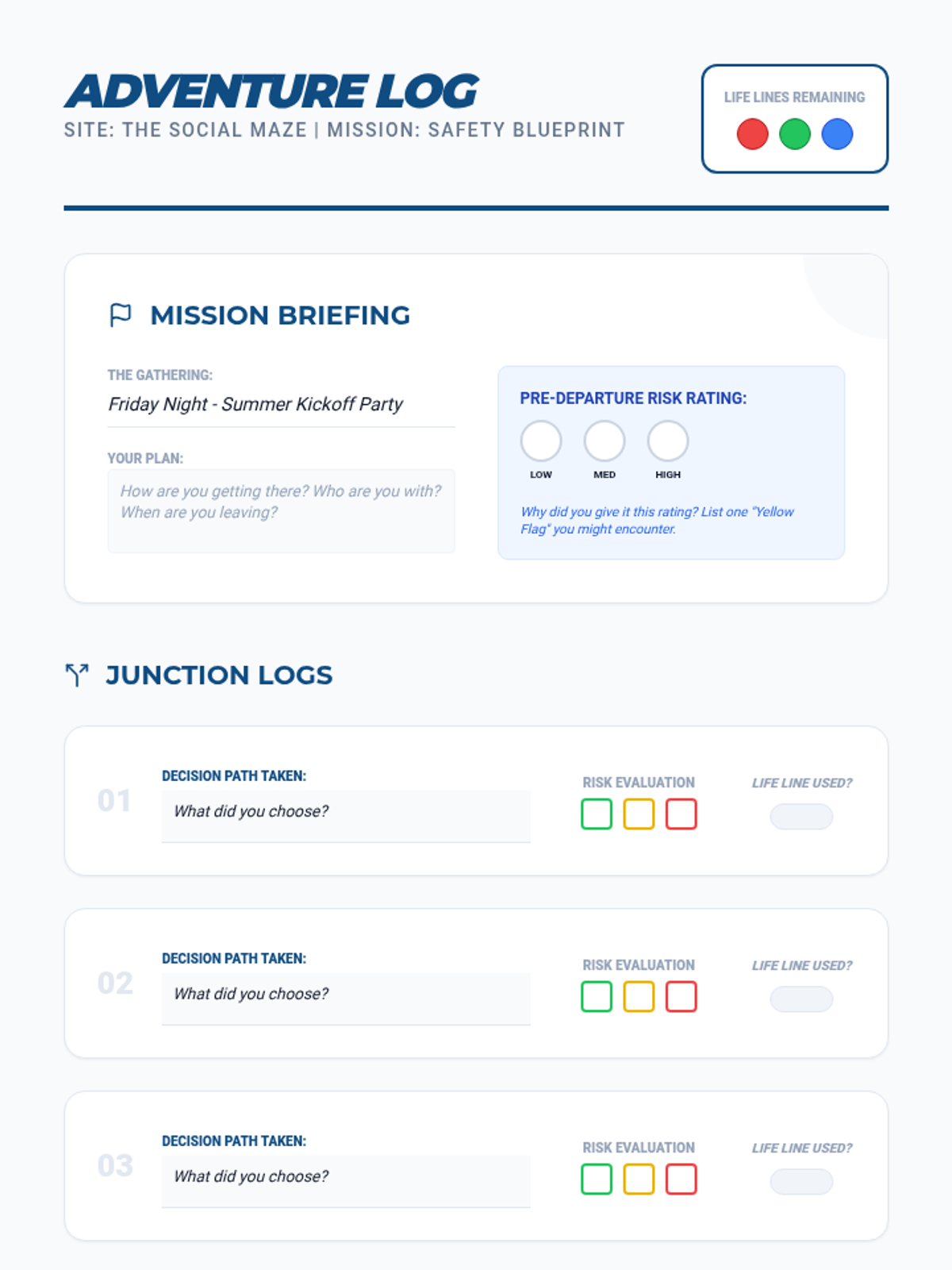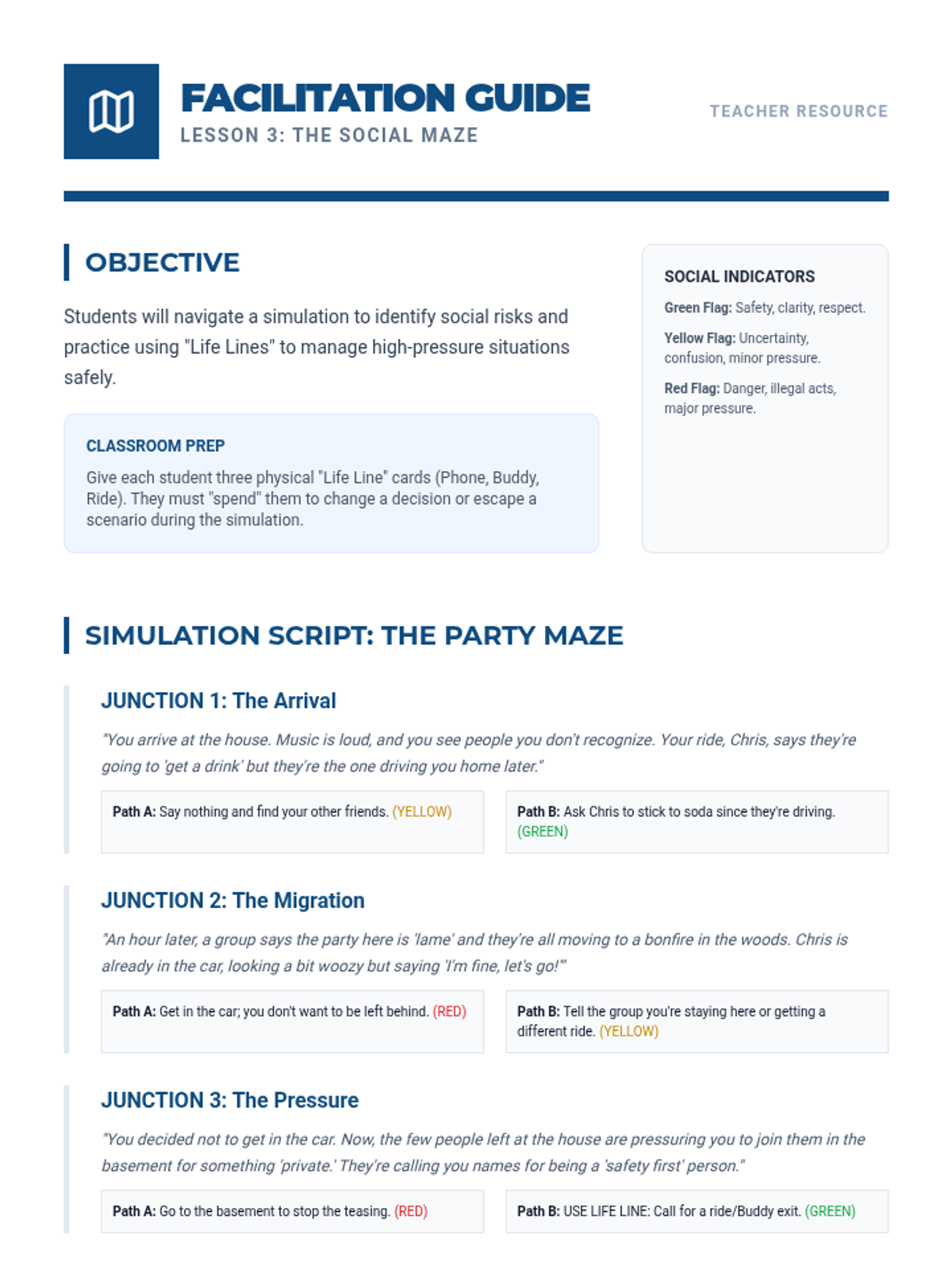 A comprehensive 8-session program designed for youth ages 9-18, focusing on essential life skills including self-esteem, resilience, time management, and conflict resolution through interactive role-plays and guided instruction.