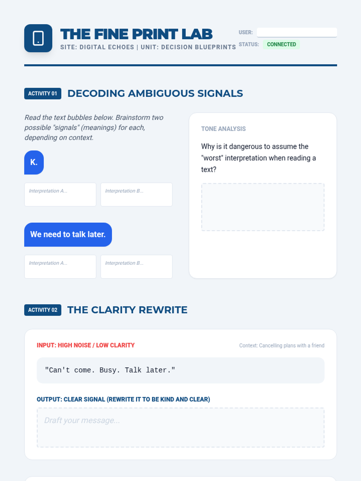 A comprehensive unit designed for young adults to master self-advocacy across workplace, community, and social environments. Through interactive scenarios and guided practice, learners build confidence in asserting their needs and showcasing their strengths.
